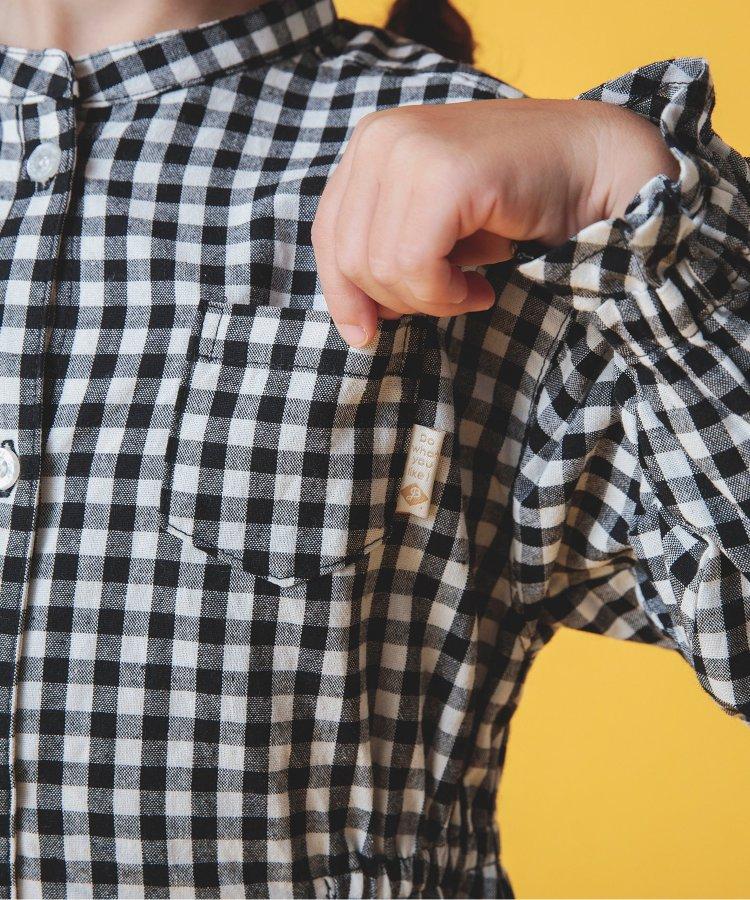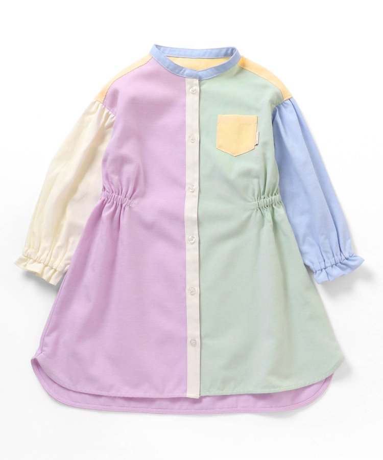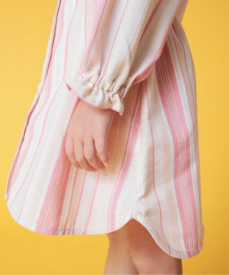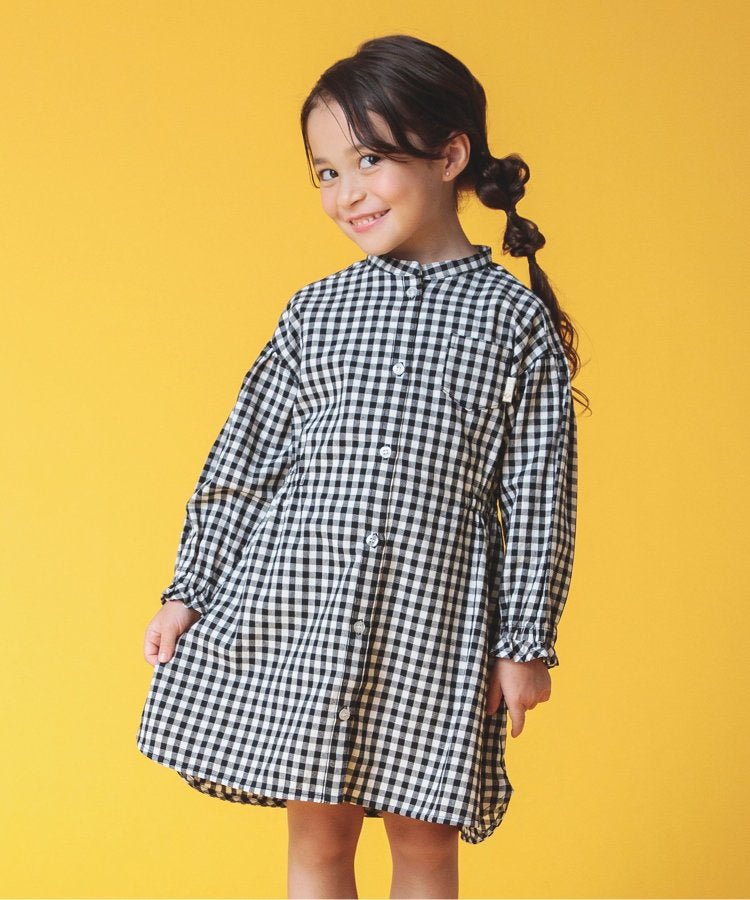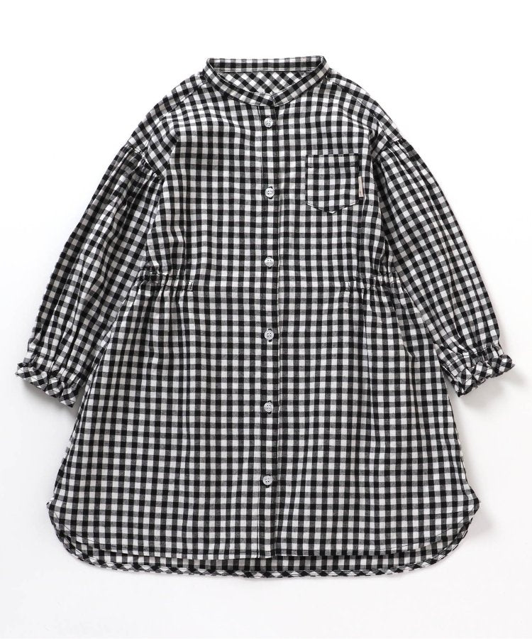 男童襯衫連衣裙。兩側有鬆緊帶,腰部收緊。