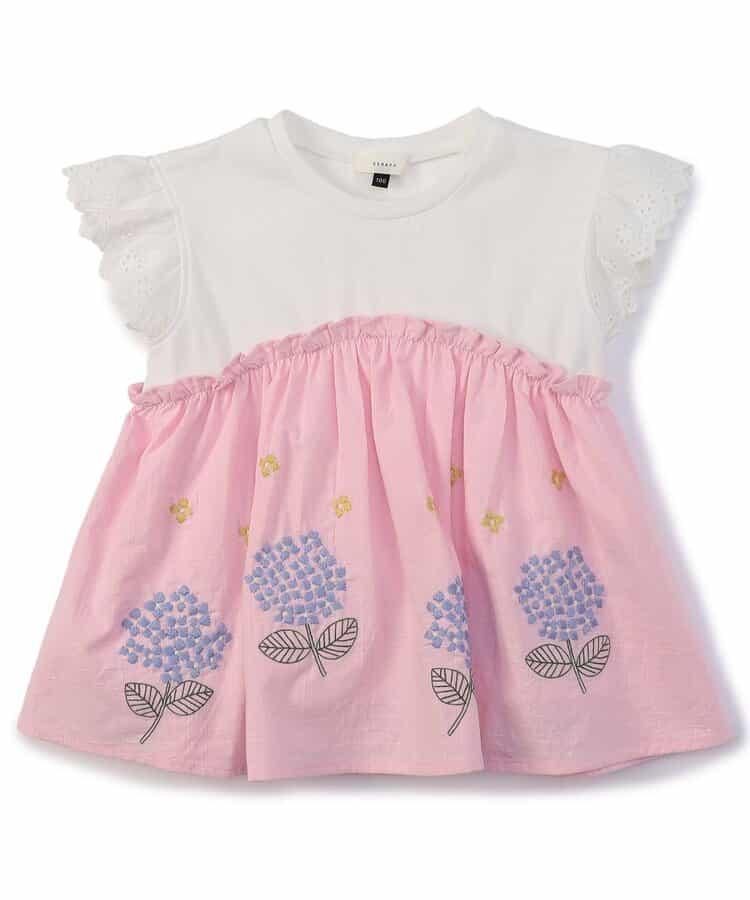 Seraph 的短袖 T 恤"[鏈接] 繡球花對接上衣 "以其簡潔的面料和柔和的色彩,推薦給崇尚自然的時尚人士!