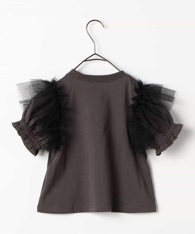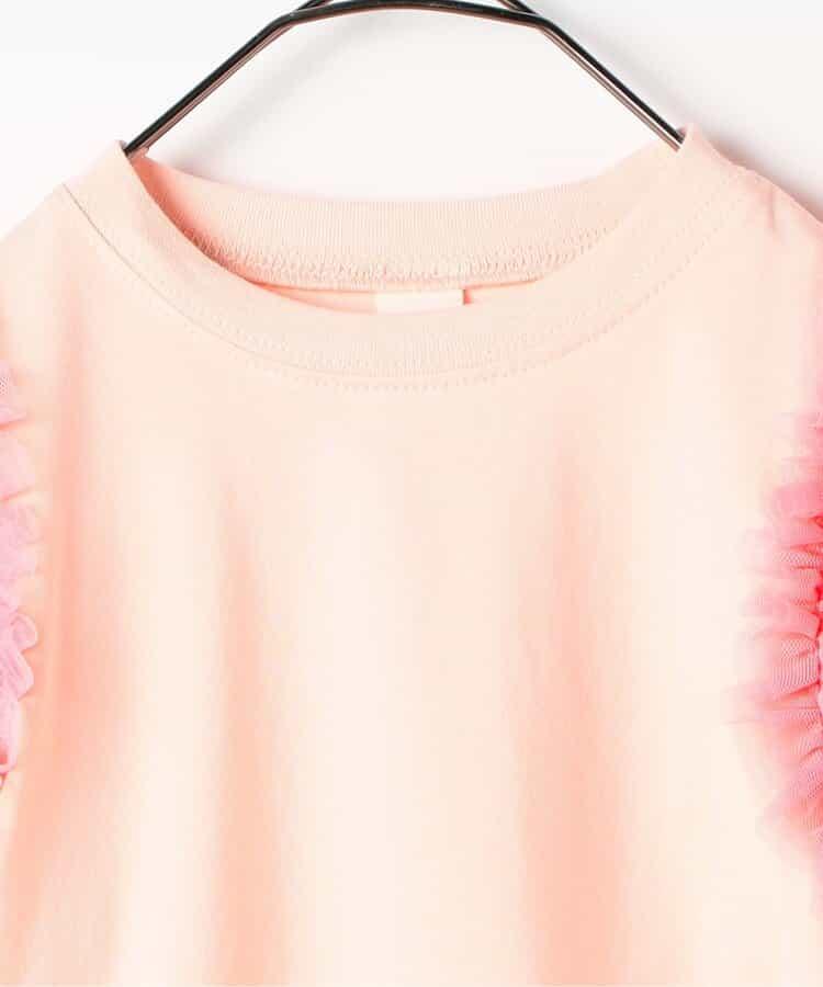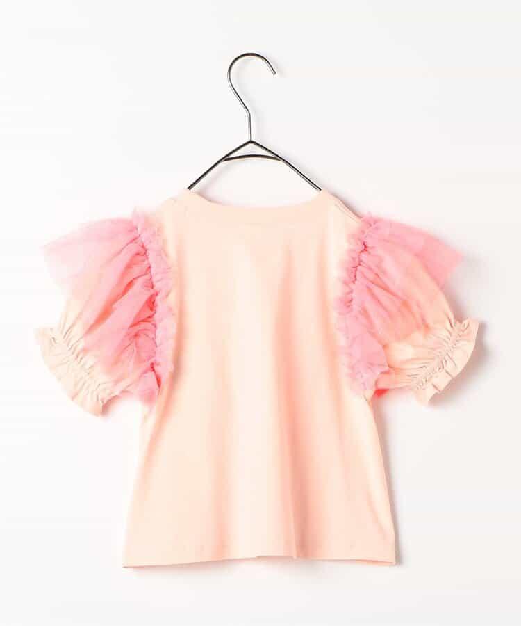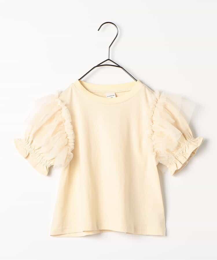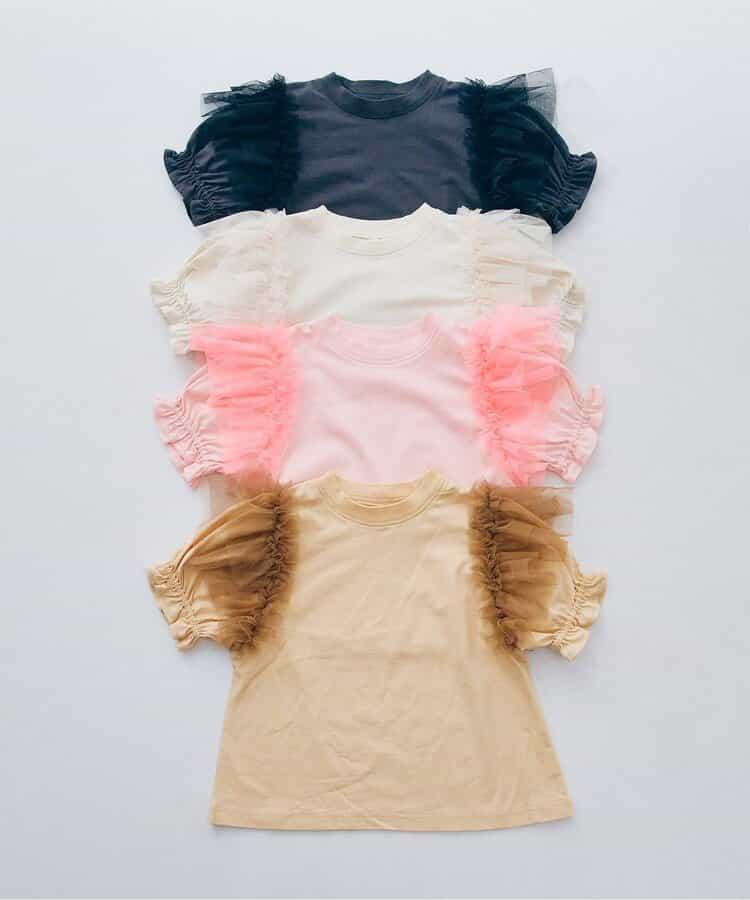 可愛的 T 恤,肩部有蓬鬆的薄紗荷葉邊。