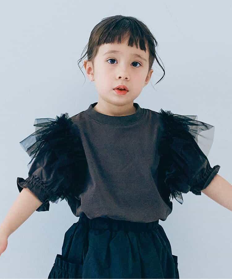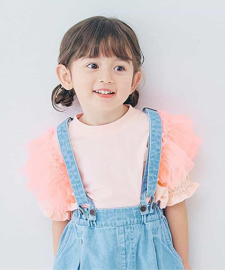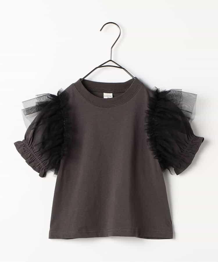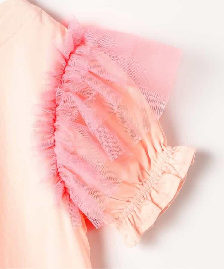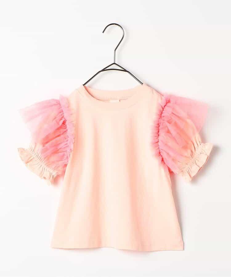 可愛的 T 恤,肩部有蓬鬆的薄紗荷葉邊。