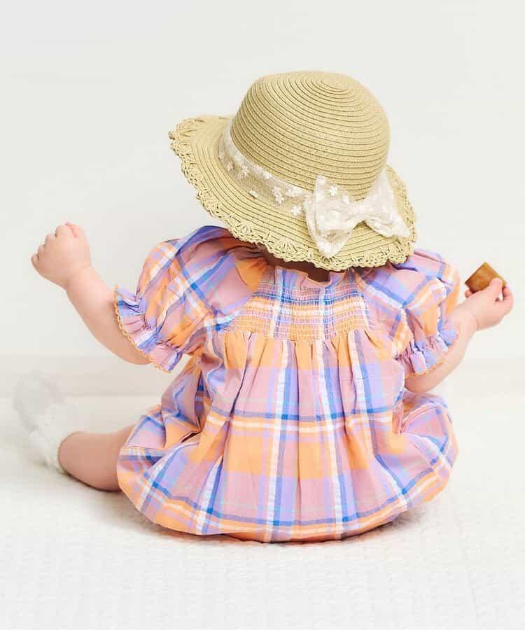 apres les cours 設計的"[Link] Smocking Embroidery Romper "罩衫連衣裙設計自然,細微之處盡顯溫柔。嬰兒禮品和嬰兒禮物的明星