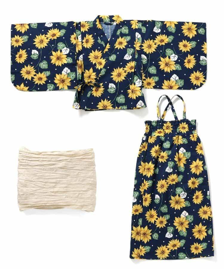 象牙色的腰帶與向日葵葉子的顏色相呼應,給人以華麗的印象,而海軍藍則給人以成熟的印象。