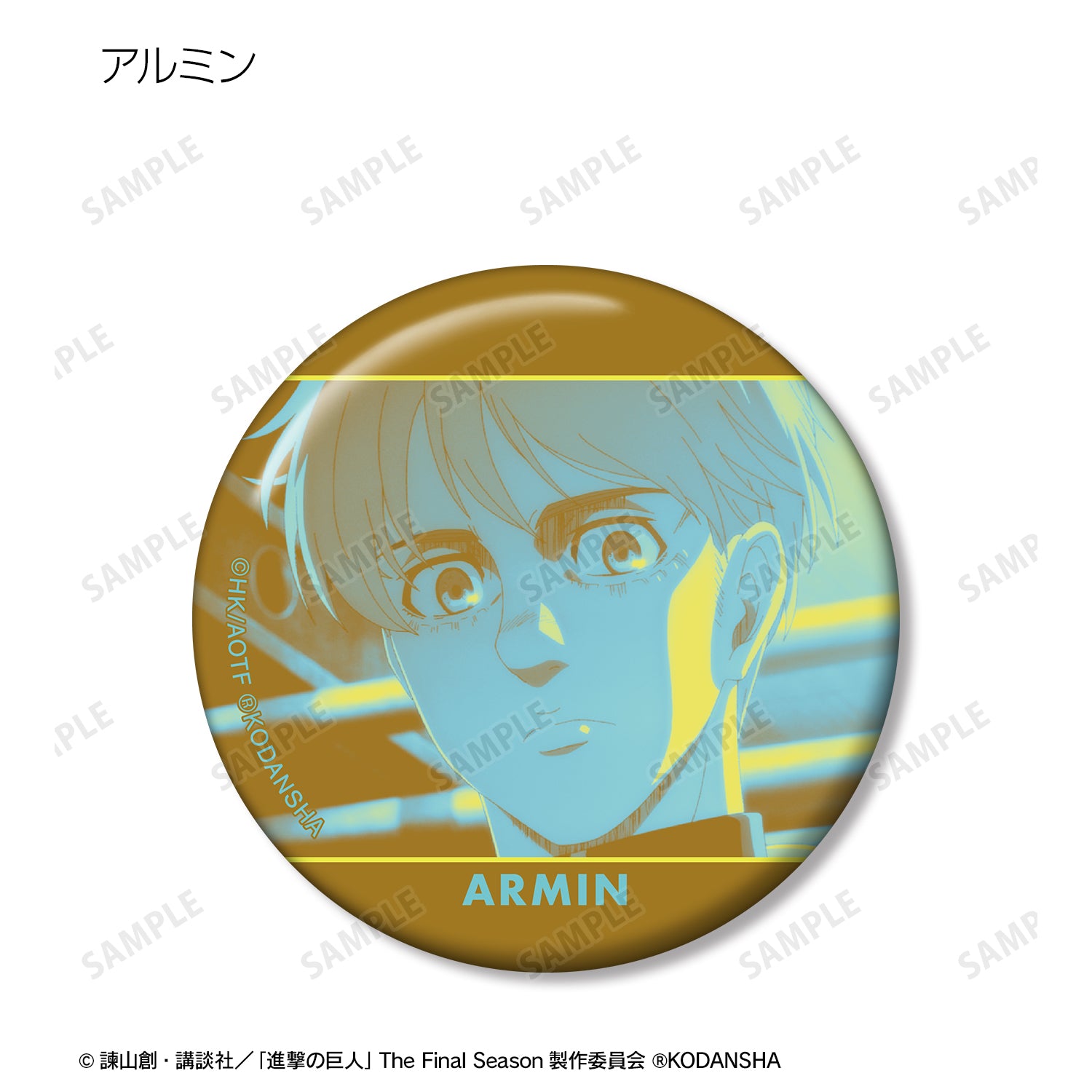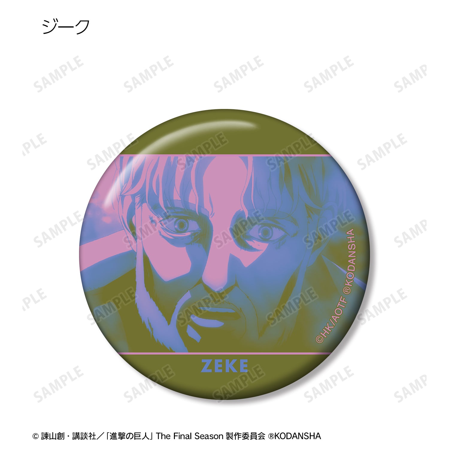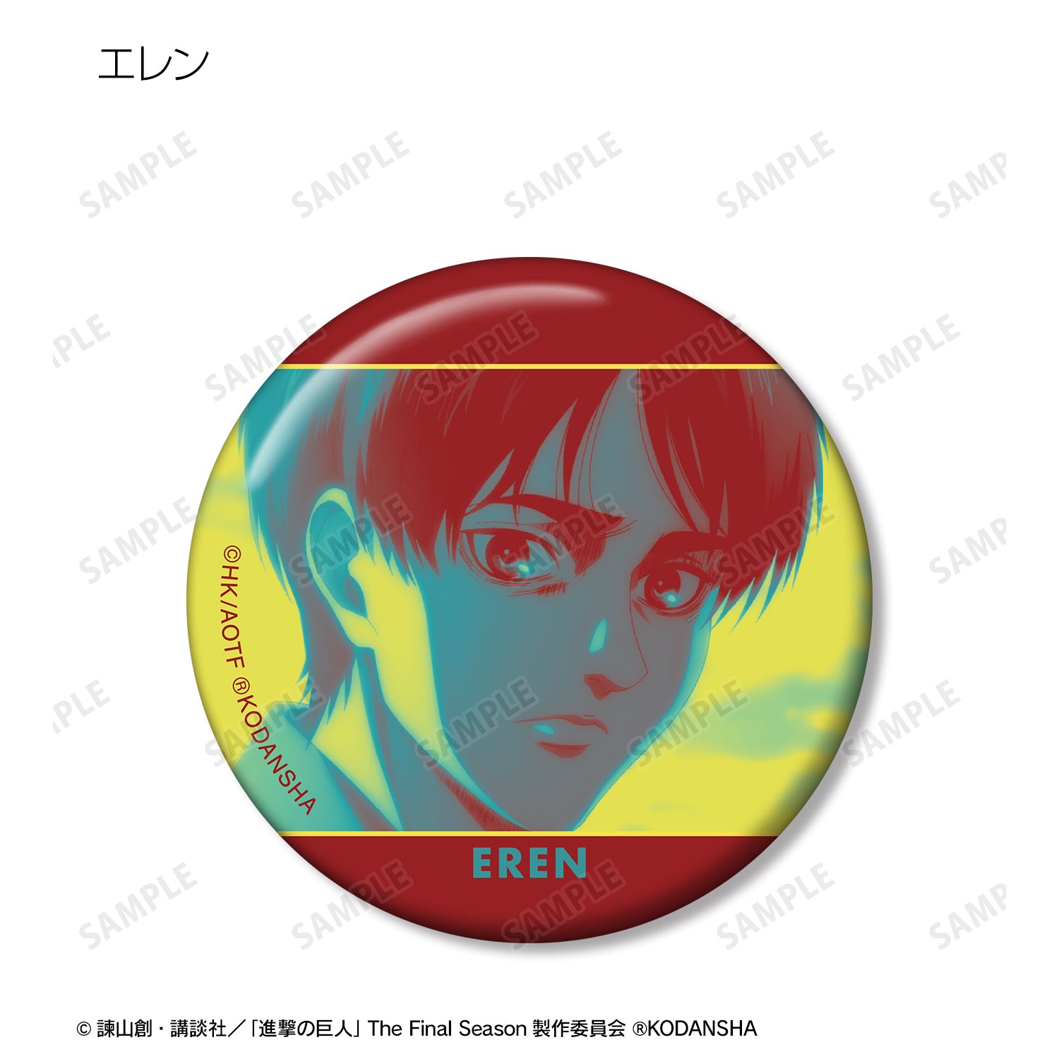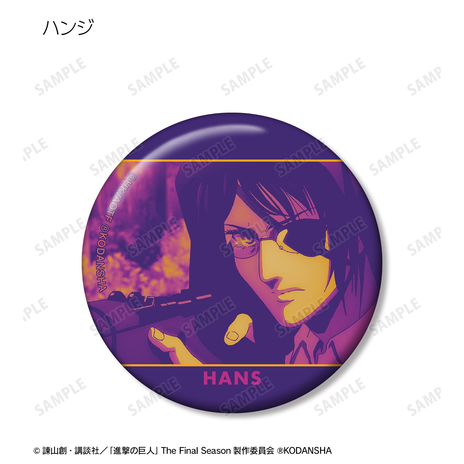 艾倫、三笠、阿明、讓、萊納、韓吉、列維和澤克的場景以全新的配色方案表現出來,並製作成罐頭徽章。