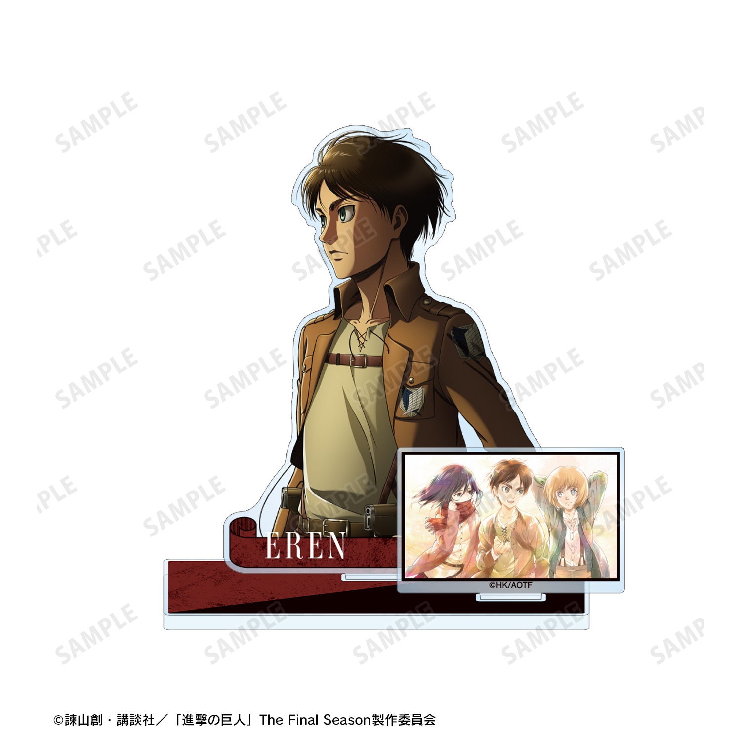 Eren 的插圖與令人印象深刻的場景部件一起被製作成一個大型亞克力支架。