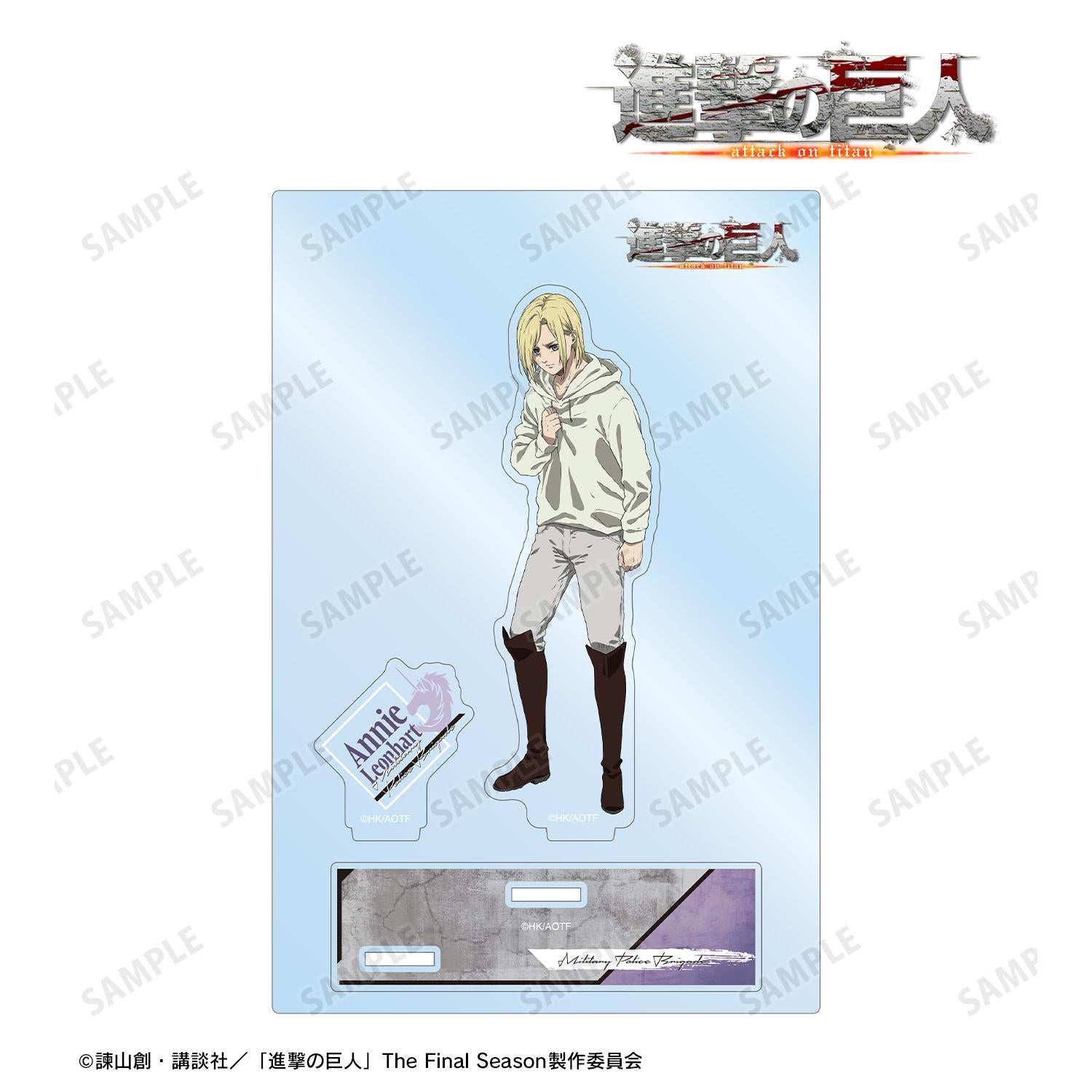 安妮的插圖、角色的名字和憲兵隊的標誌被製作成一個帶部件的大型亞克力支架。