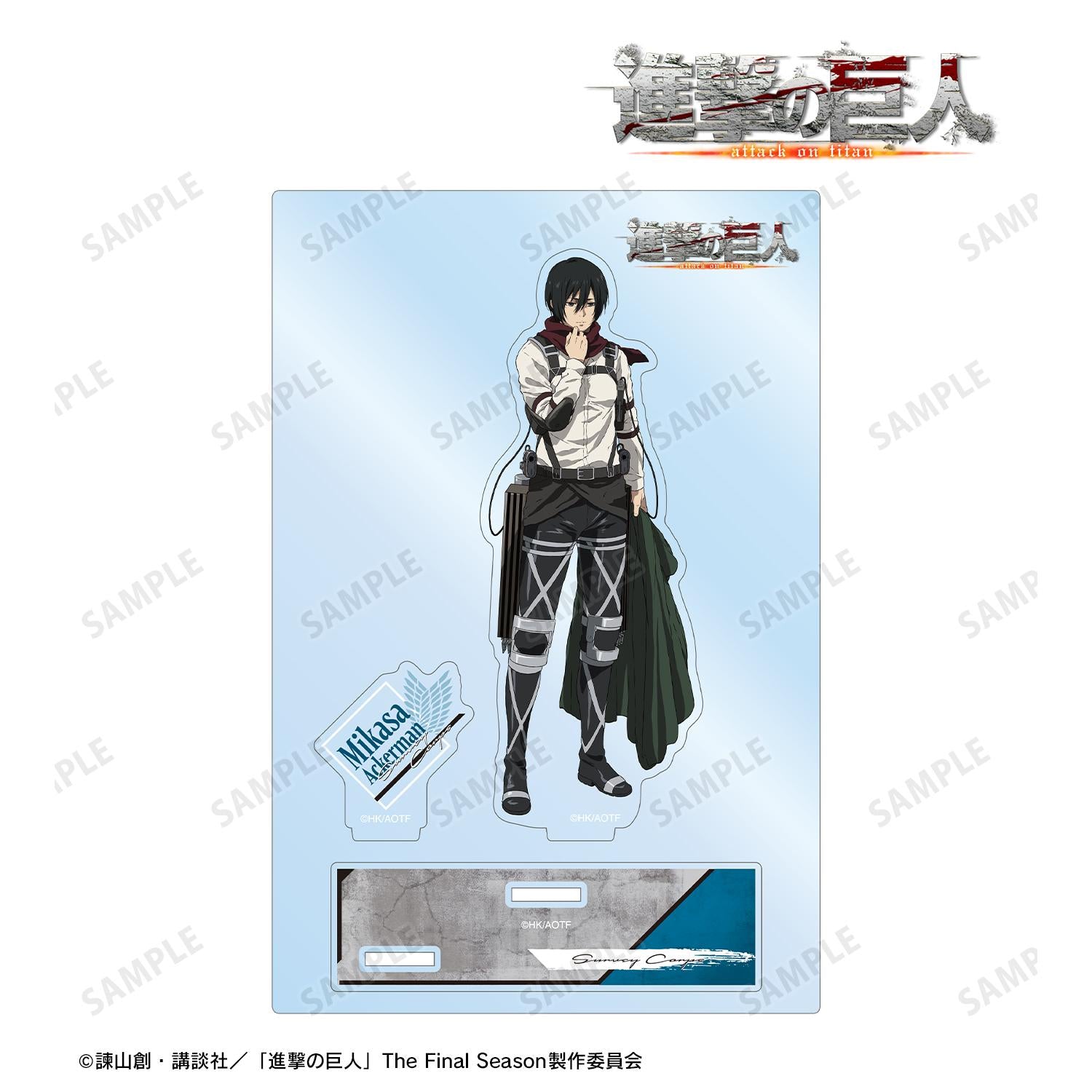 三笠的插圖、角色的名字和翅膀被製作成一個帶部件的大型亞克力支架。