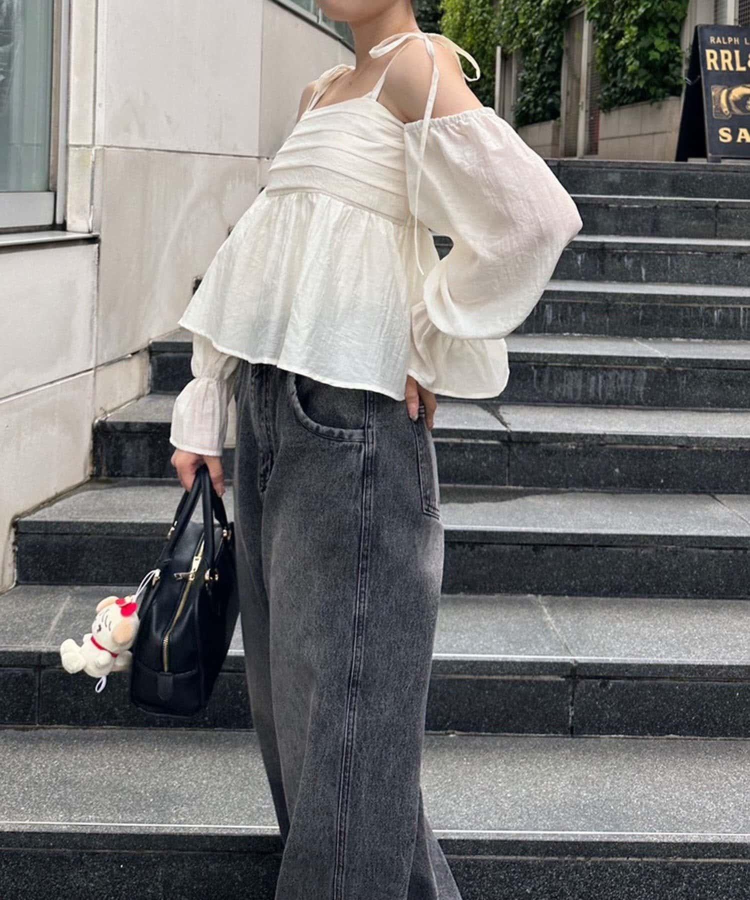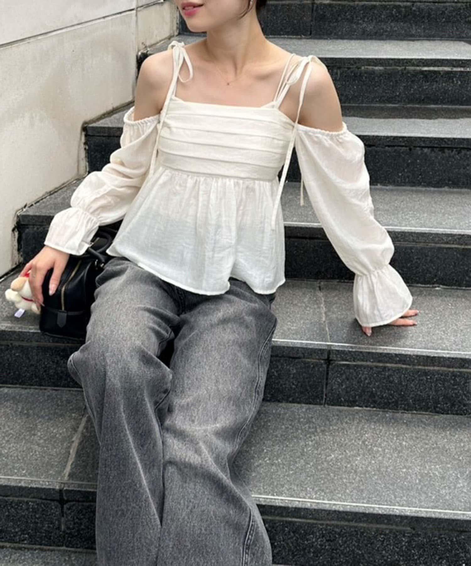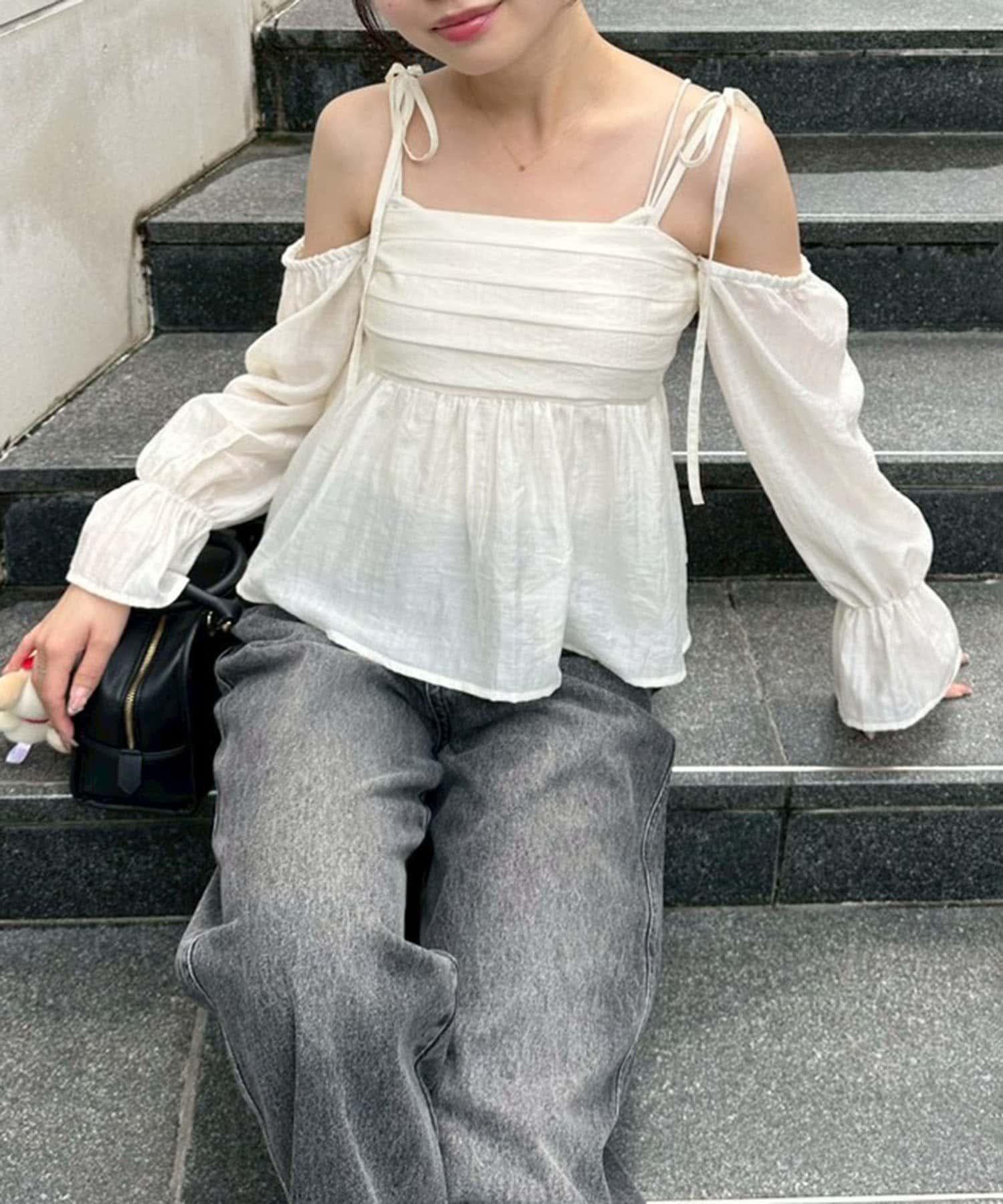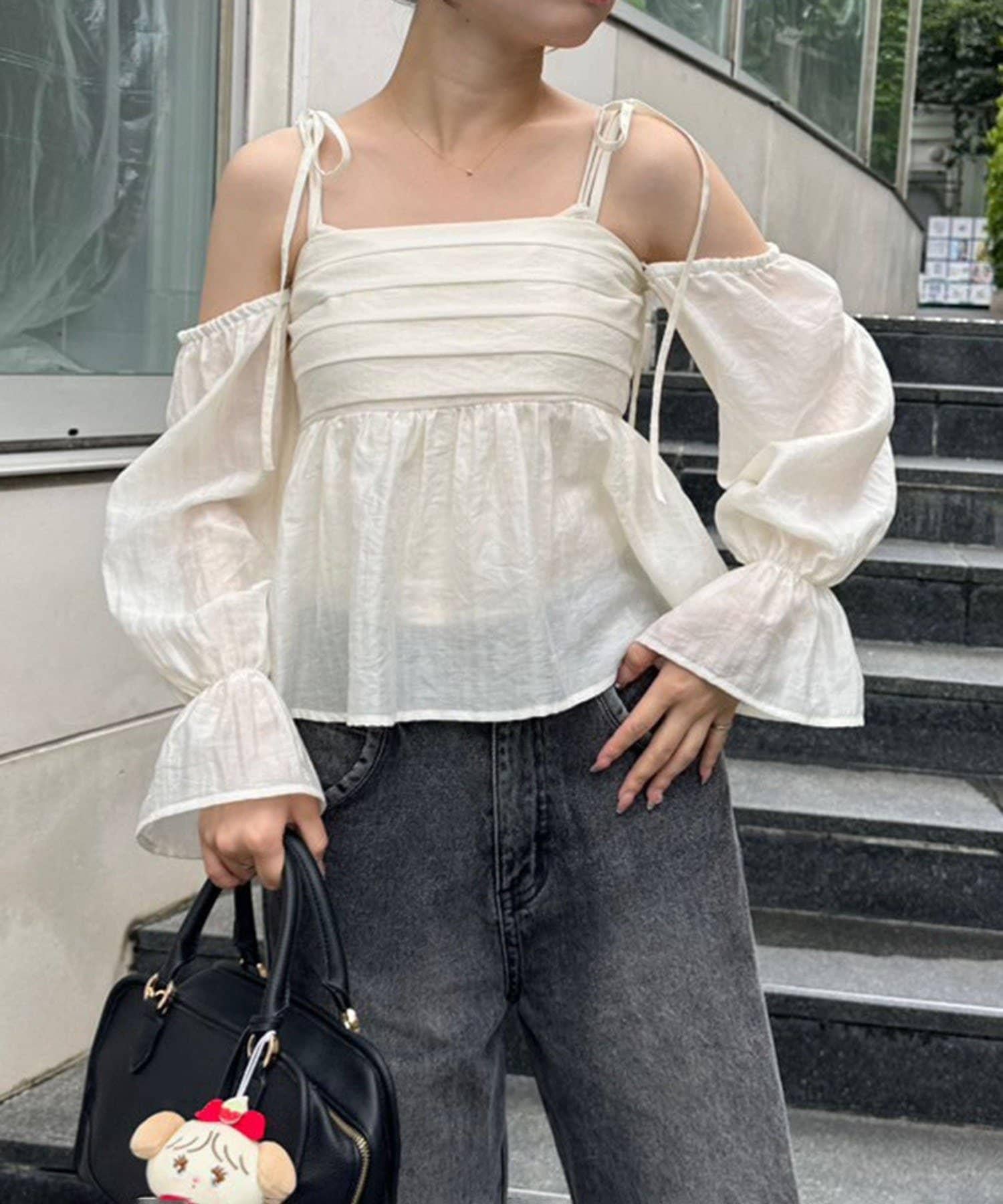 【適合夏秋季穿著】袖子可兩穿抽褶襯衫