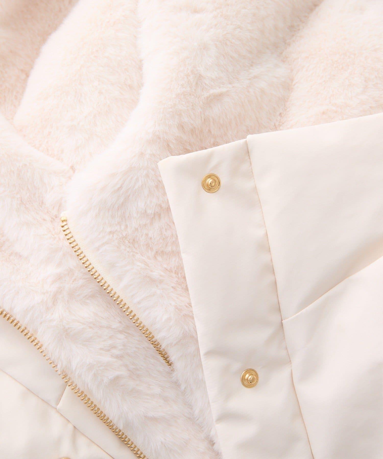 一款帶有可拆卸皮草襯裡的羽絨服,營造出優雅成熟的氛圍。