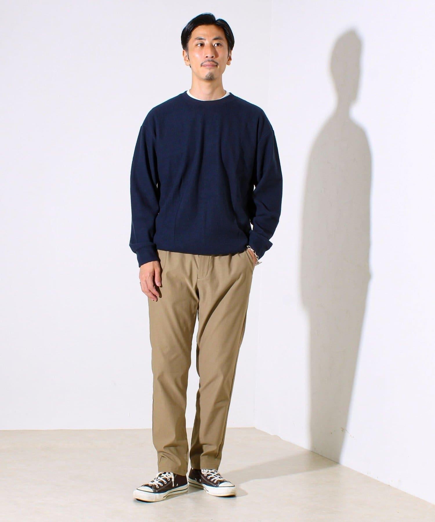 #Dropped hem T #Raised waffle #Unisex coordinates #One-mile wear #Autumn/Winter tops #Layered style #Fluffy and warm #Set-up compatible