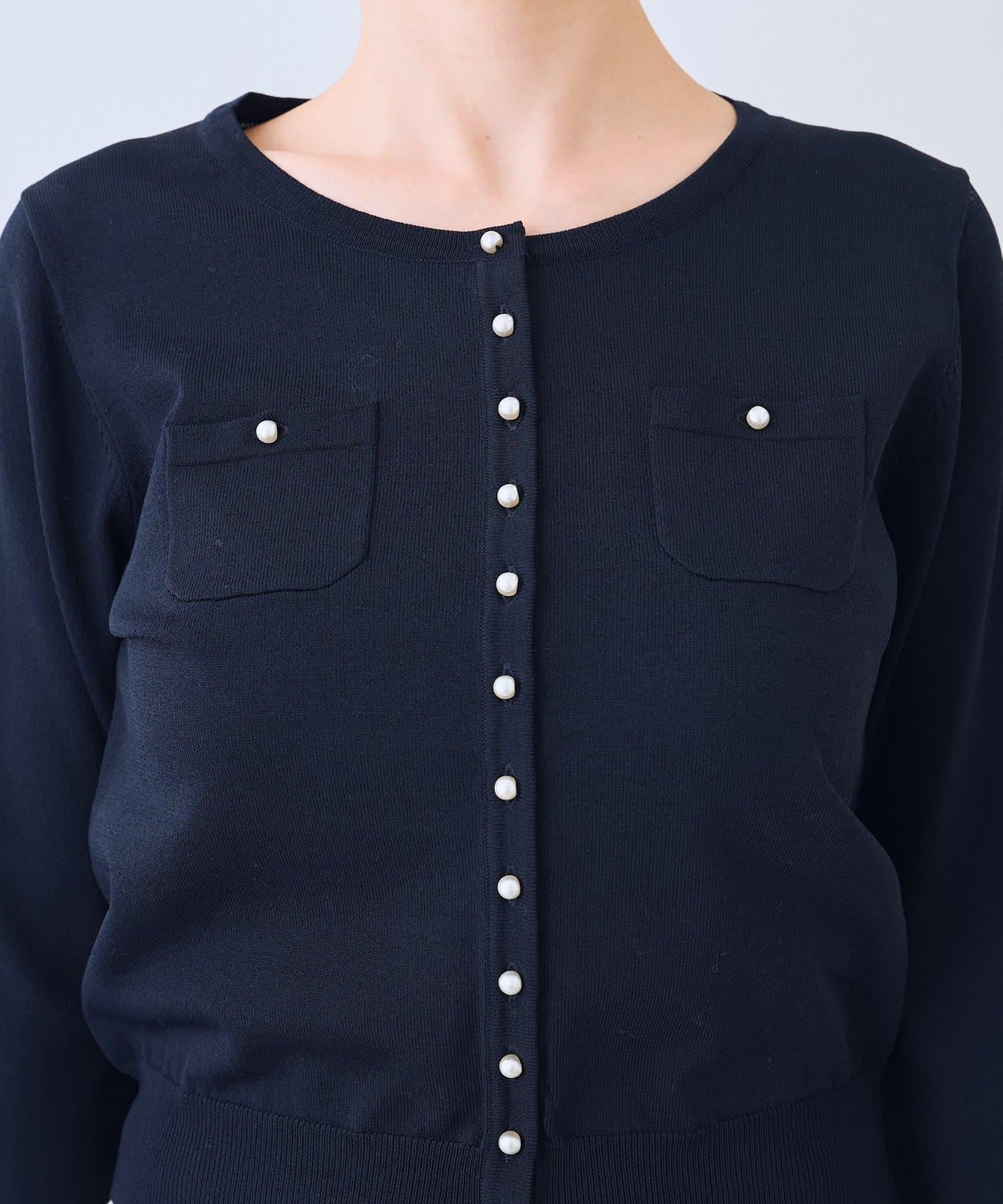 珍珠鈕釦為這款開衫增添了一絲微妙的魅力。