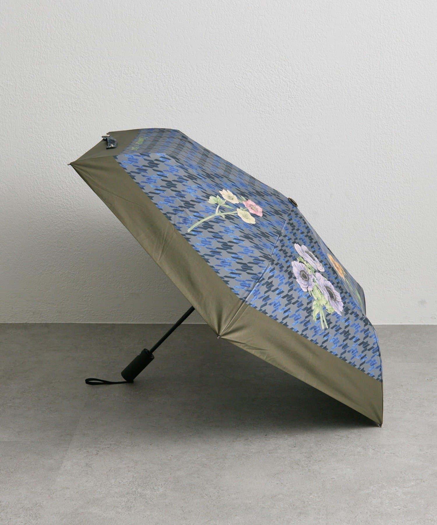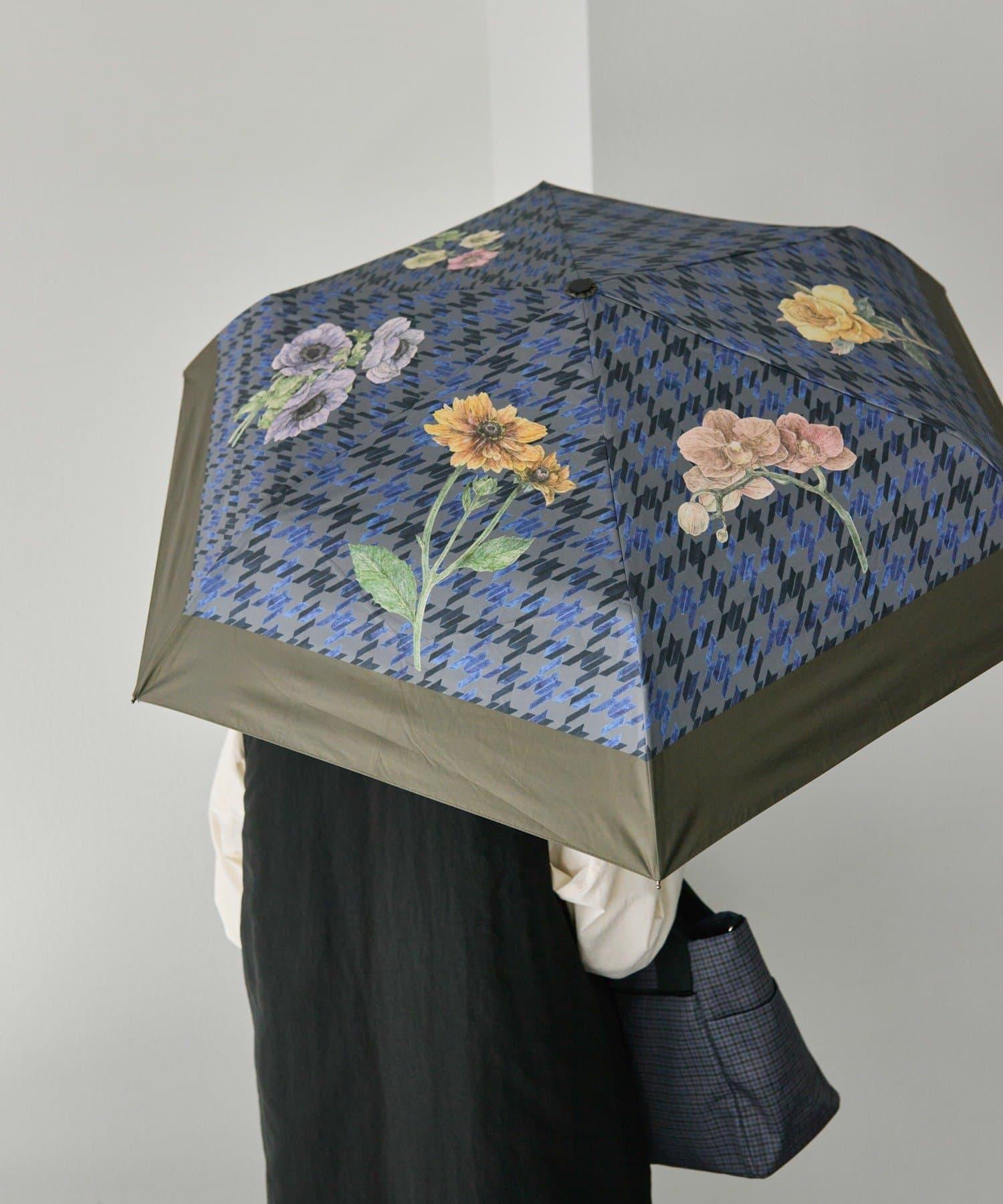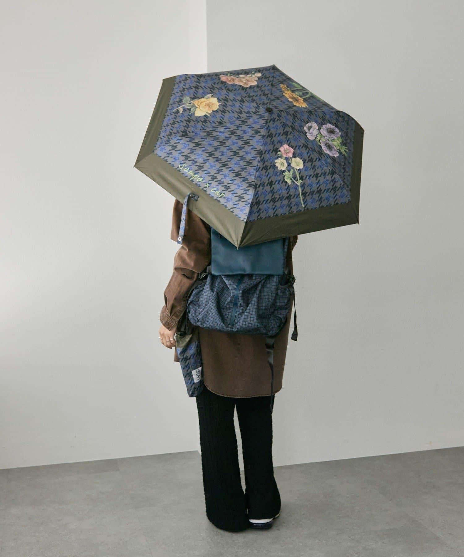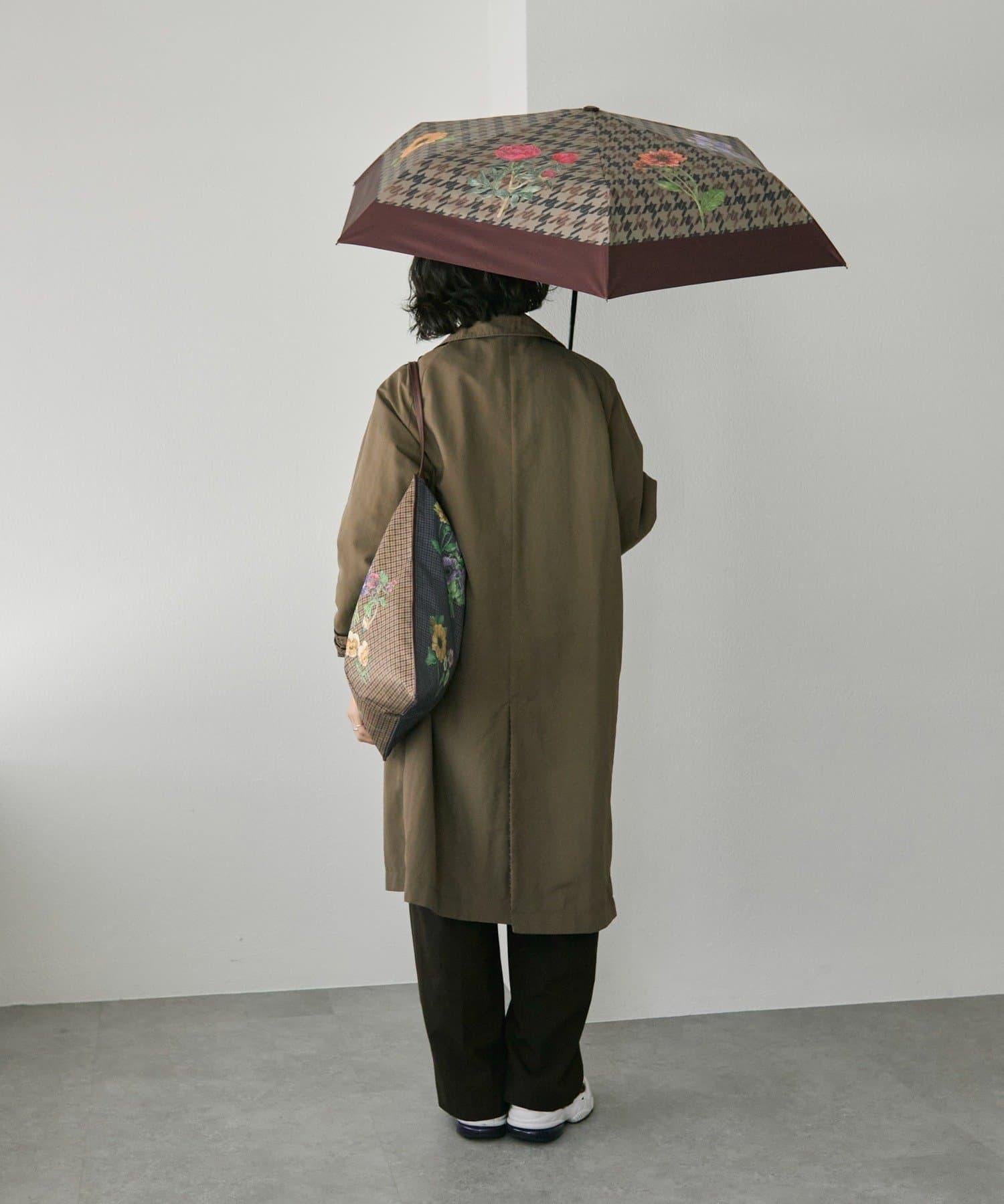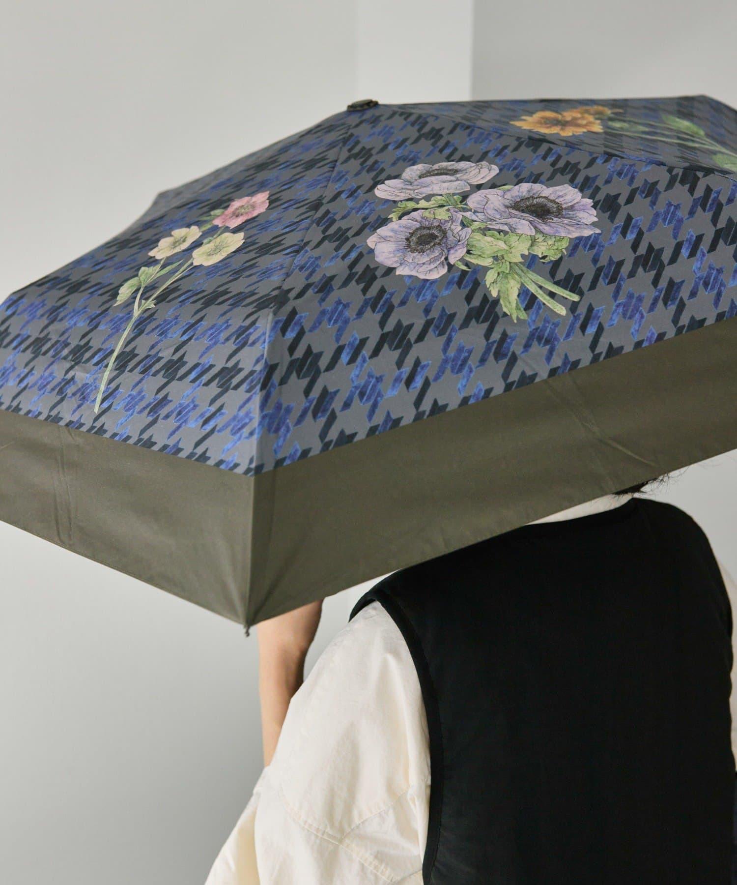摺疊傘上交錯的格子和花朵圖案,晴雨兩用。