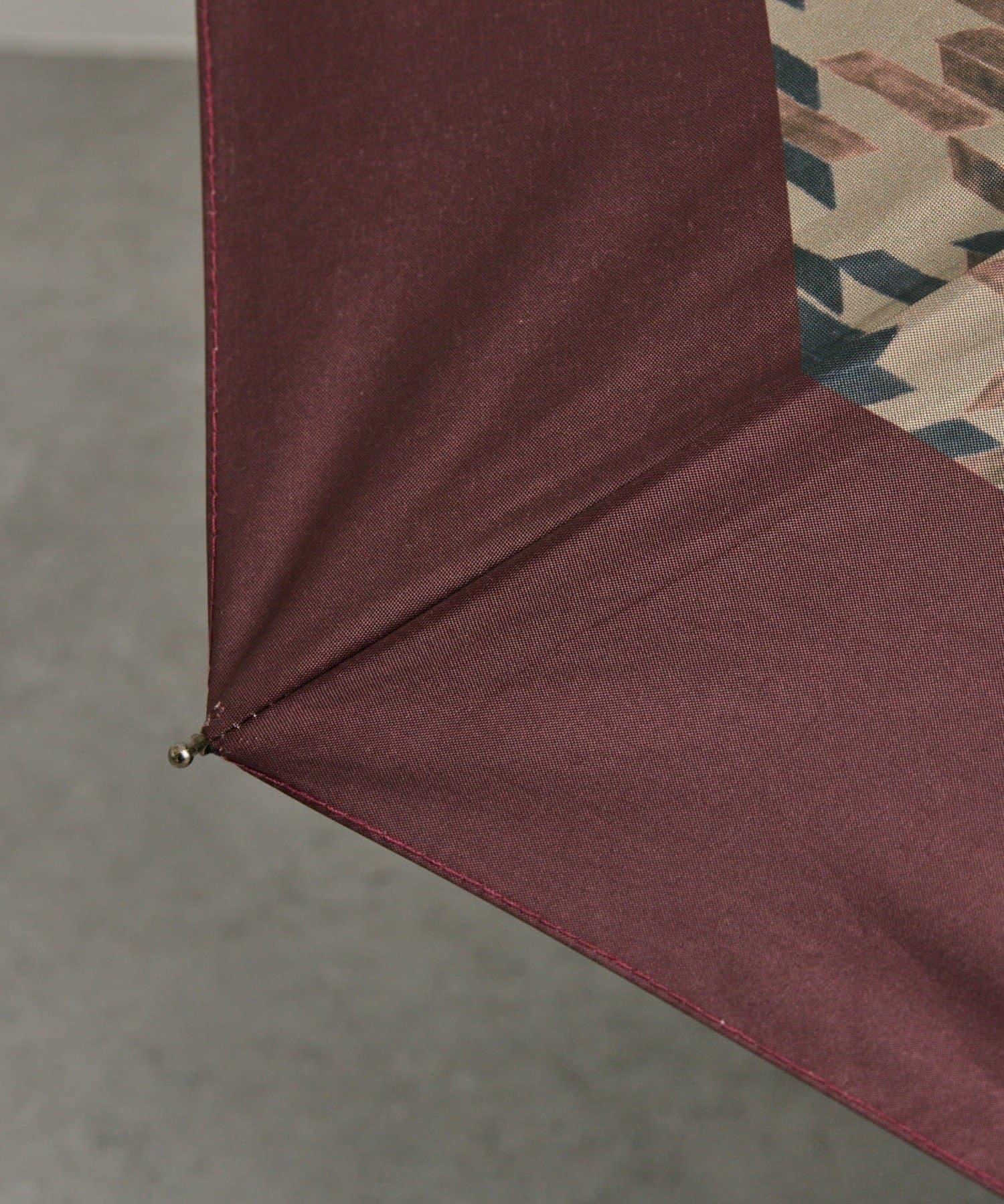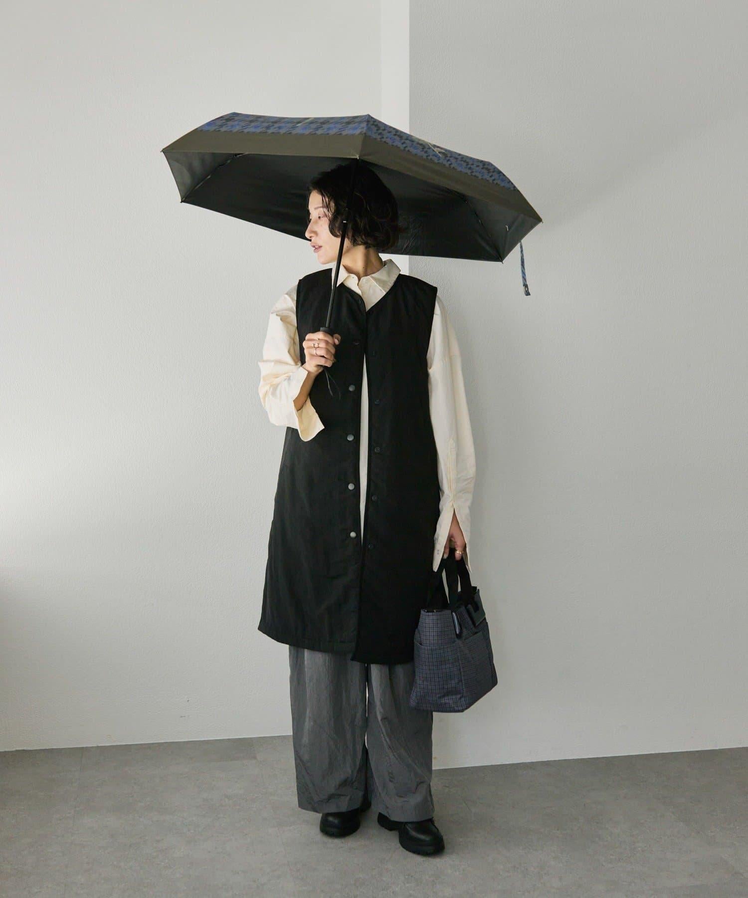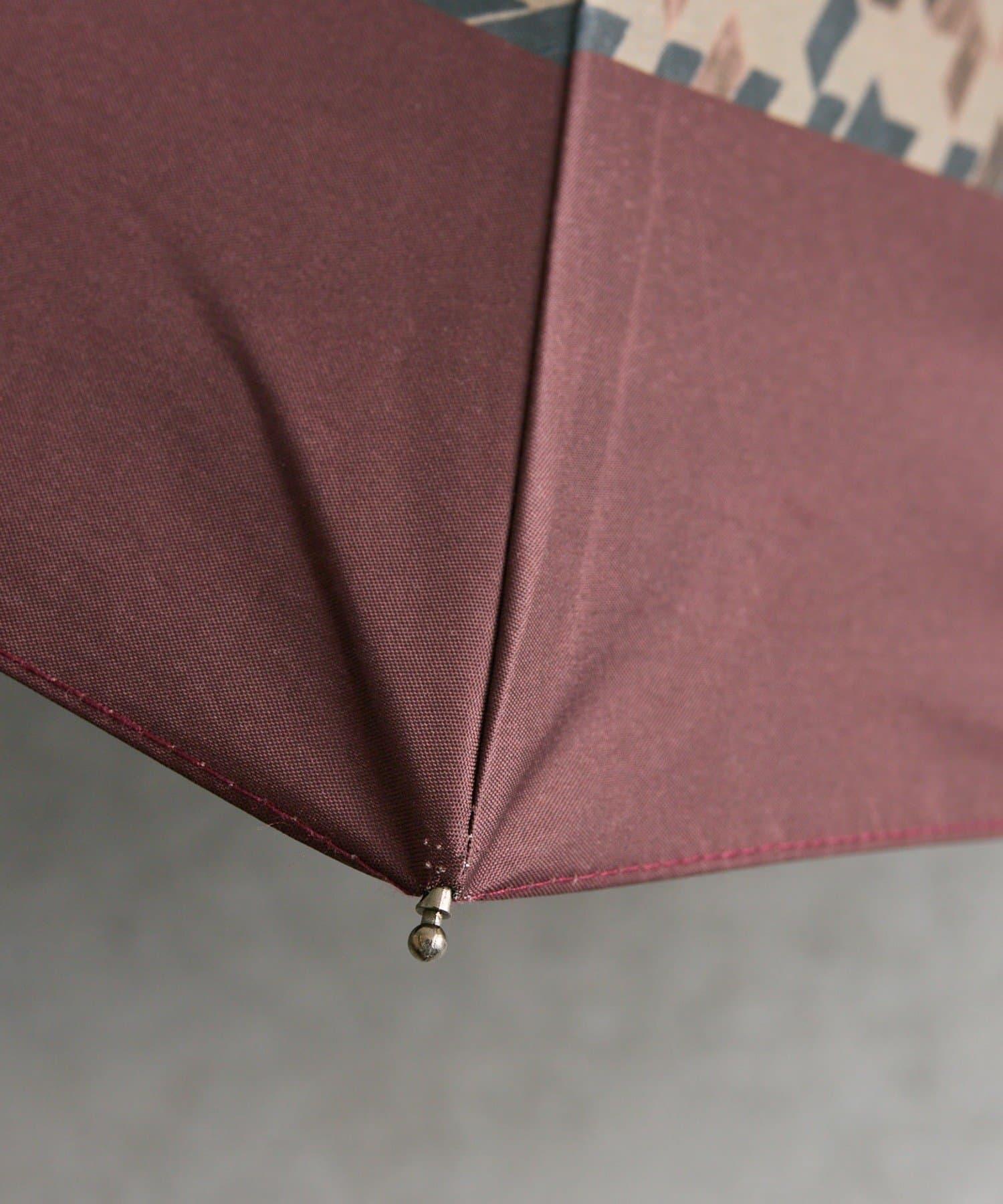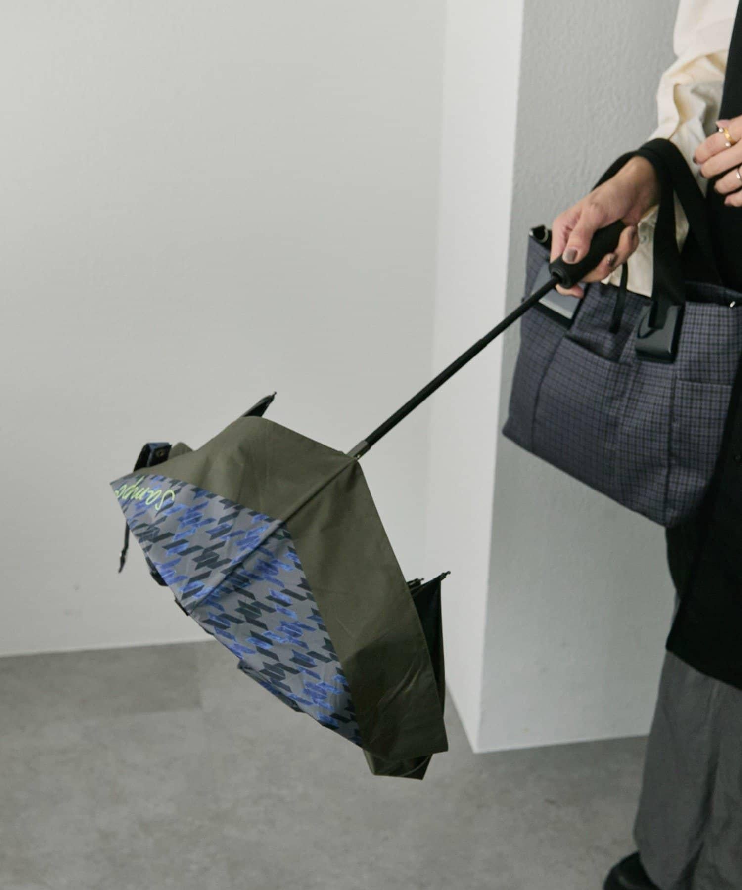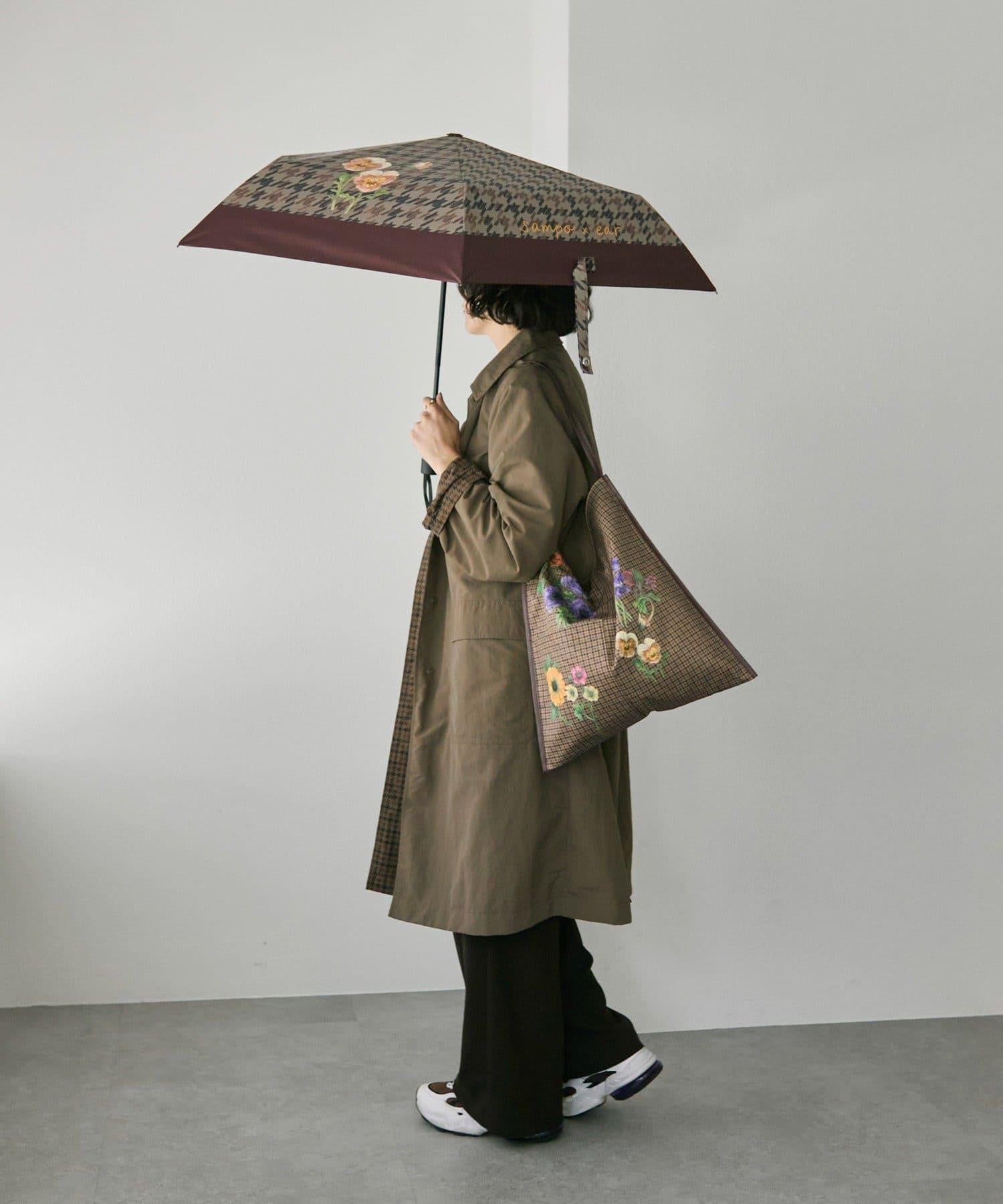 摺疊傘上交錯的格子和花朵圖案,晴雨兩用。