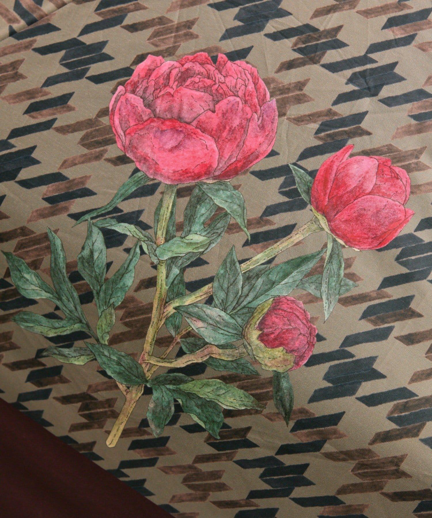 錯落有致的格子圖案充滿古典氣息,五顏六色的花朵競相綻放、