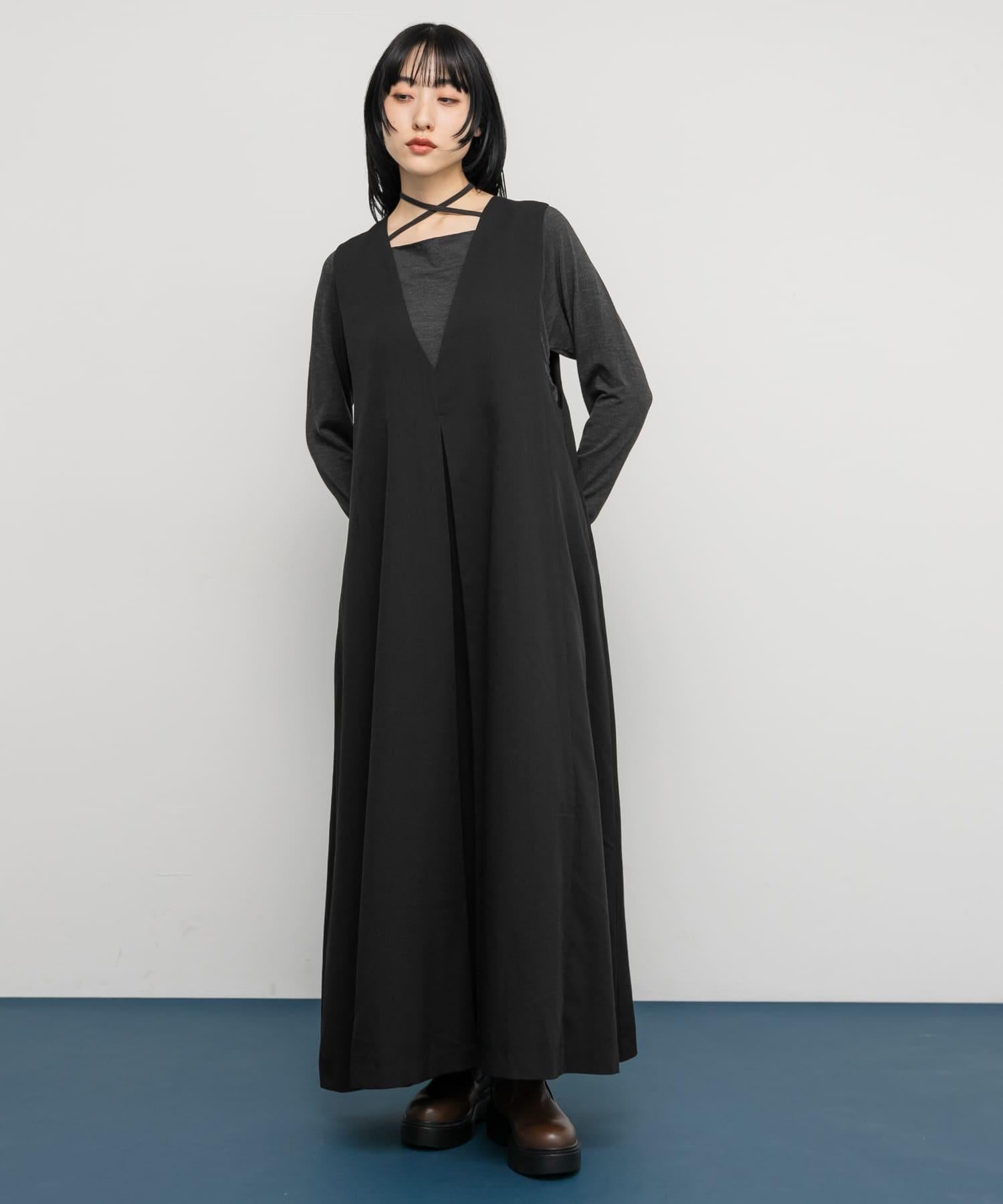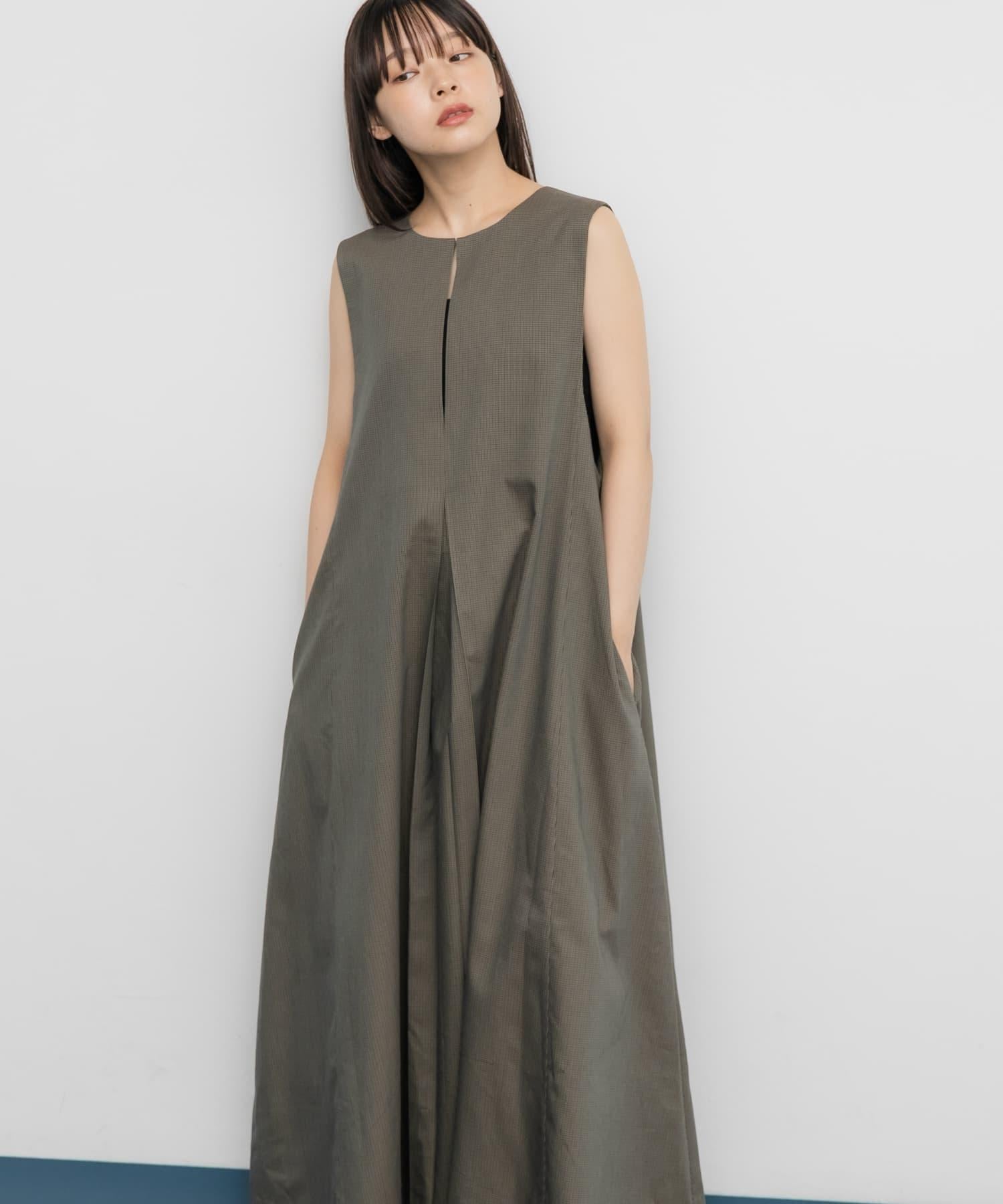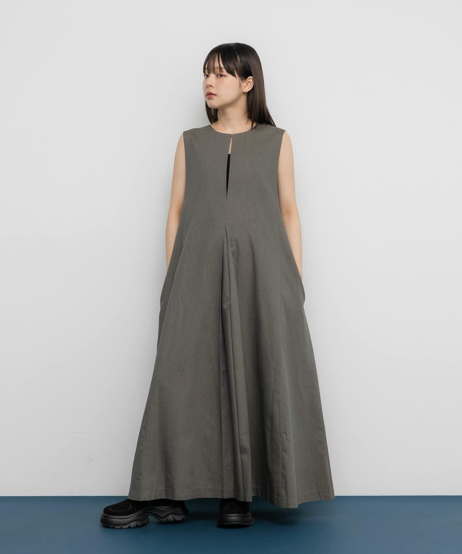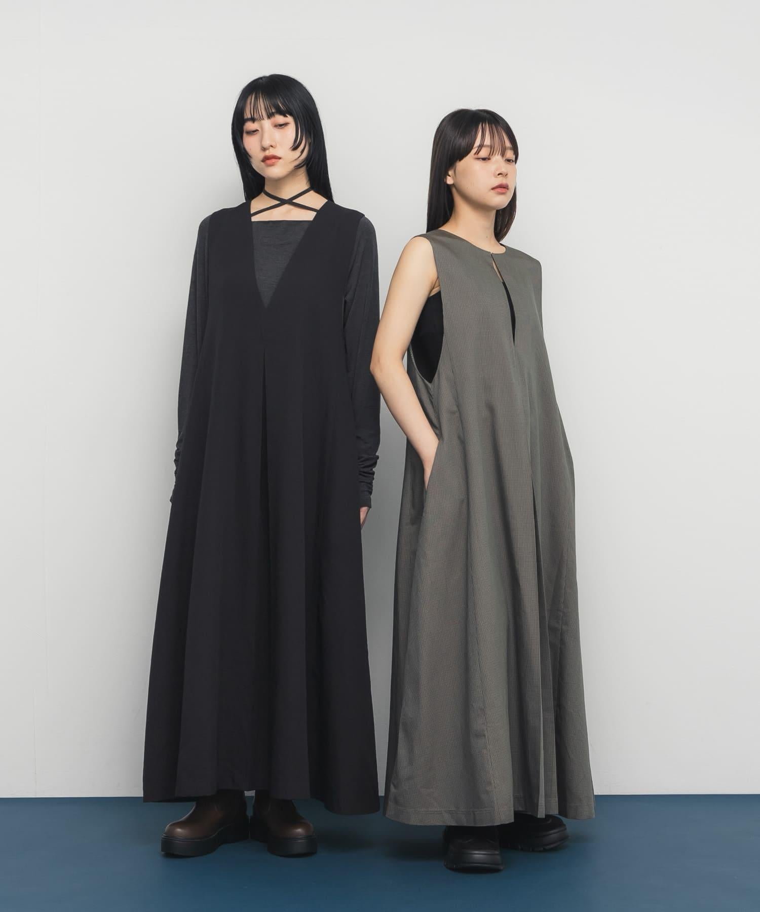 喇叭形連身裙,前襟有獨特的收腰設計。輪廓簡潔流暢,盡顯淑女風範。袖口開闊,便於內搭一件袖子寬大的上衣。另一大亮點是它可以前後兩穿,並有兩種尺寸可供選擇。有多種素色和格紋可供選擇。