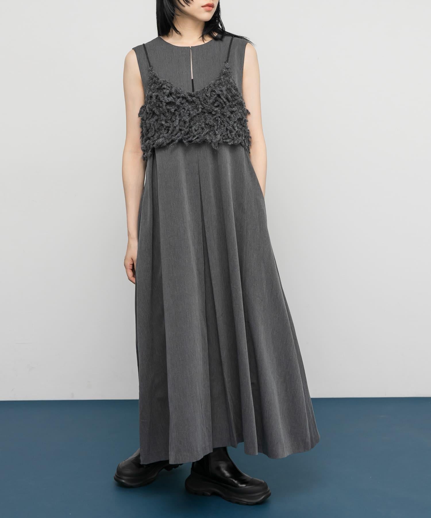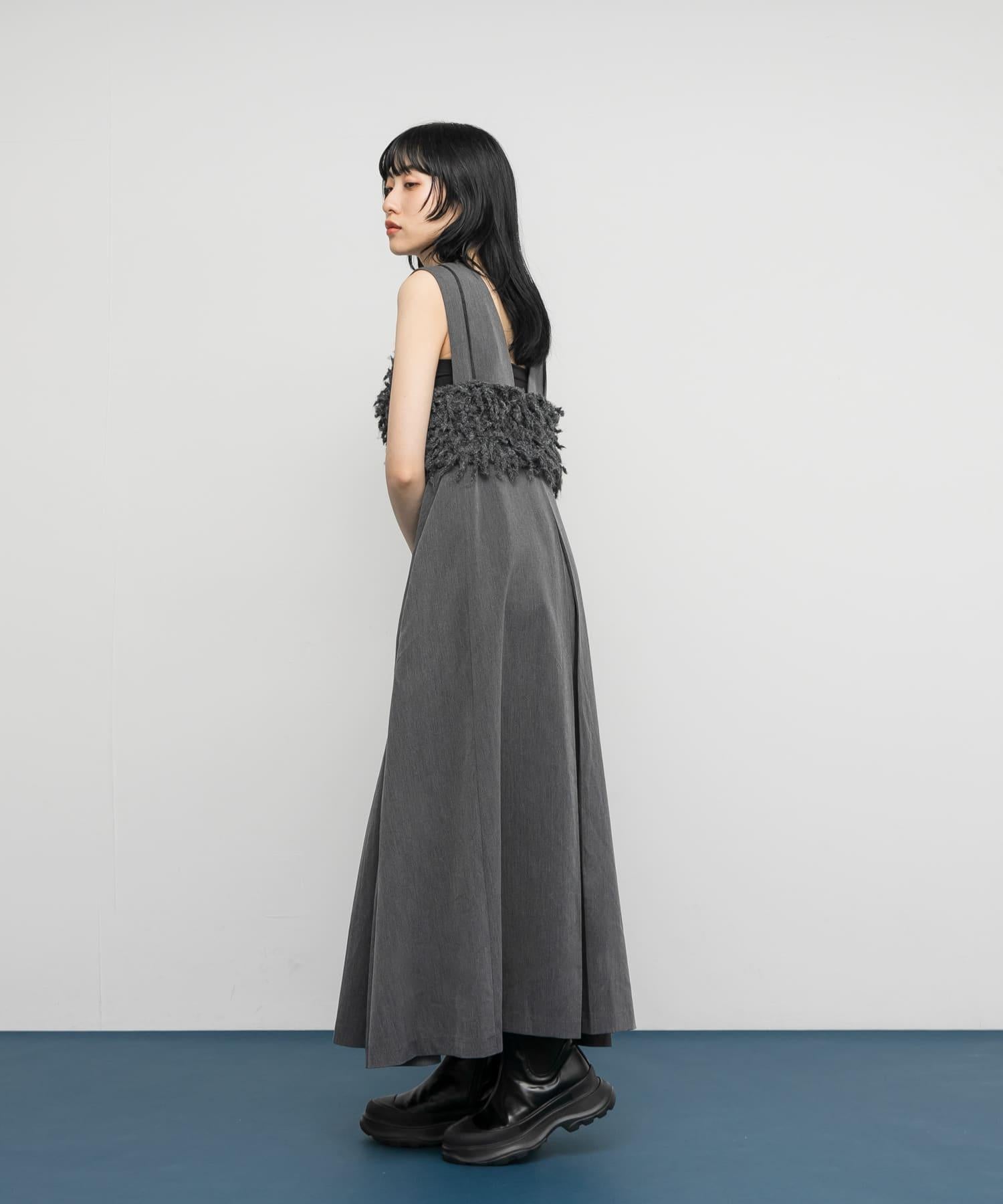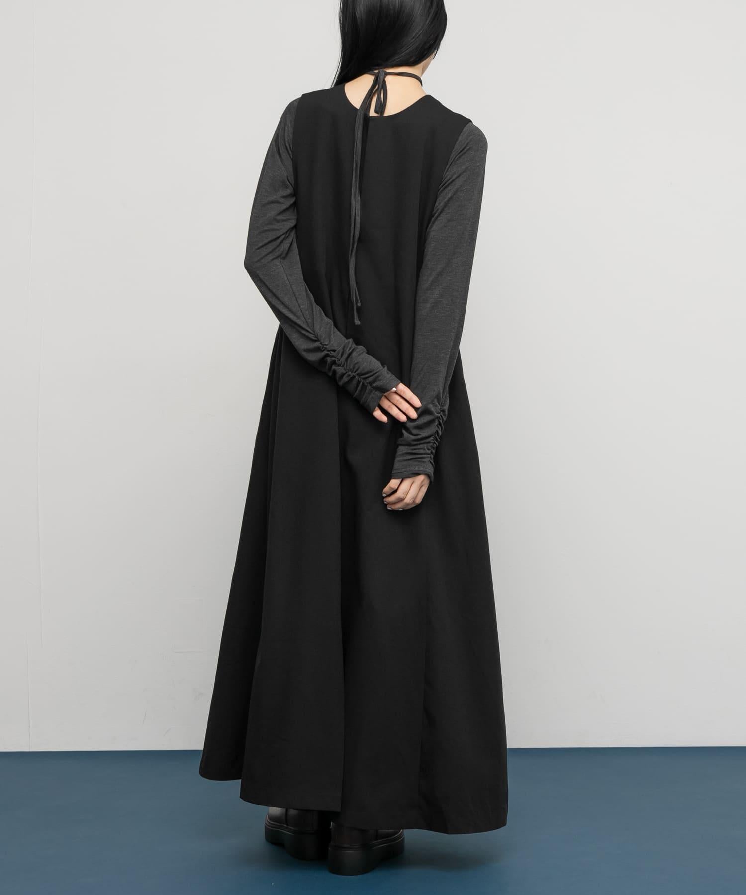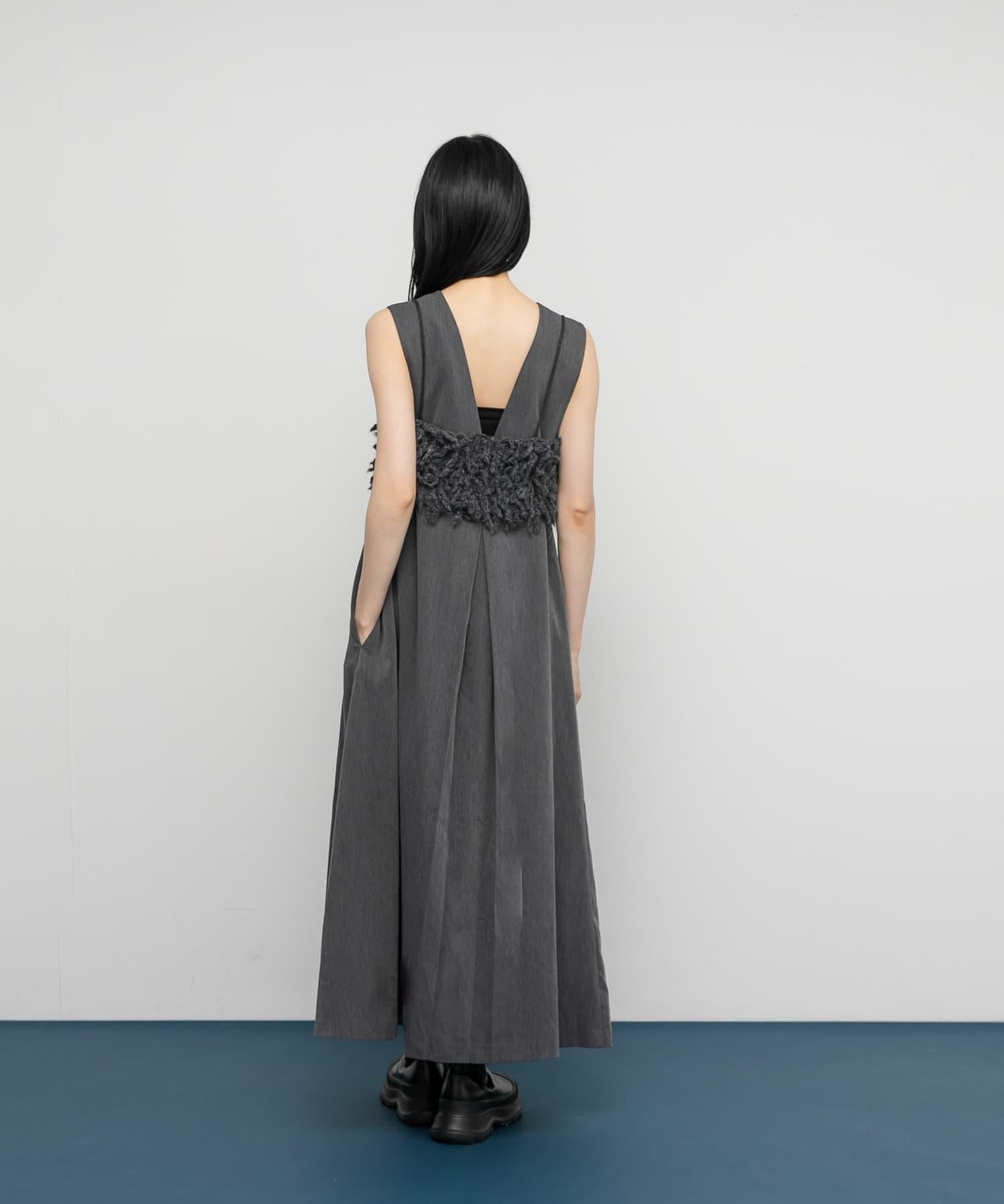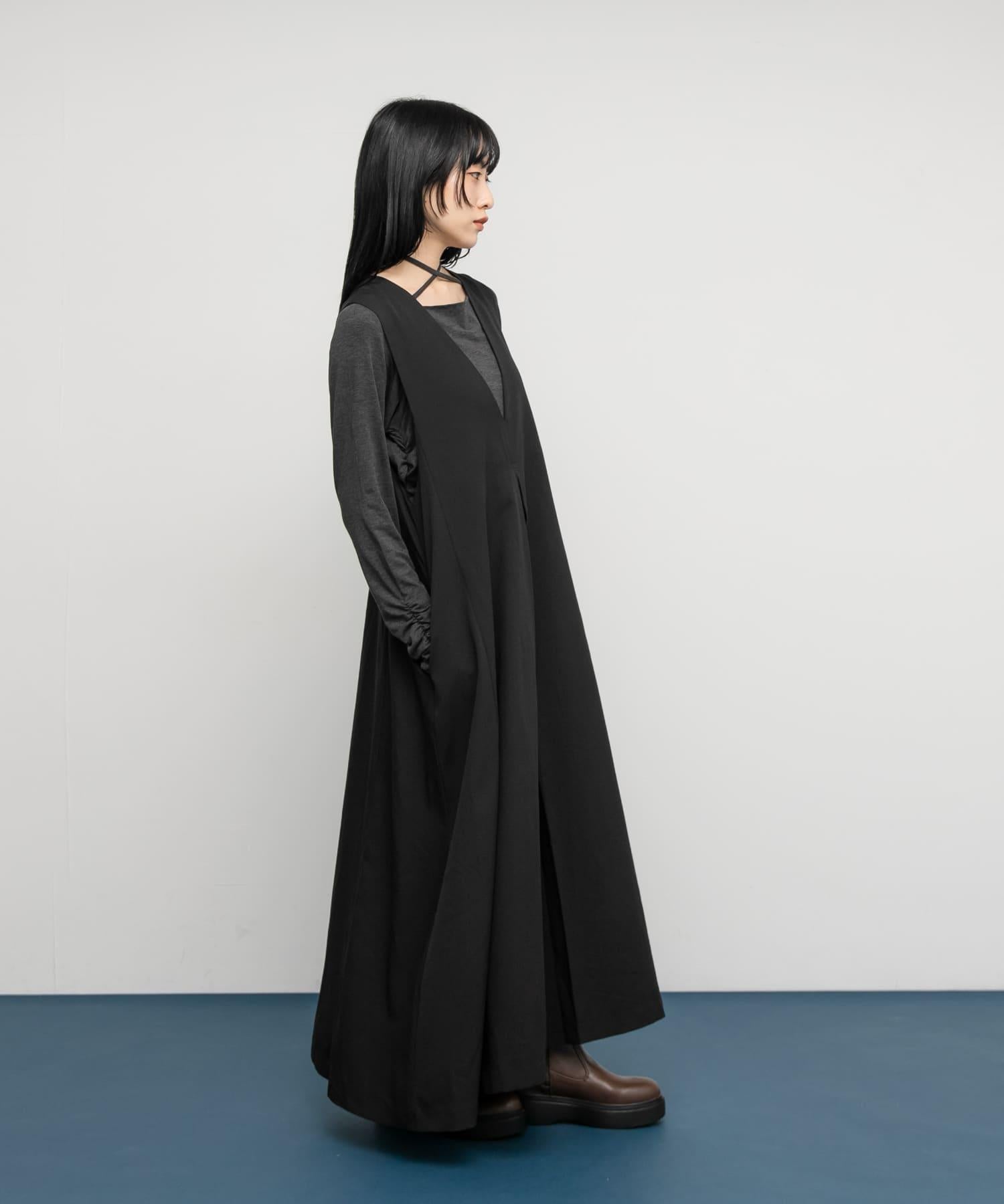 喇叭形連身裙,前襟有獨特的收腰設計。輪廓簡潔流暢,盡顯淑女風範。袖口開闊,便於內搭一件袖子寬大的上衣。另一大亮點是它可以前後兩穿,並有兩種尺寸可供選擇。有多種素色和格紋可供選擇。