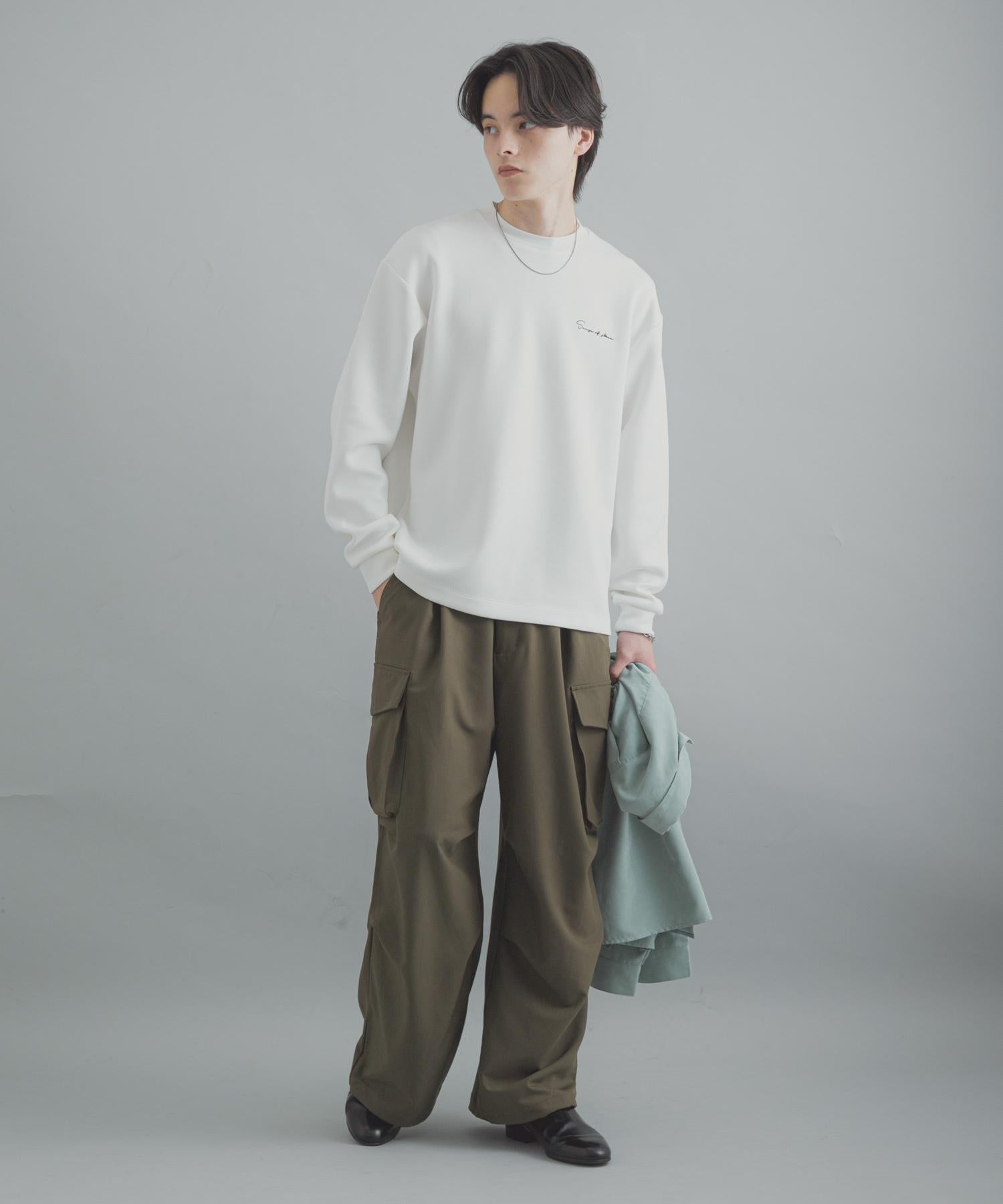採用質地結實的蓬布製成。其出色的伸縮性為您帶來舒適、易於活動的感覺。它還具有抗皺特性,易於打理,確保您即使在忙碌的日子裡也能保持良好的形象。