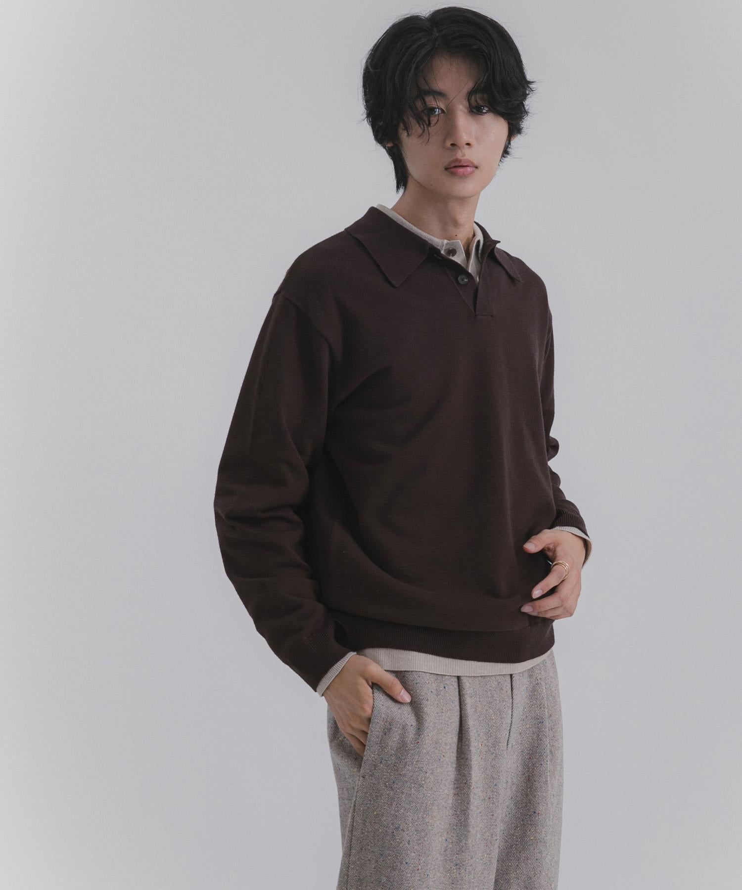 AAA7-12C101 彈力模擬領針織衫