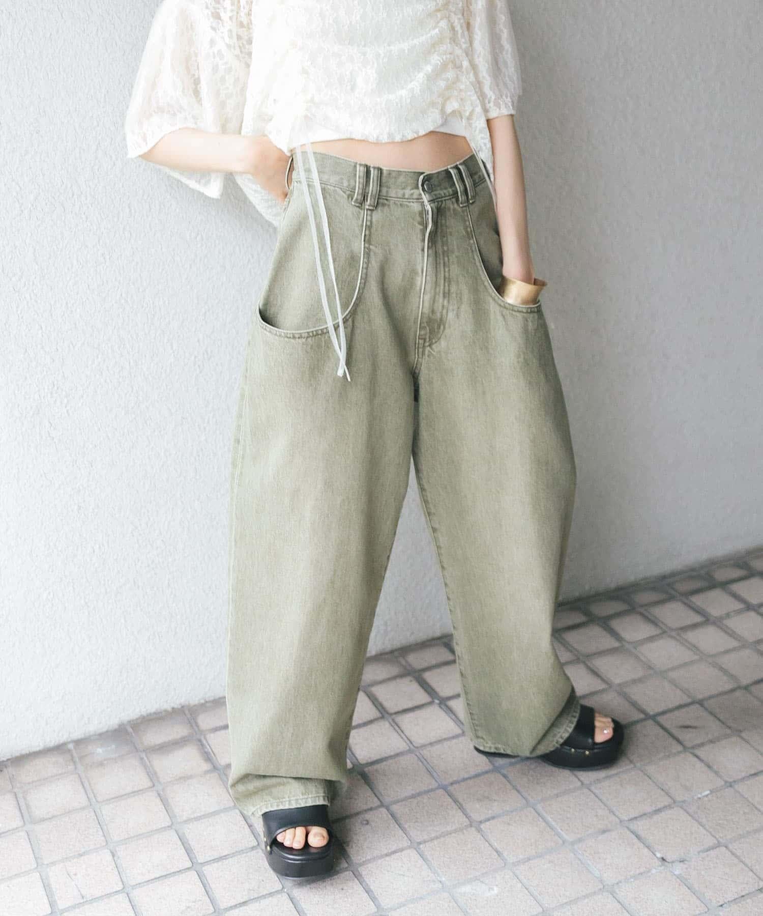 牛仔褲兩側的大口袋令人印象深刻。其受歡迎的秘訣在於,BIG 口袋和適度寬鬆的廓形的協同效果,既能遮住令人擔憂的腰部,又能使設計看起來時尚!此外,它還有三種尺寸可供選擇,適合不同人群穿著,這一點也不容忽視。