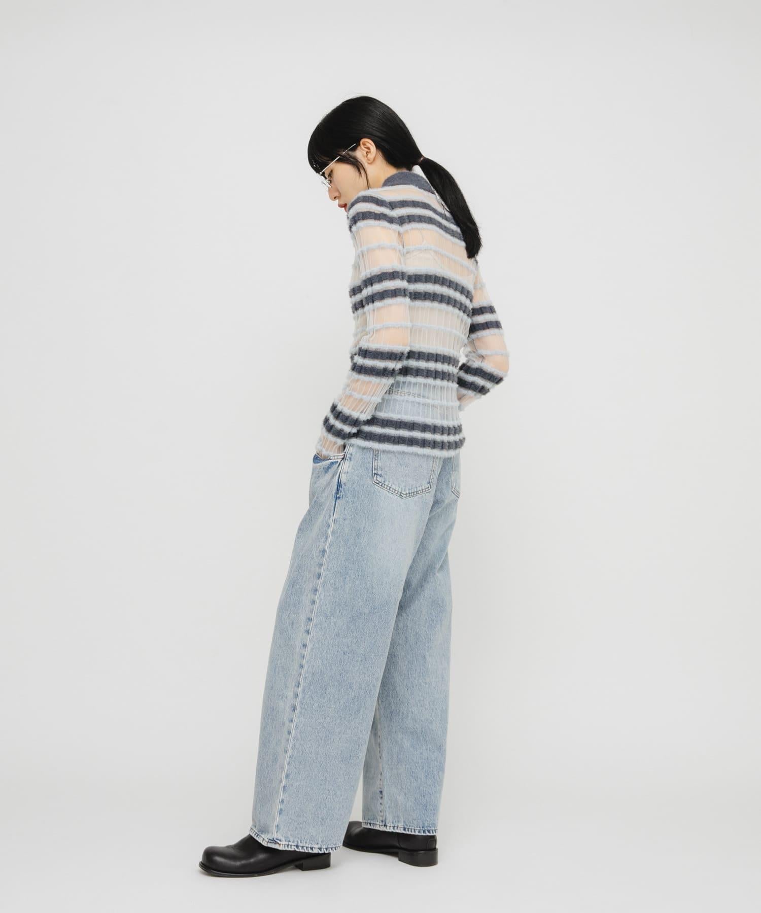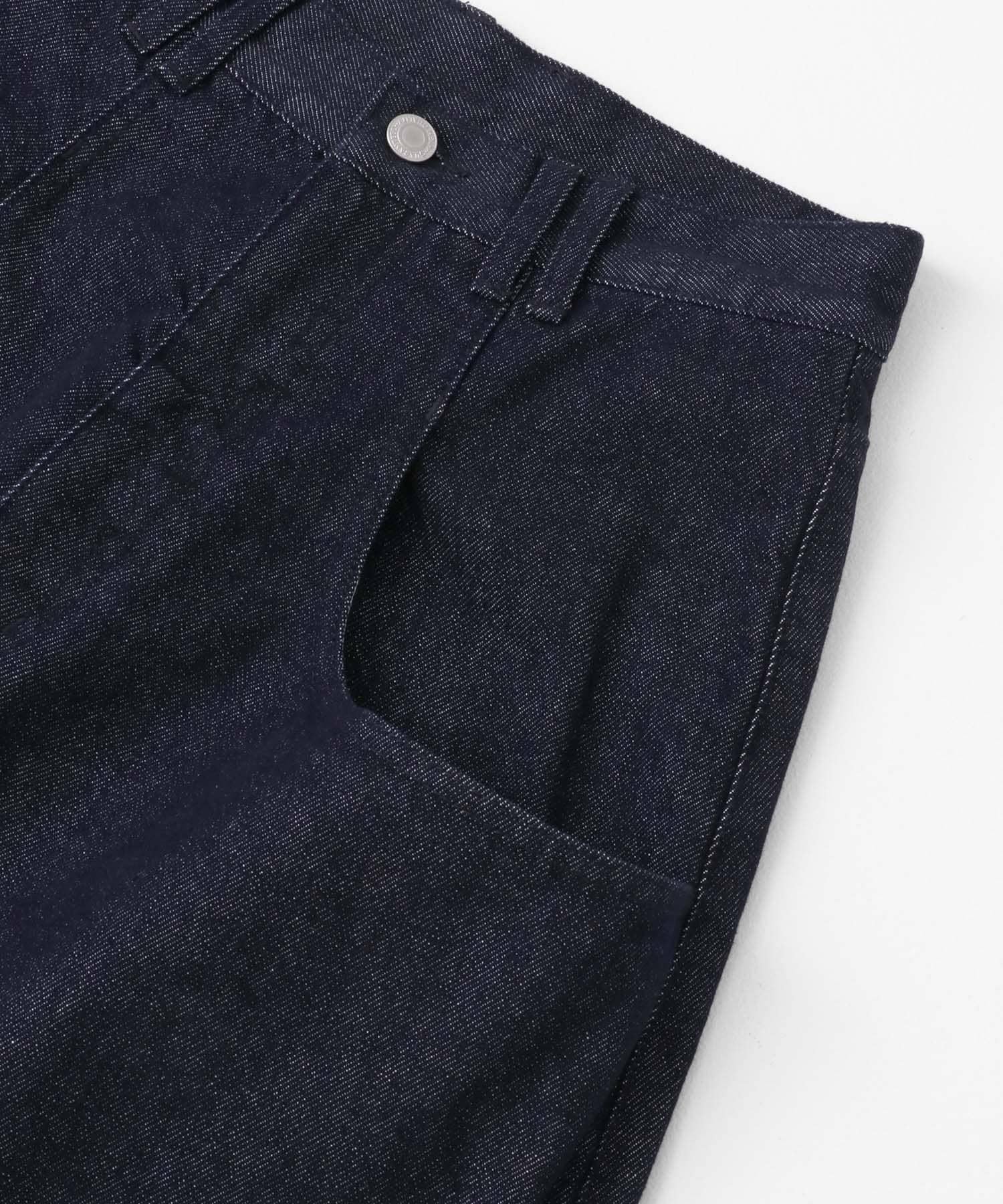 本品(INDIGO L.BLUE RIGID)為靛藍染色。過度摩擦可能會導致顏色遷移到其他單品上。