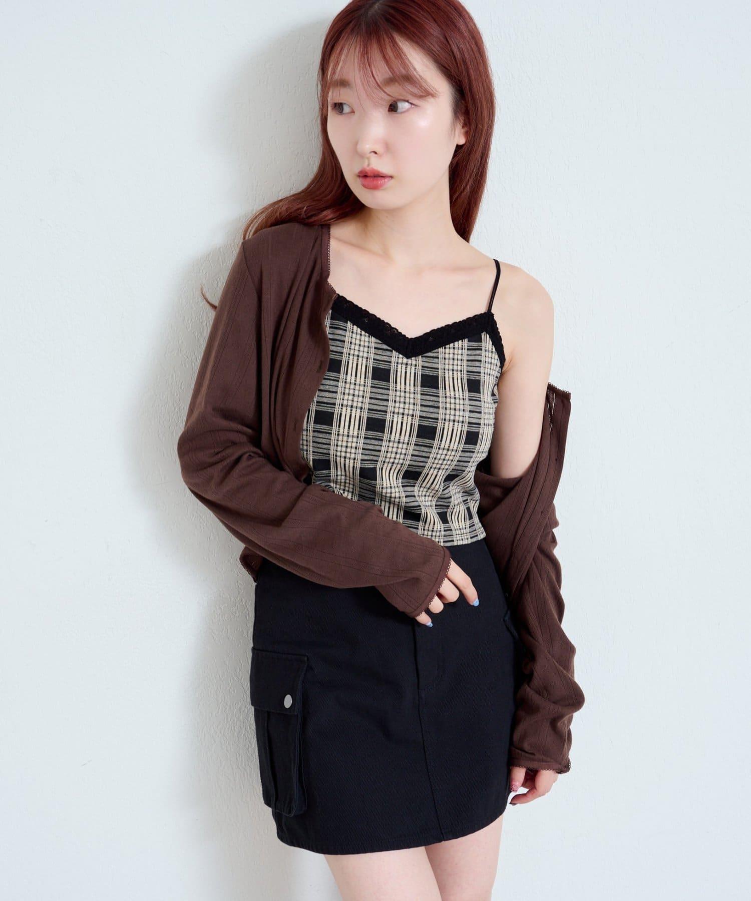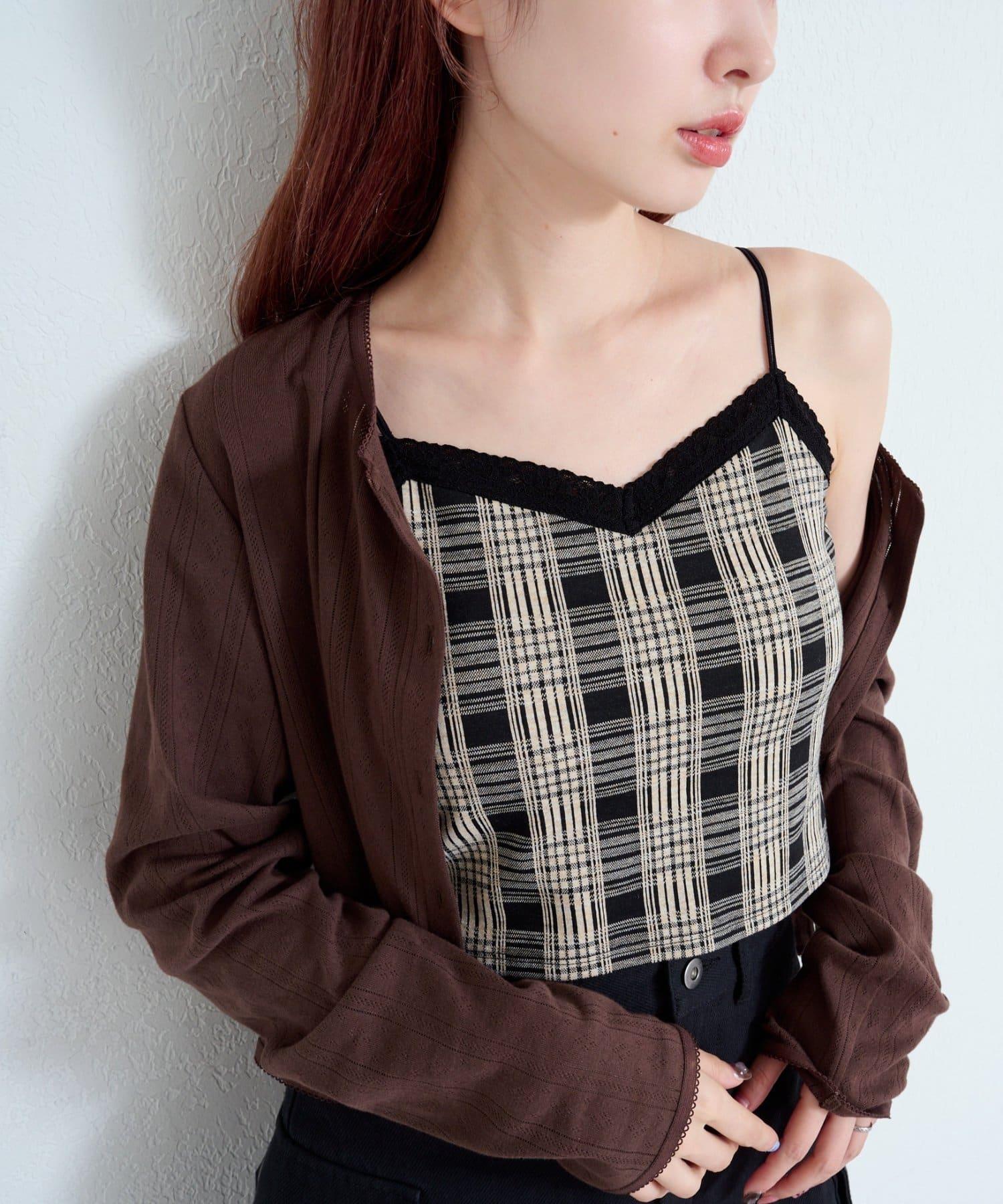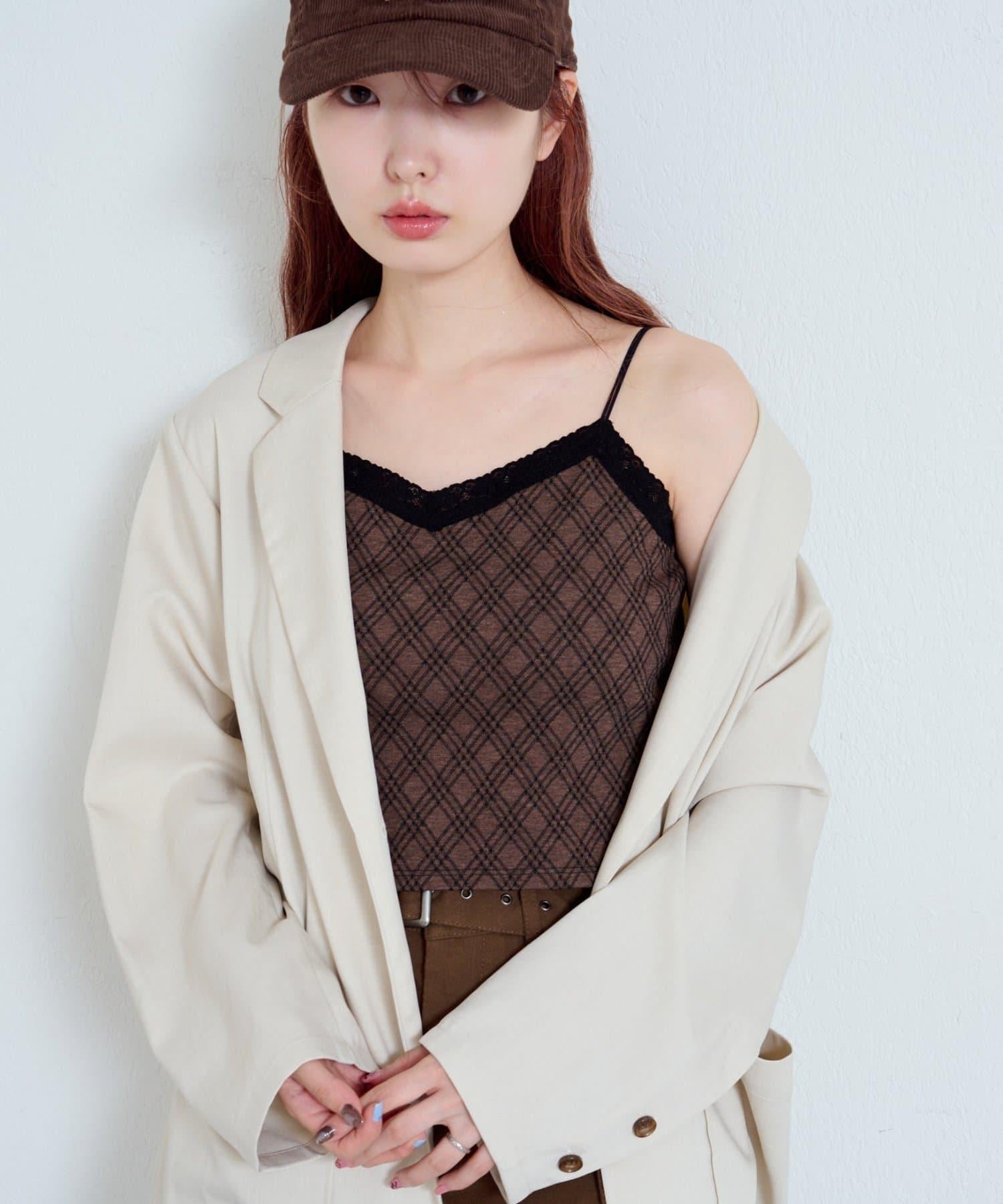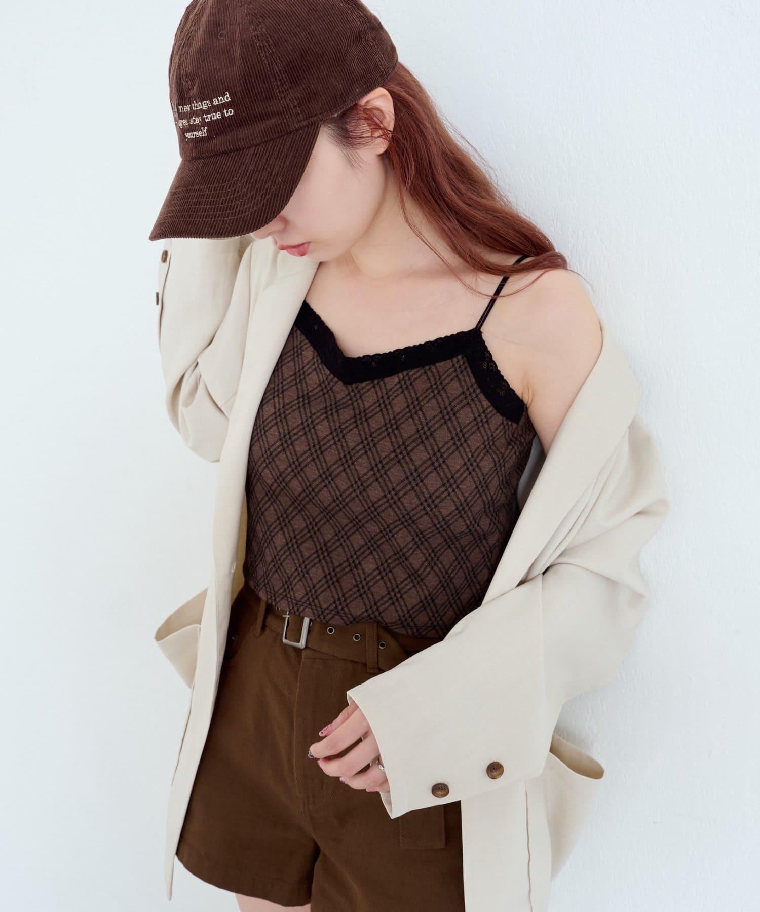 帶罩杯的格紋吊帶衫,可放心單穿。