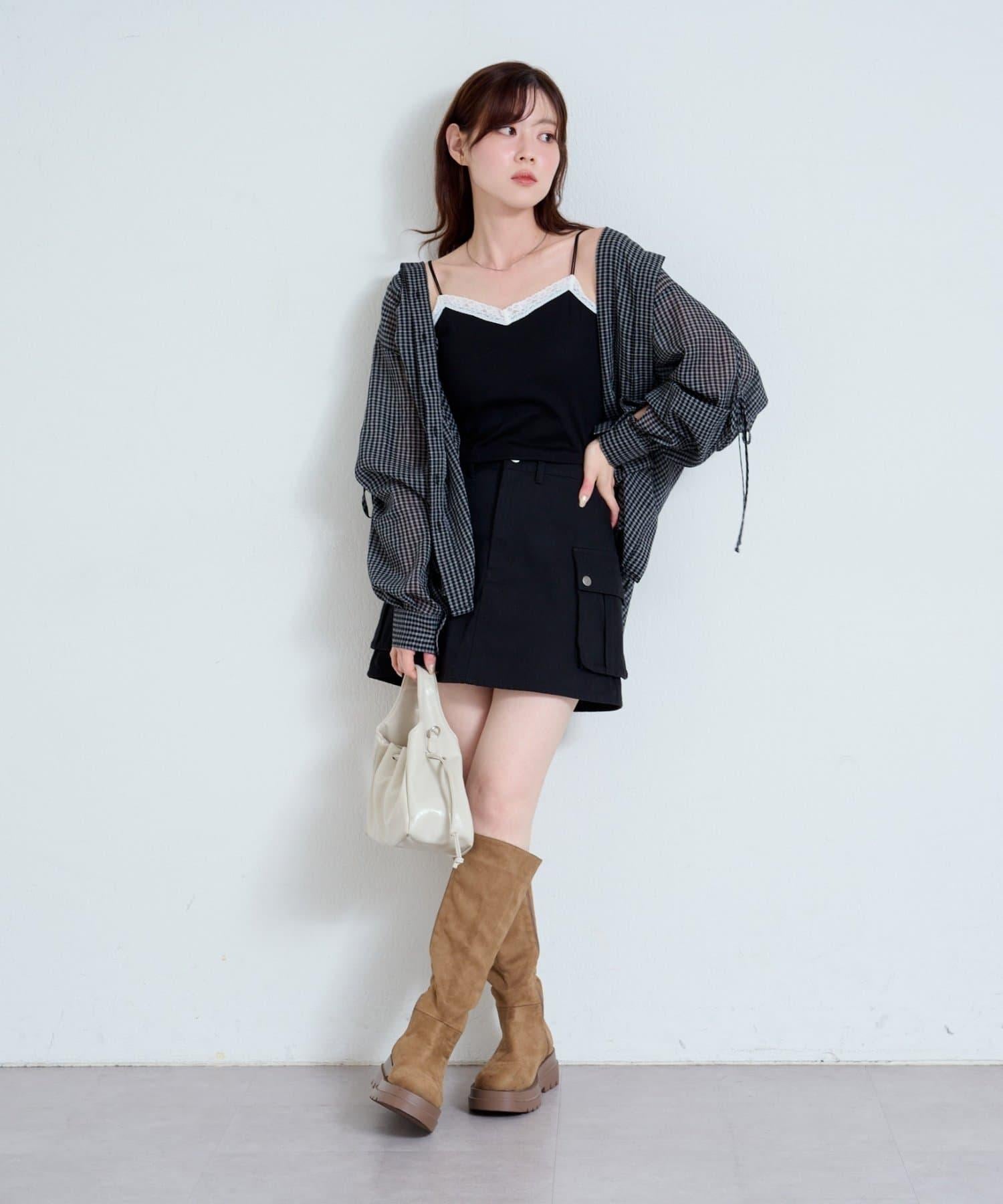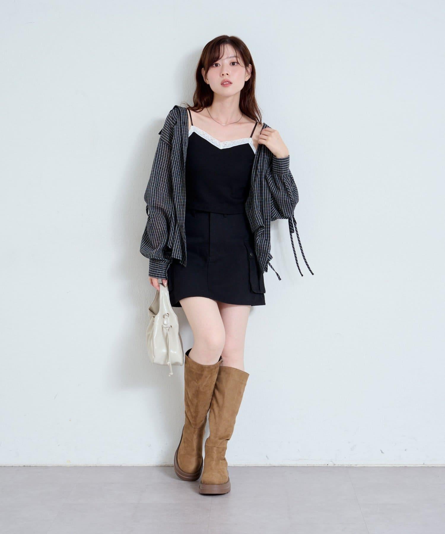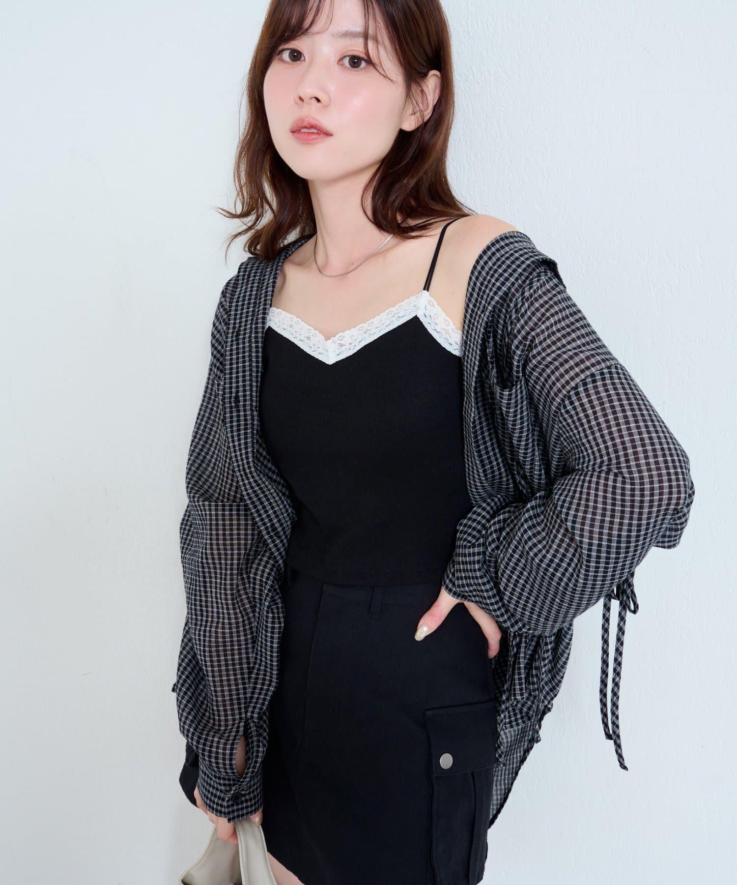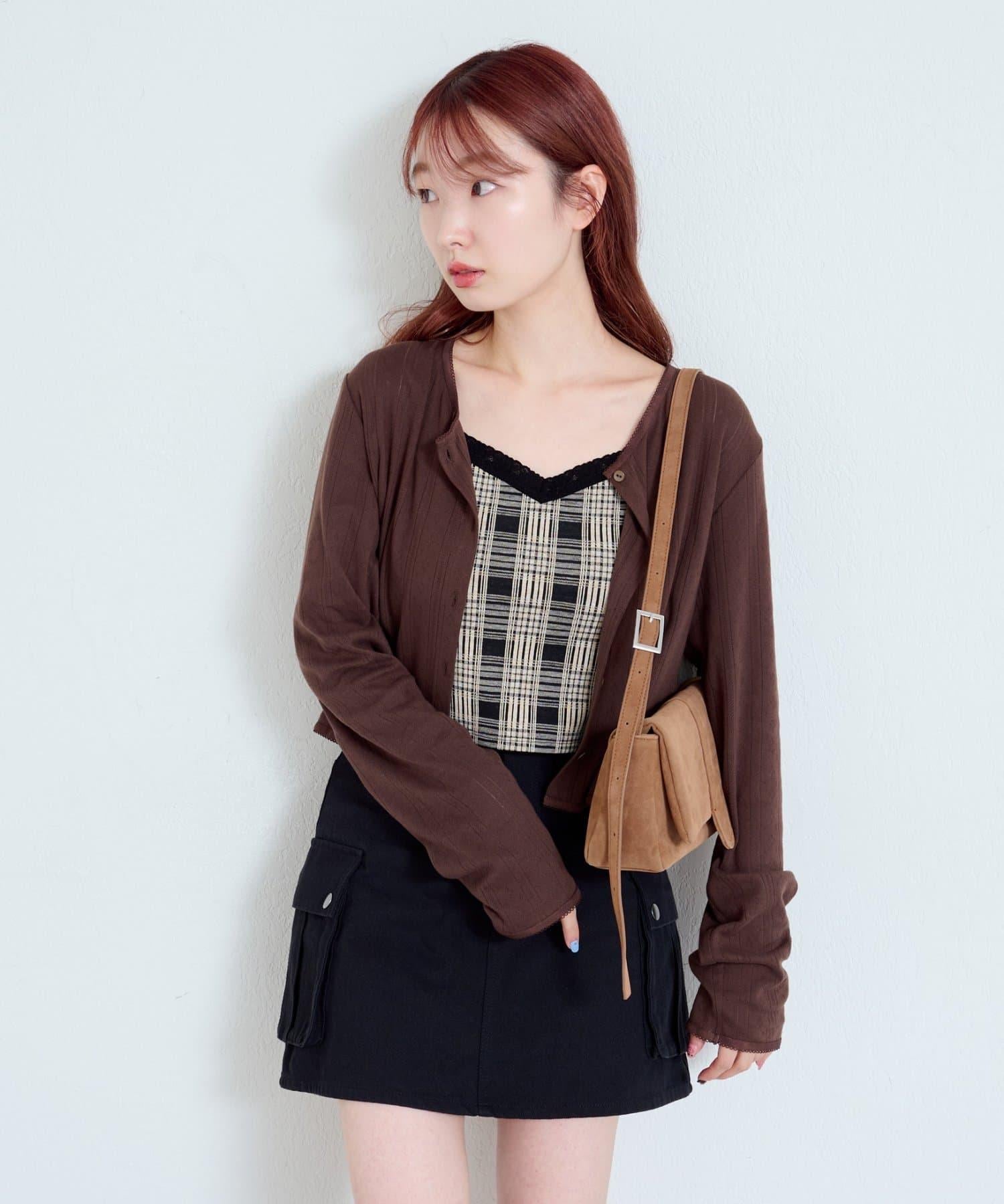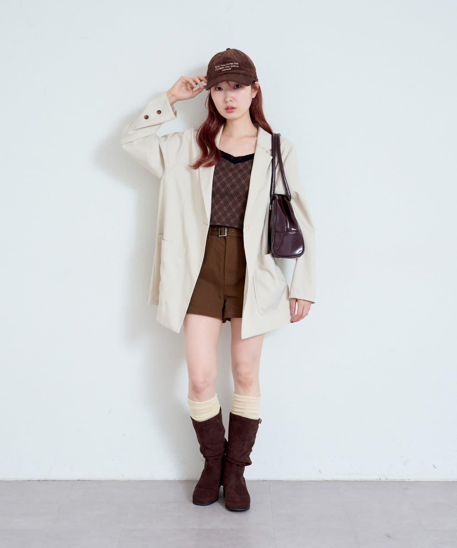 帶罩杯的格紋吊帶衫,可放心單穿。