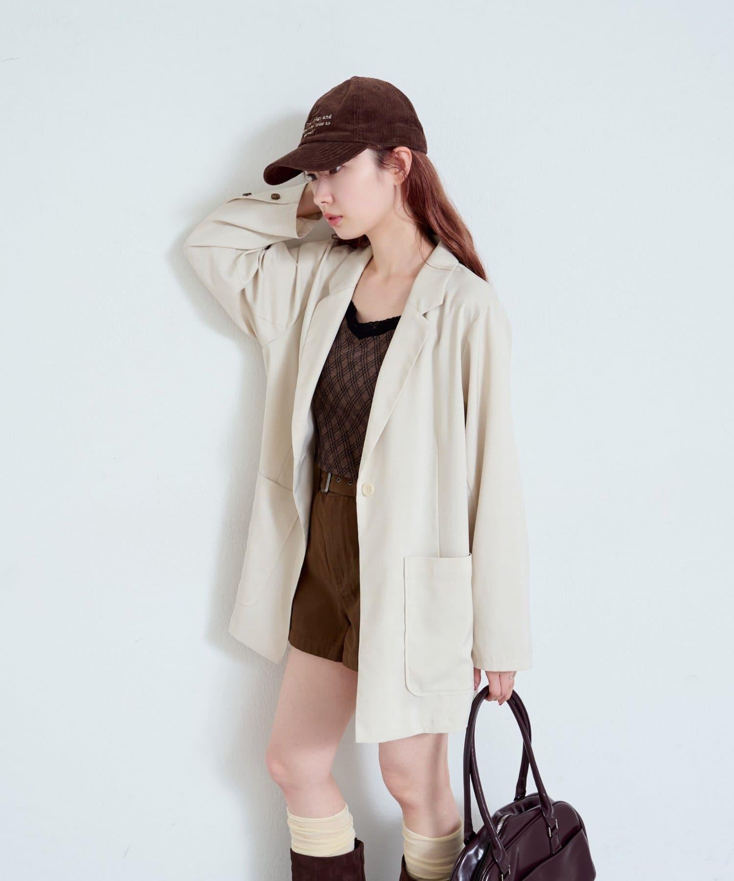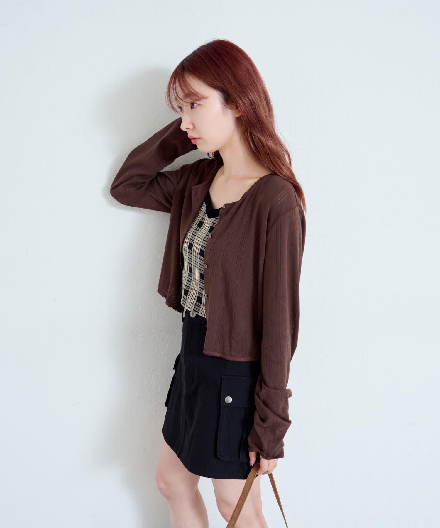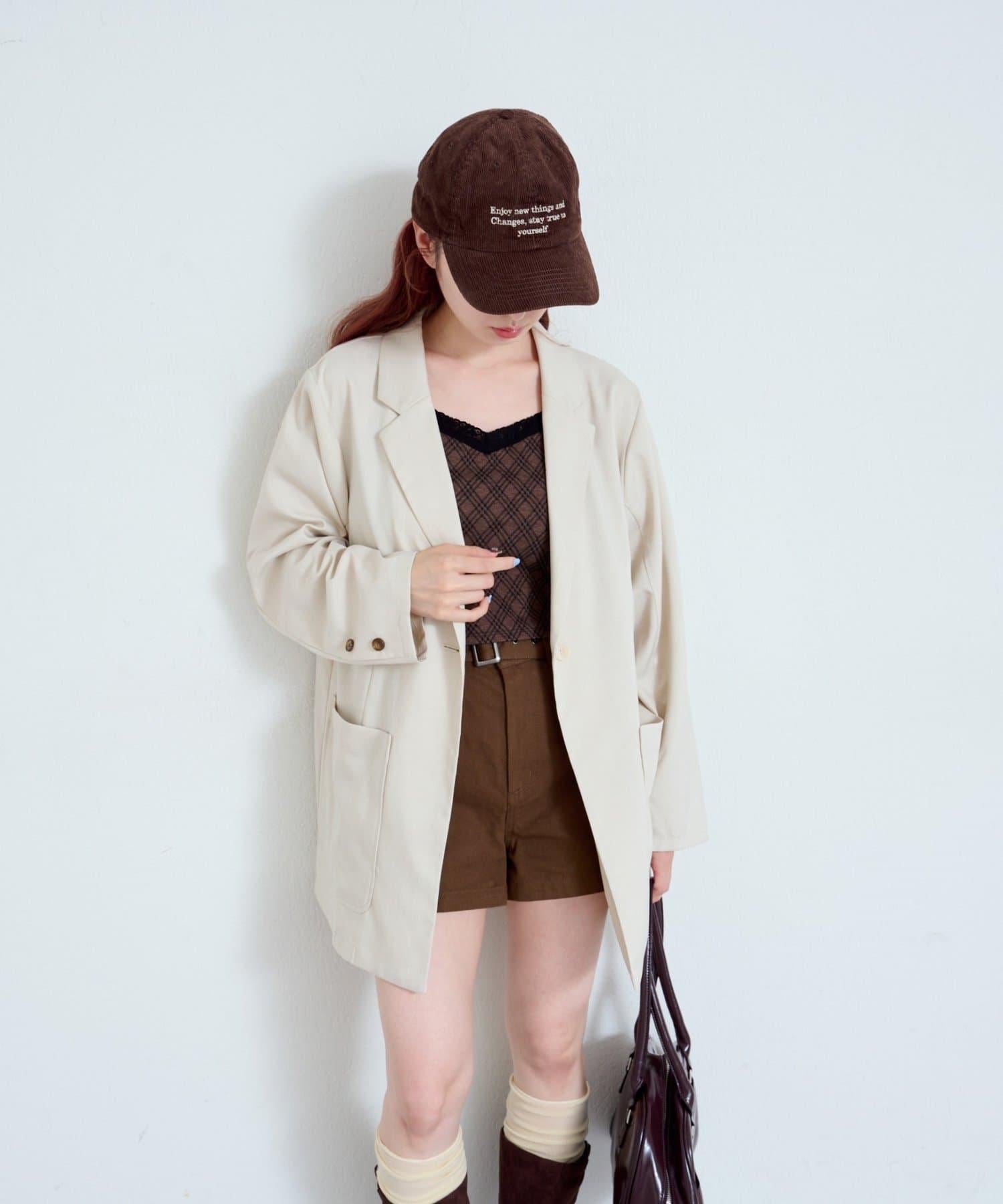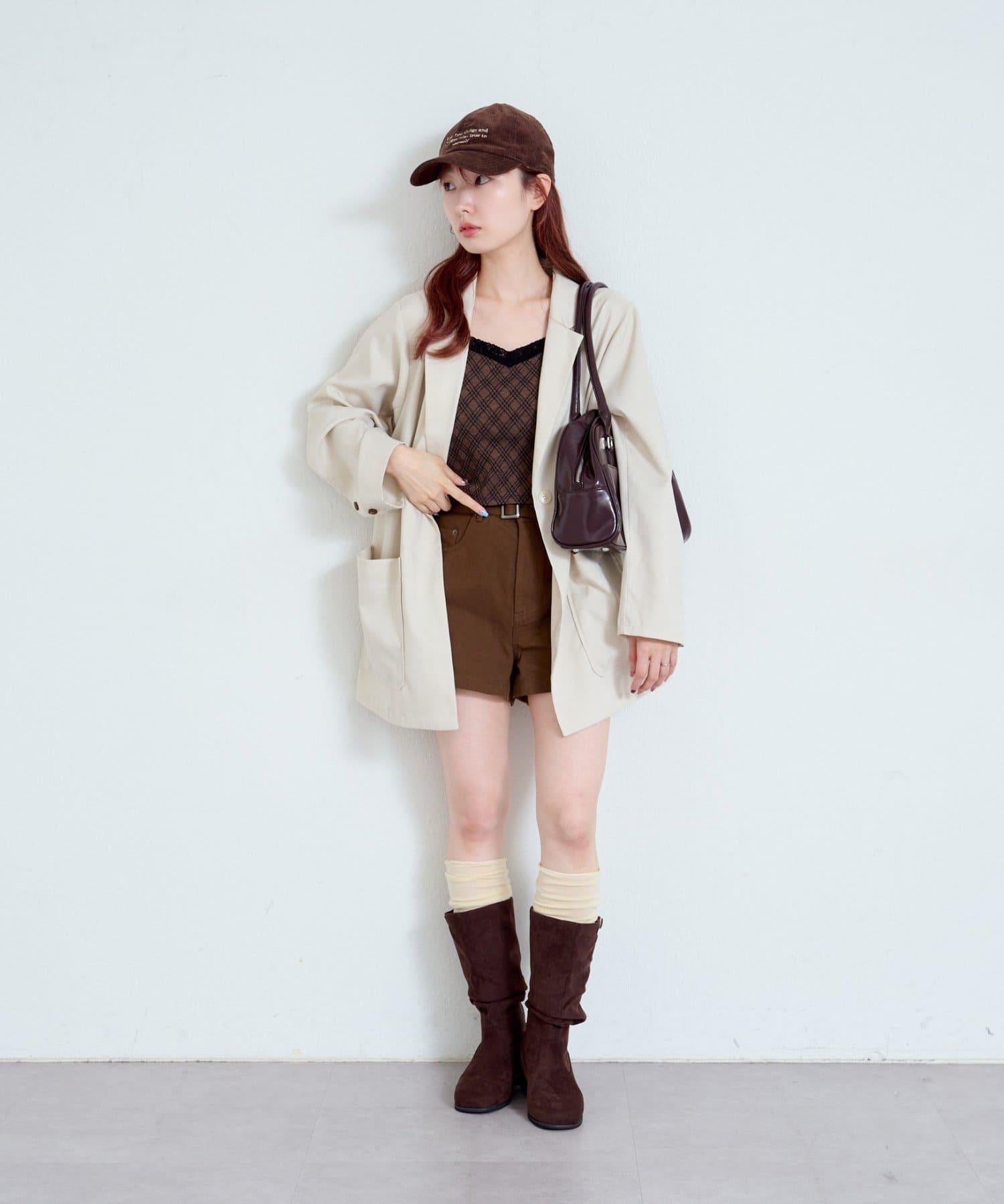 帶罩杯的格紋吊帶衫,可放心單穿。