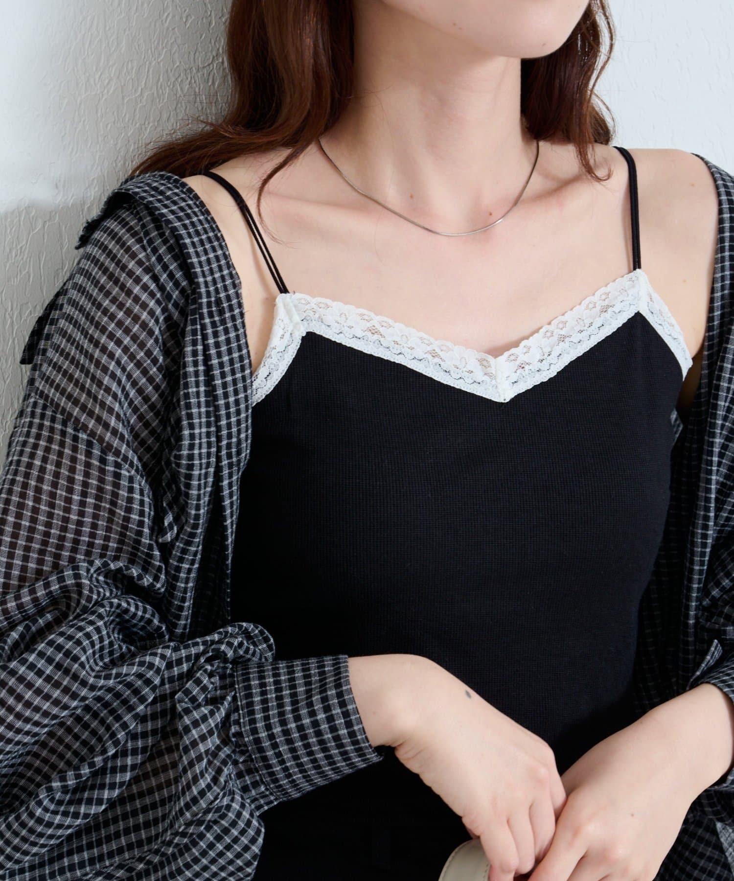 【部分門店限定/純色&格紋/四色可選/可拆卸胸墊】帶胸墊蕾絲吊帶