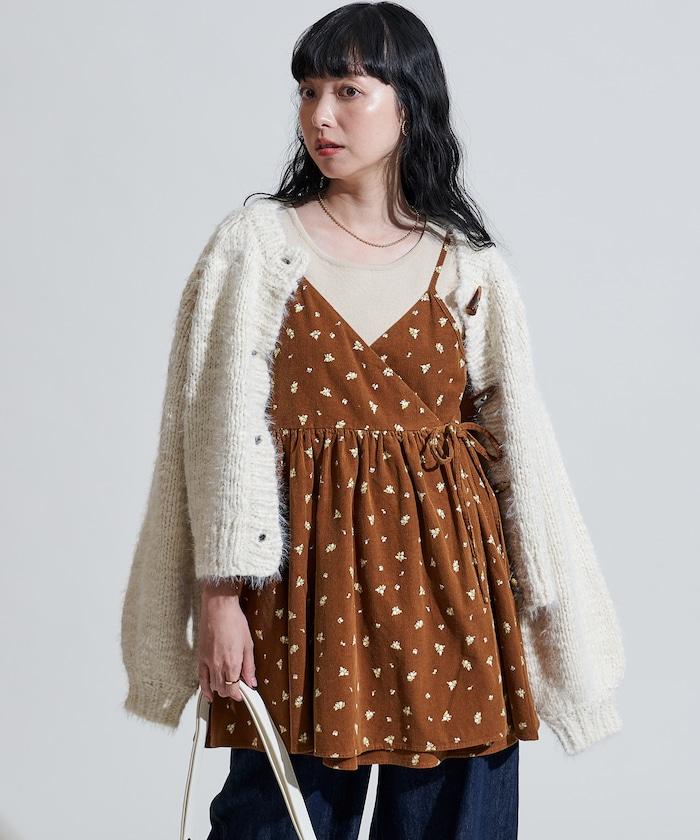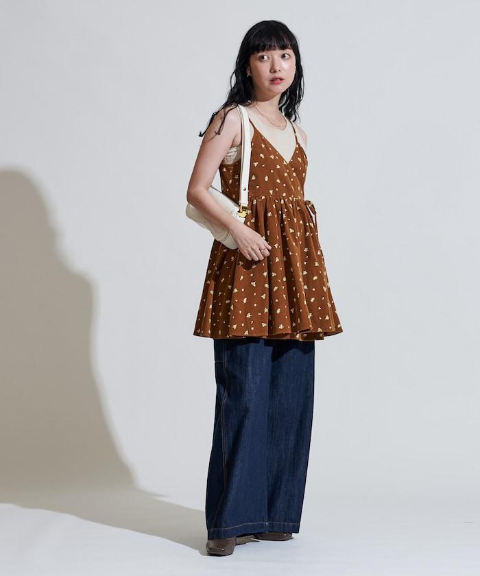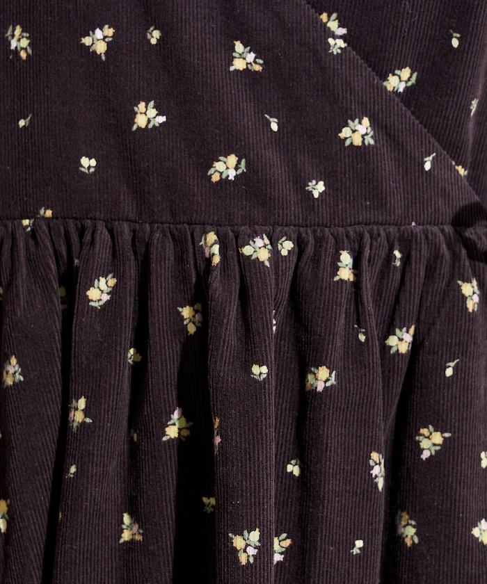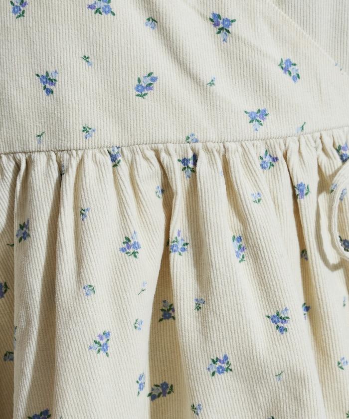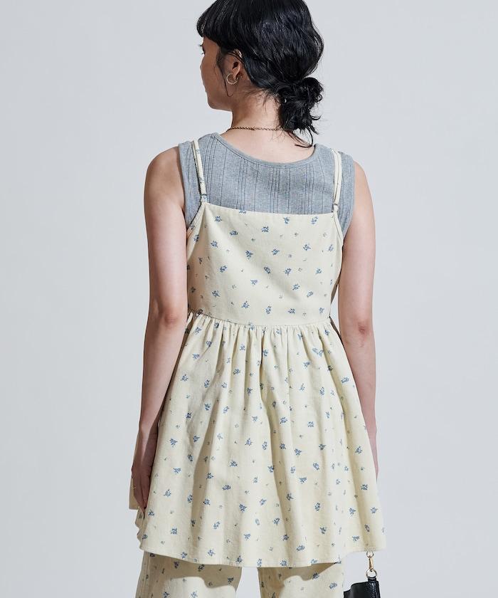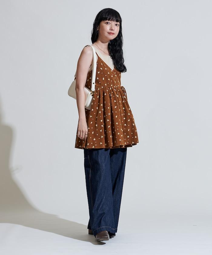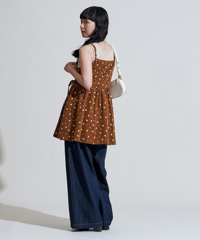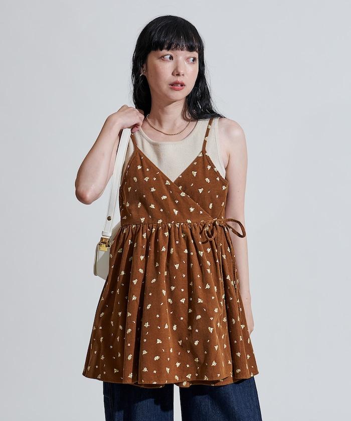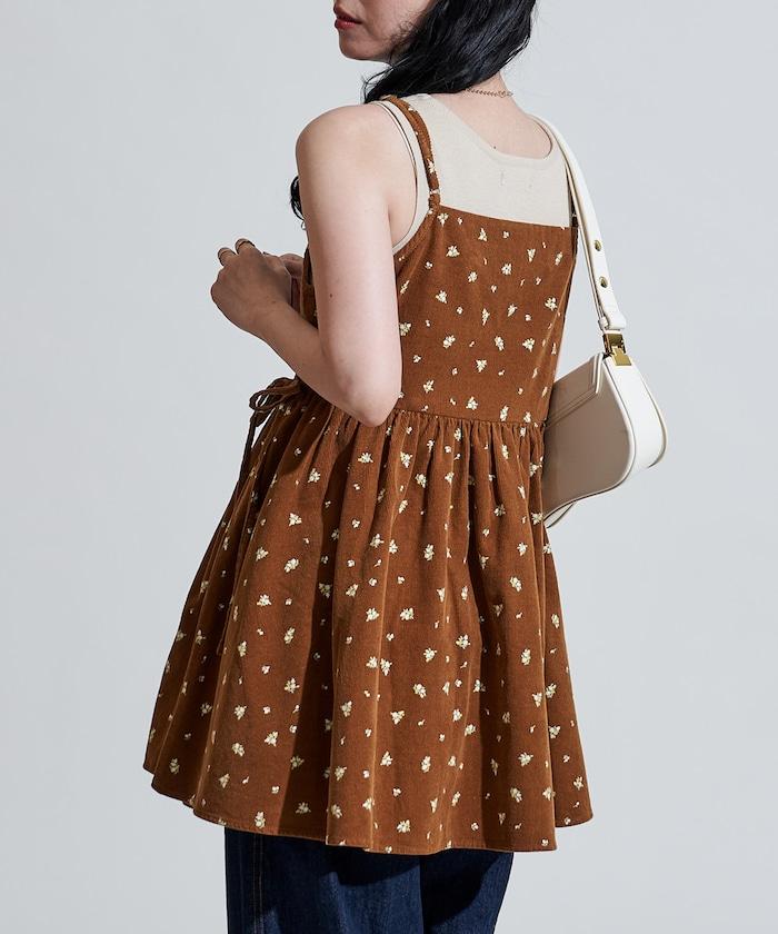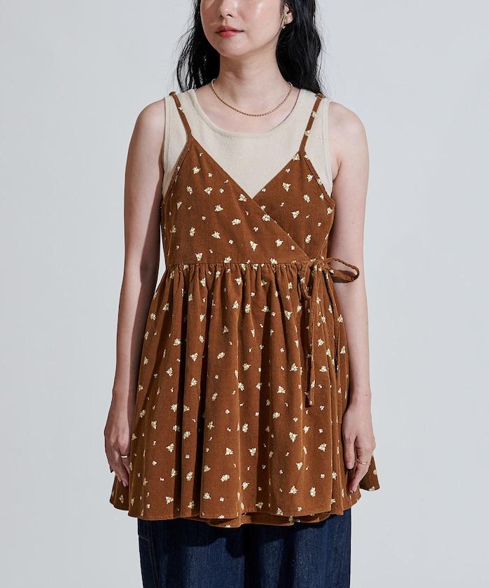 吊帶背心外衣,在休閒燈芯絨中加入甜美的小碎花圖案。