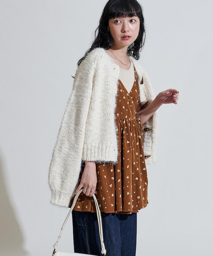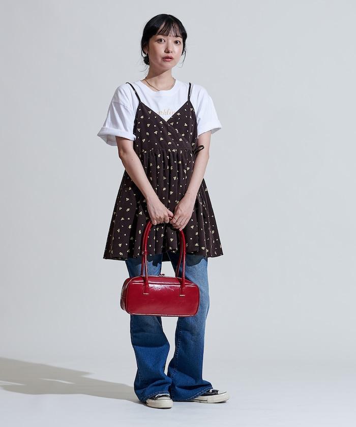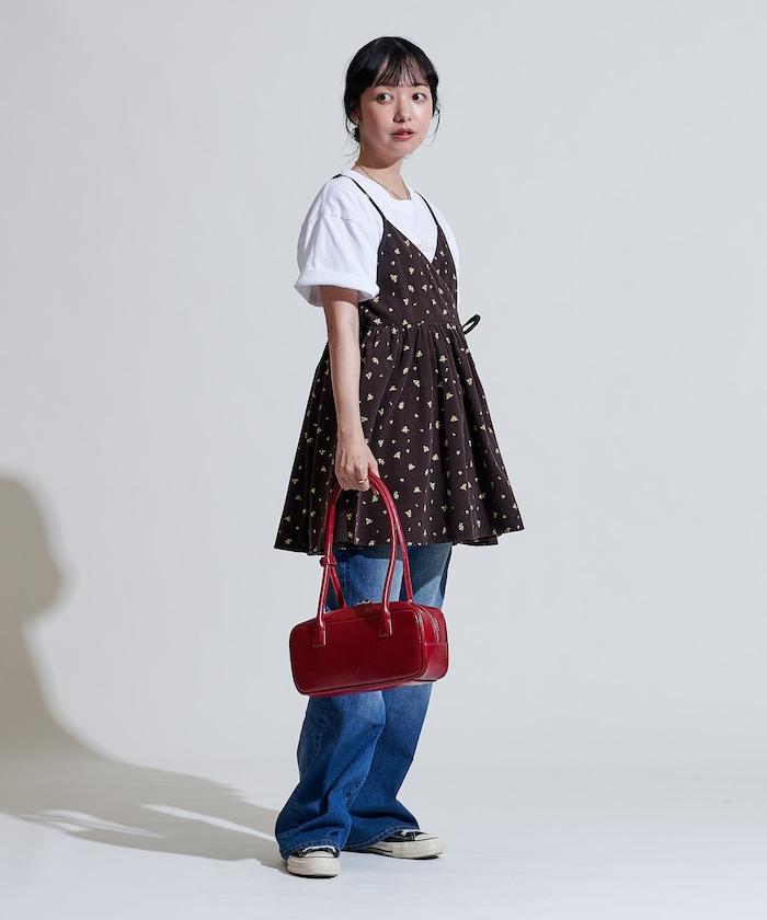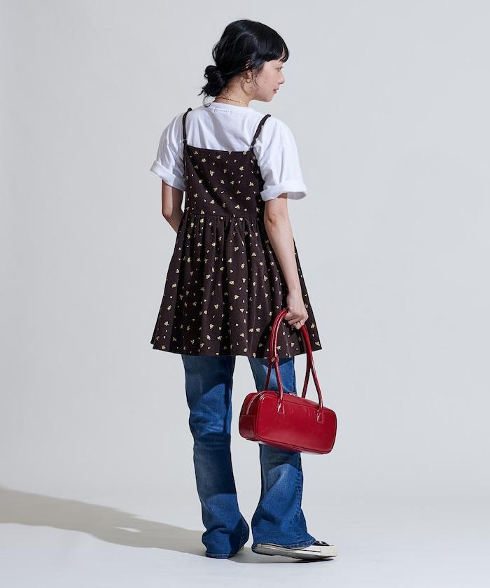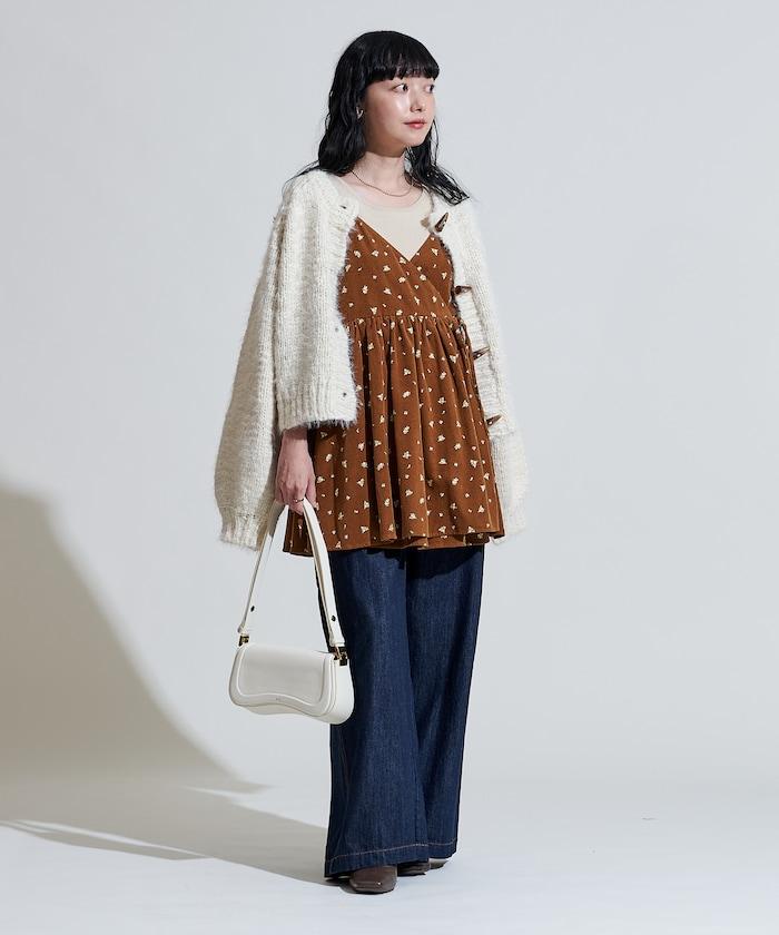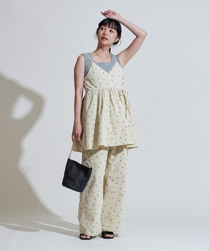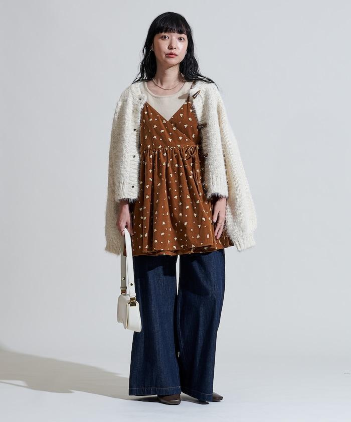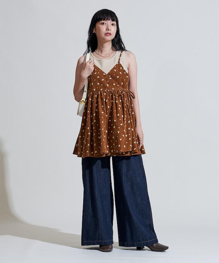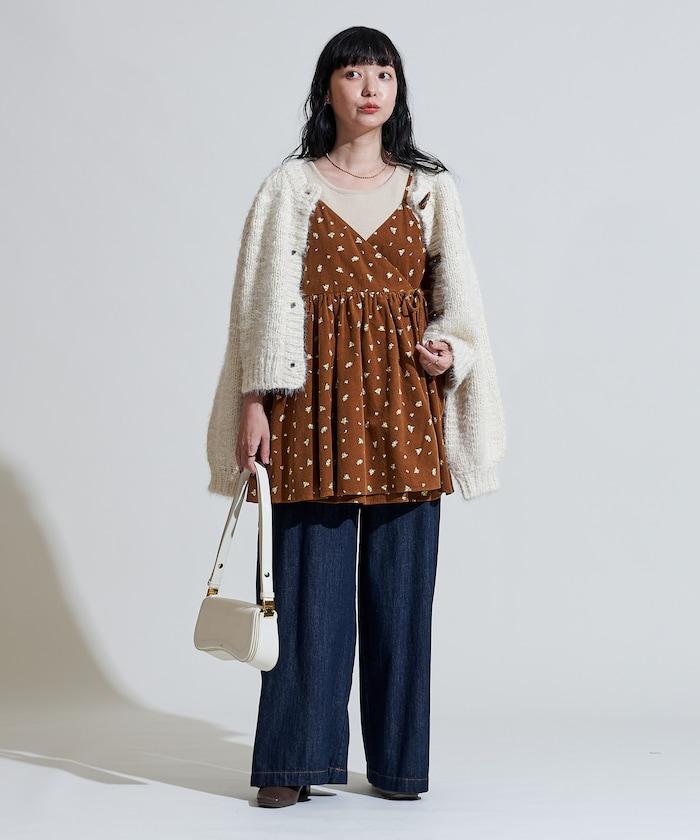 吊帶背心外衣,在休閒燈芯絨中加入甜美的小碎花圖案。
