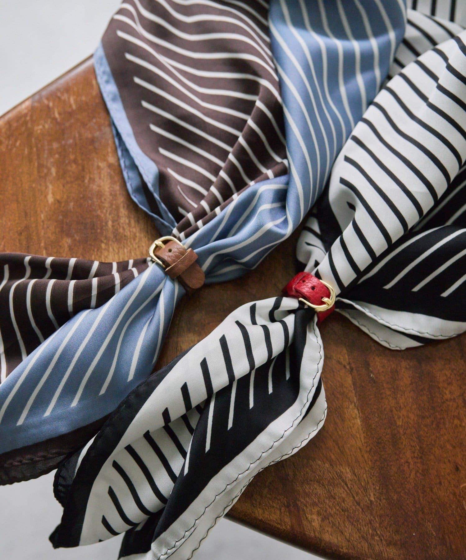 圍巾上附帶的皮環採用雙向設計,既可作為戒指使用,又可擴展圍巾的排列範圍。