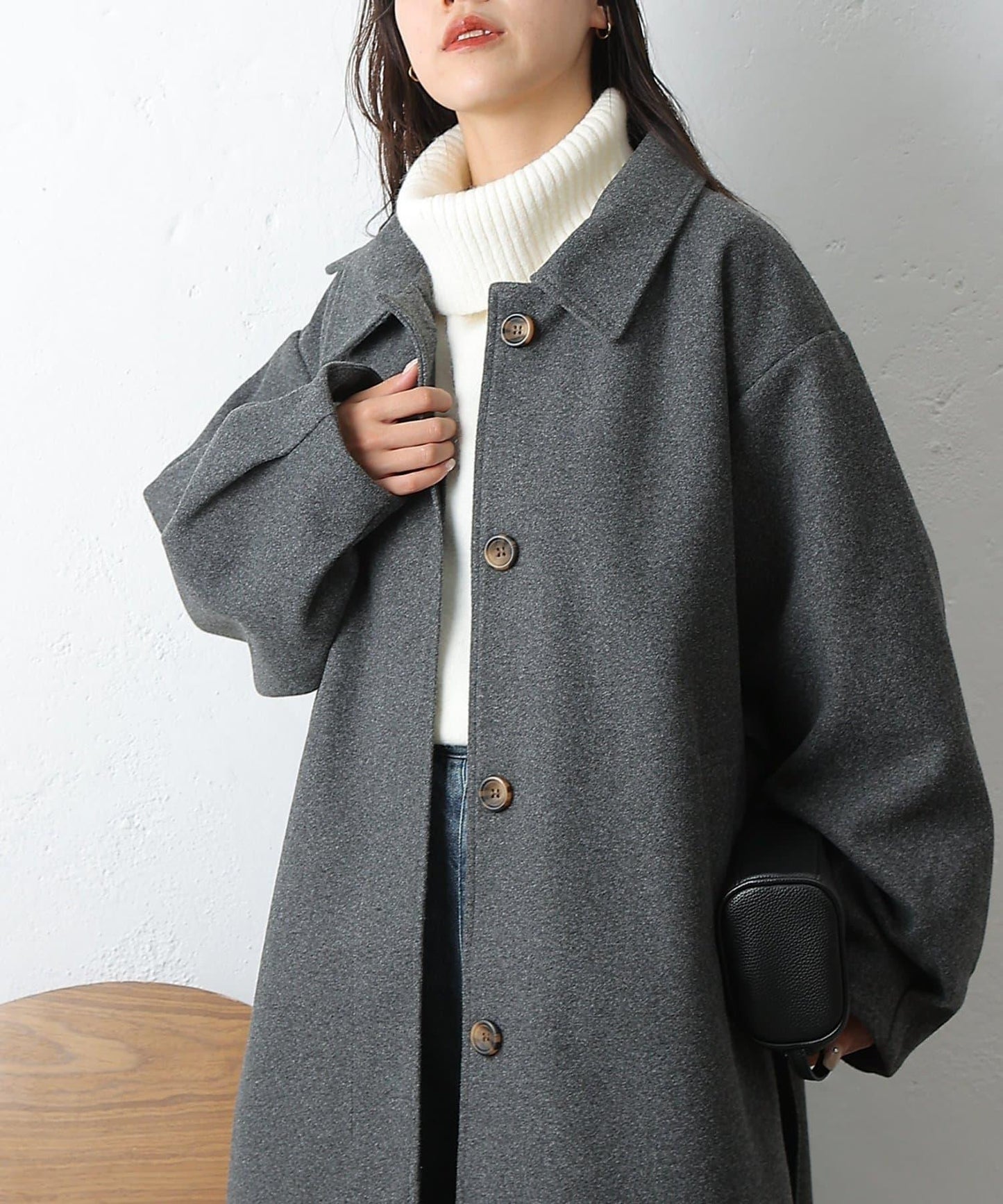 柔軟的面料和精緻的長度,與長褲和裙子都很搭配,是一款適合成人的不鏽鋼領大衣,從上學、工作到假期外出,都能廣泛使用。