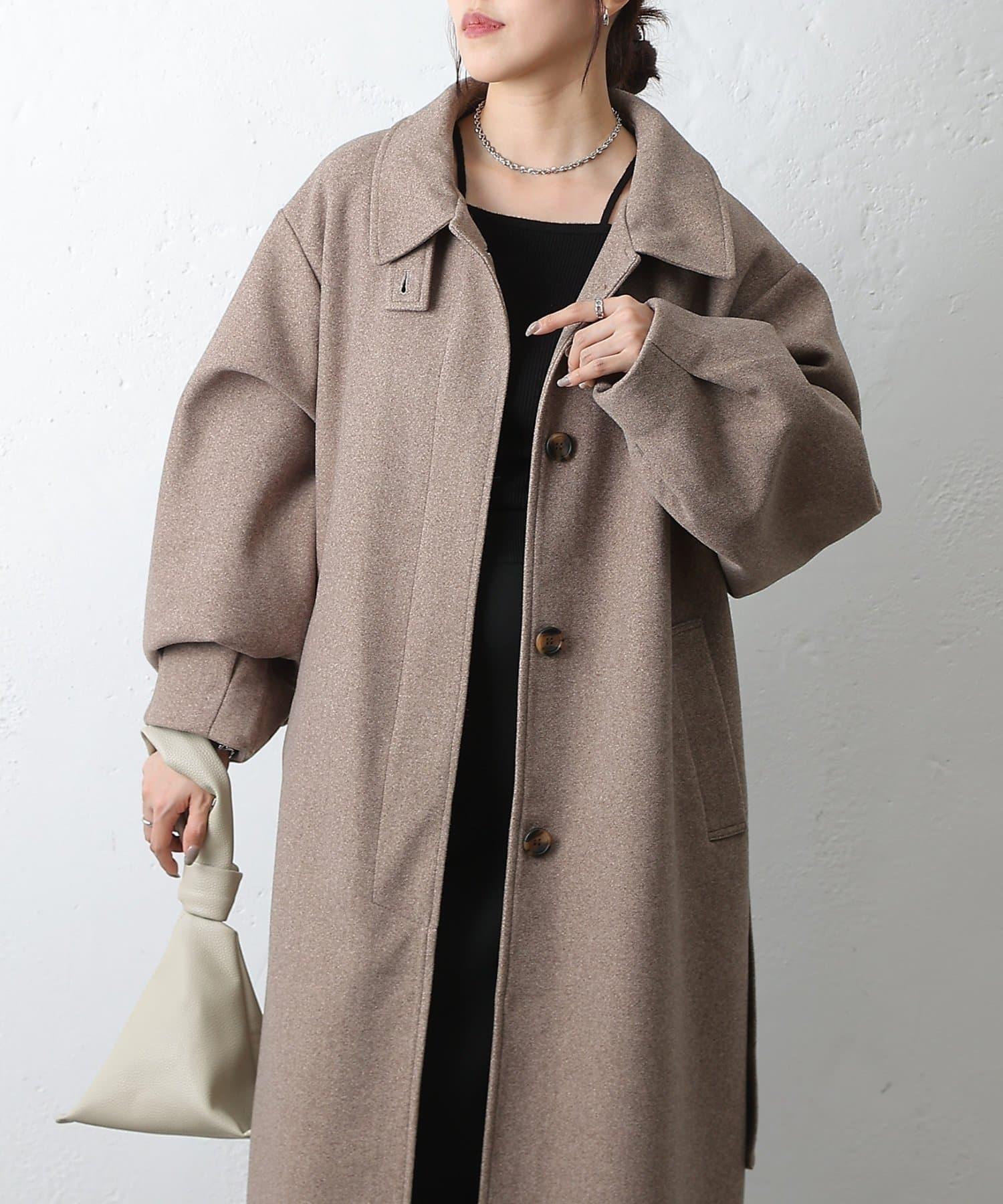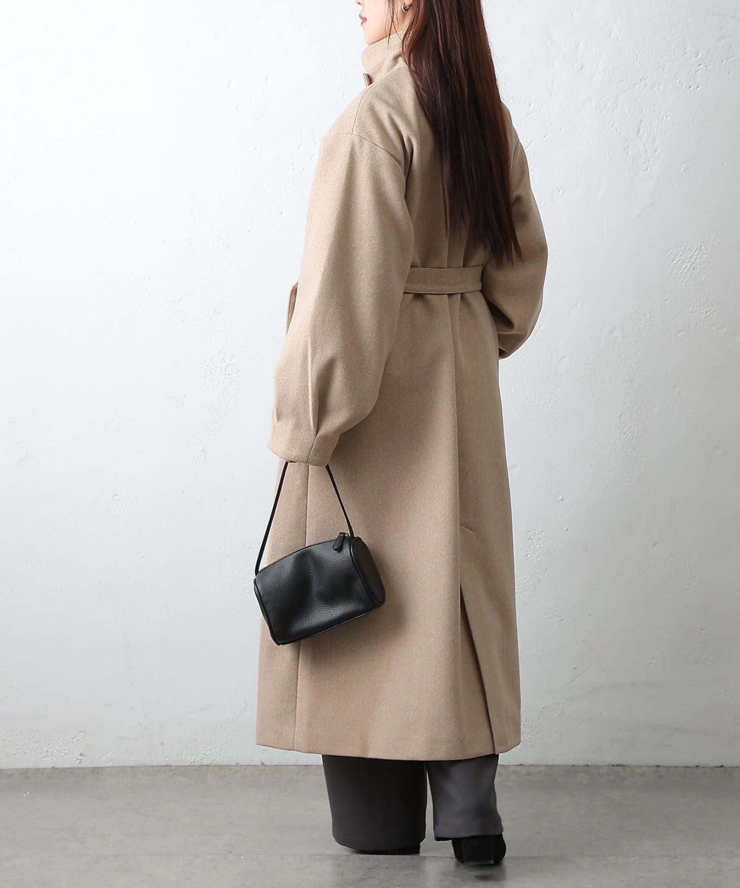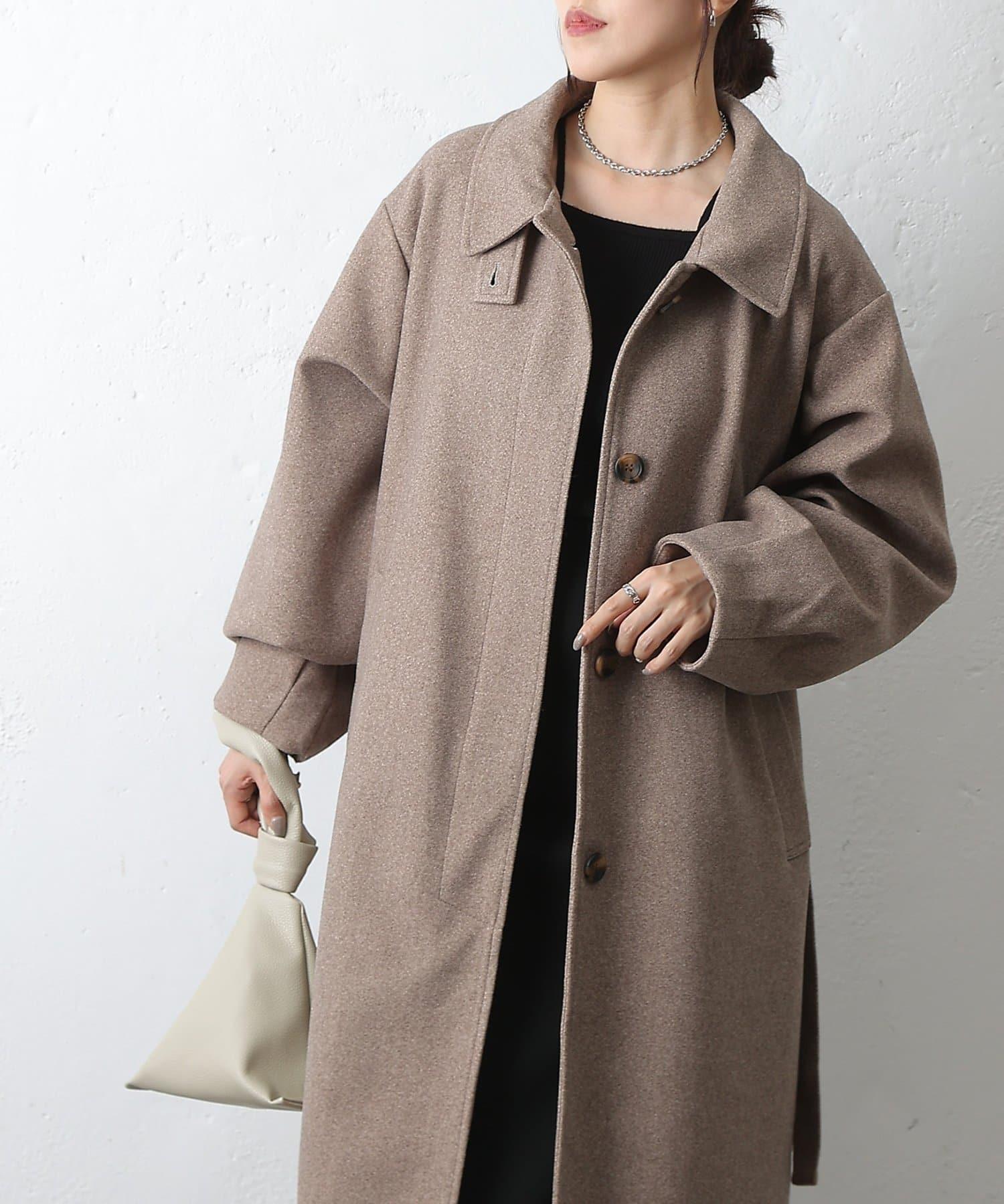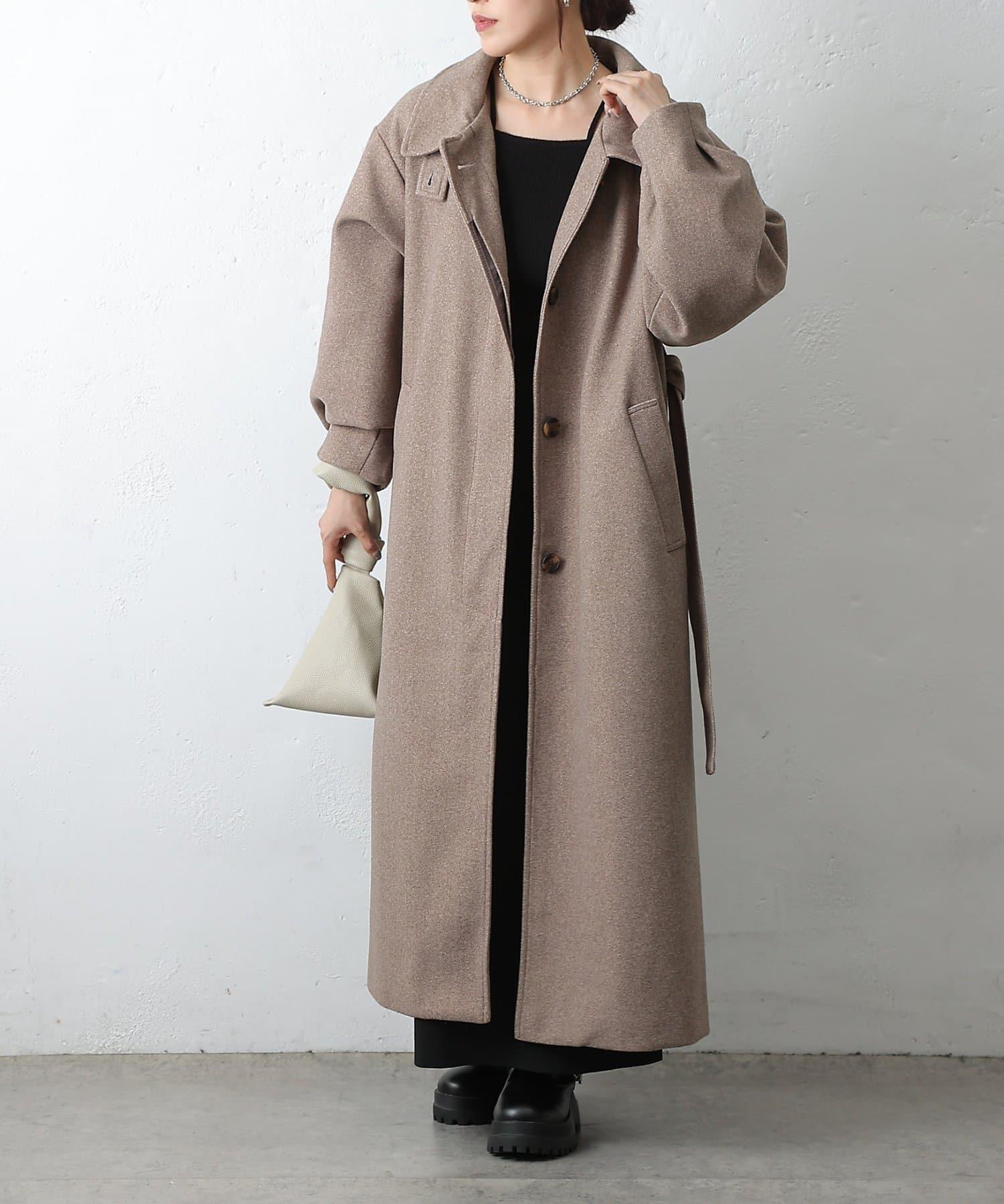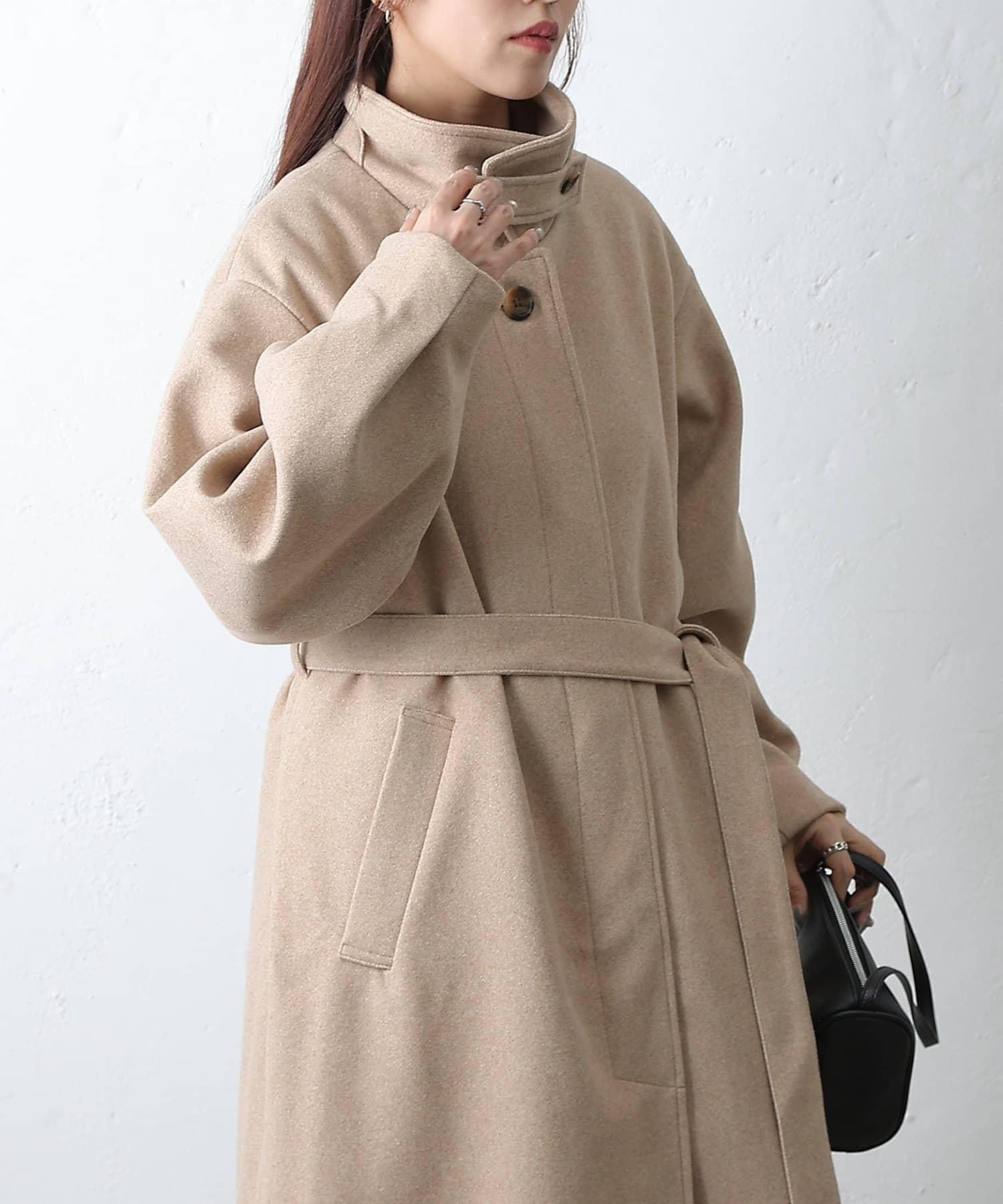 這款不鏽鋼領大衣採用束帶袖設計,袖子豐滿。