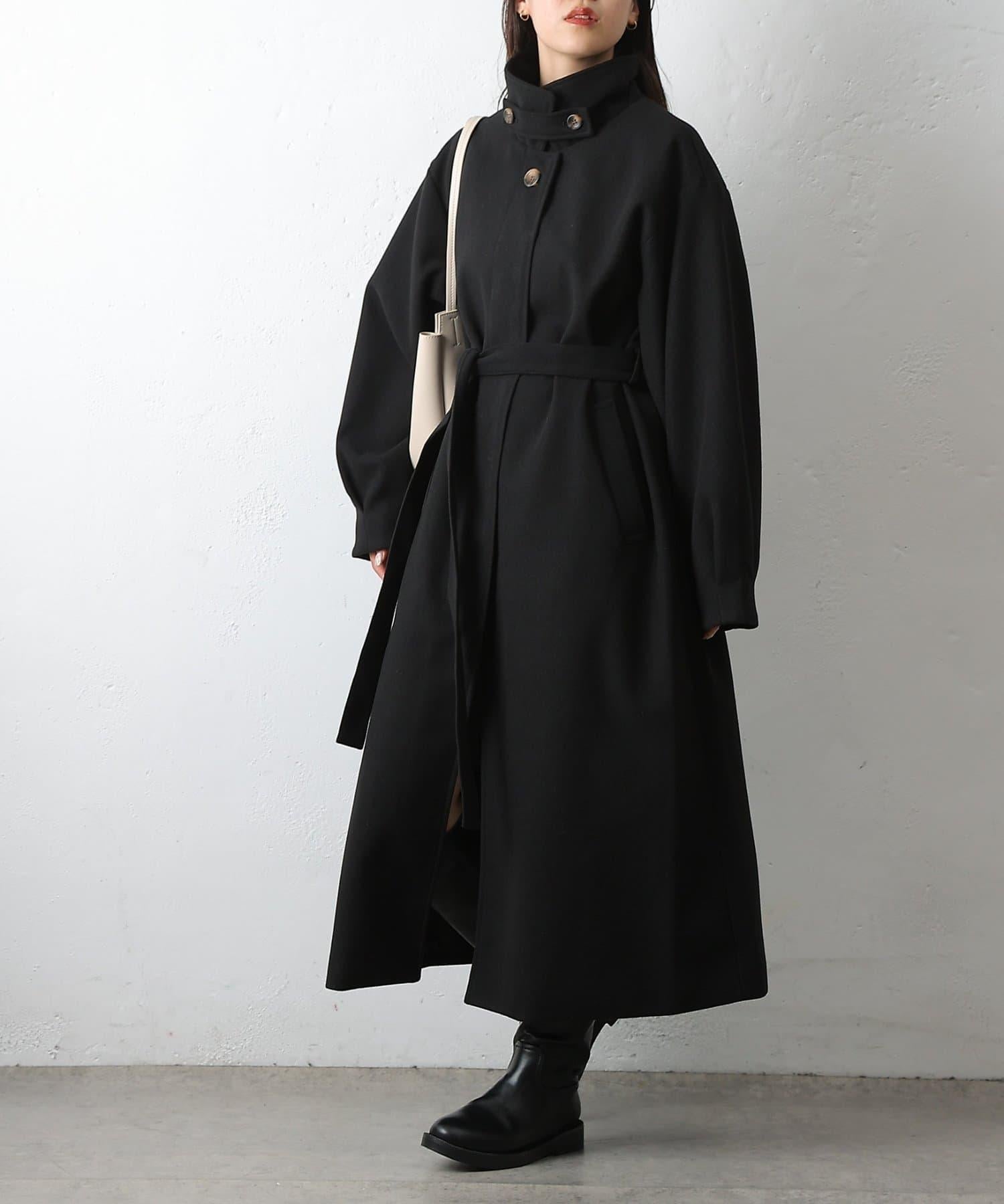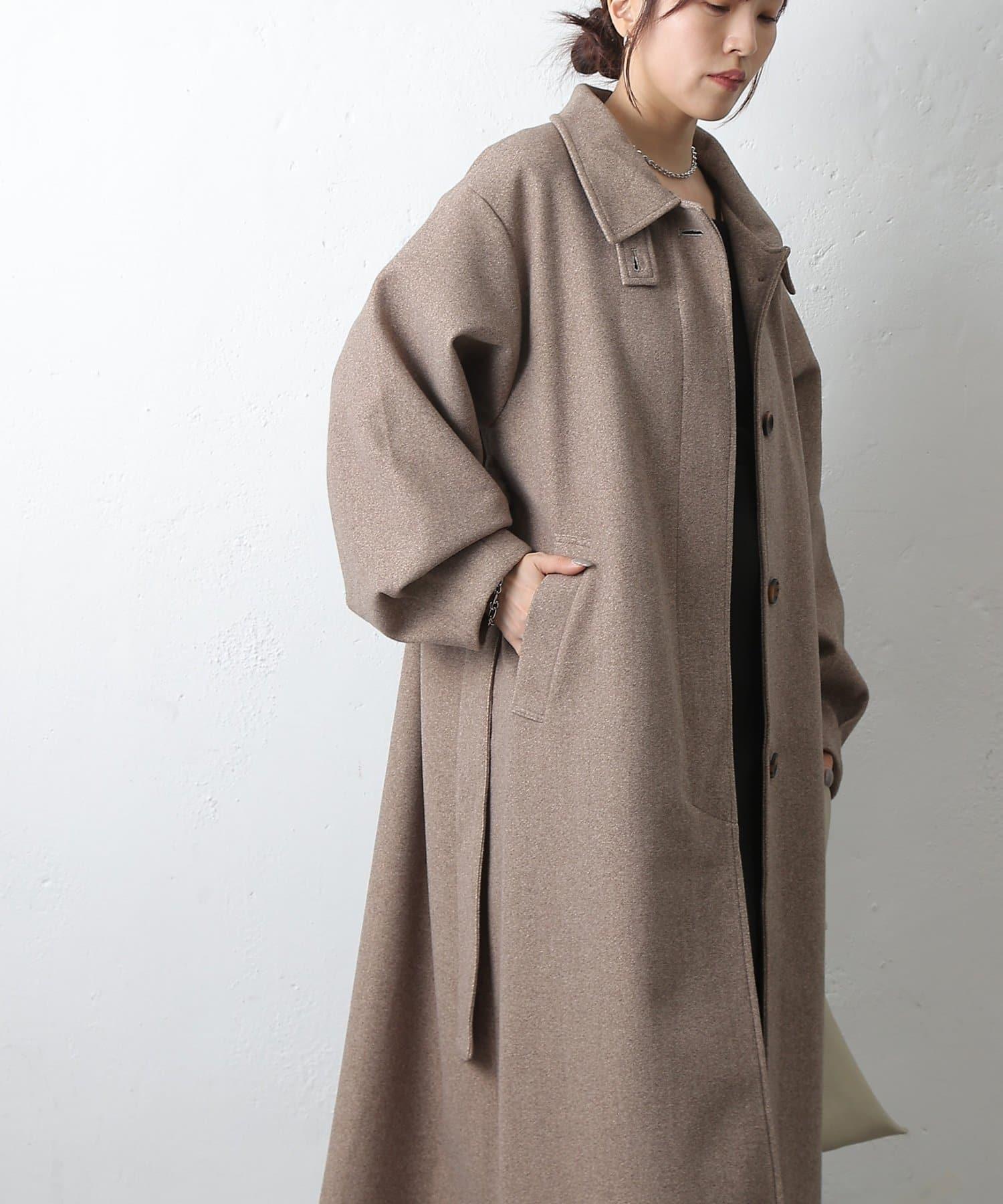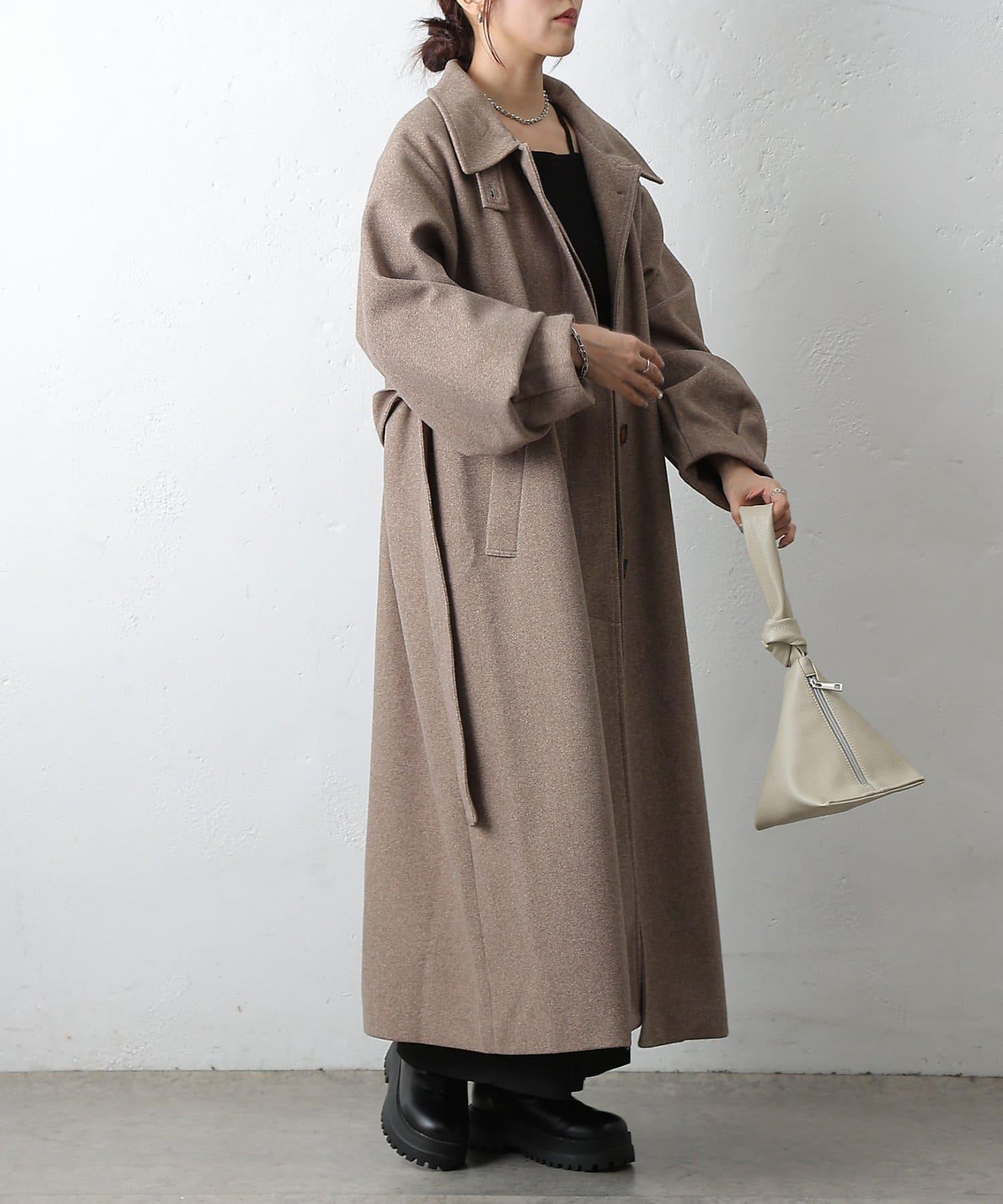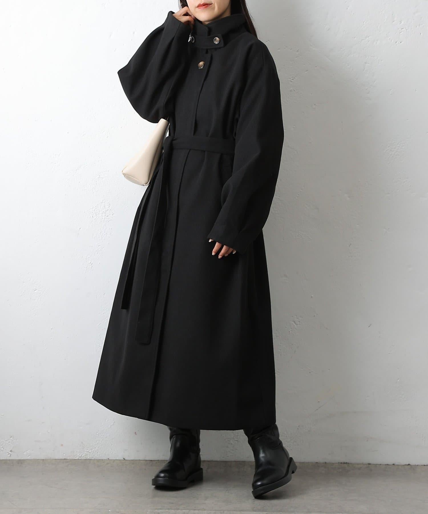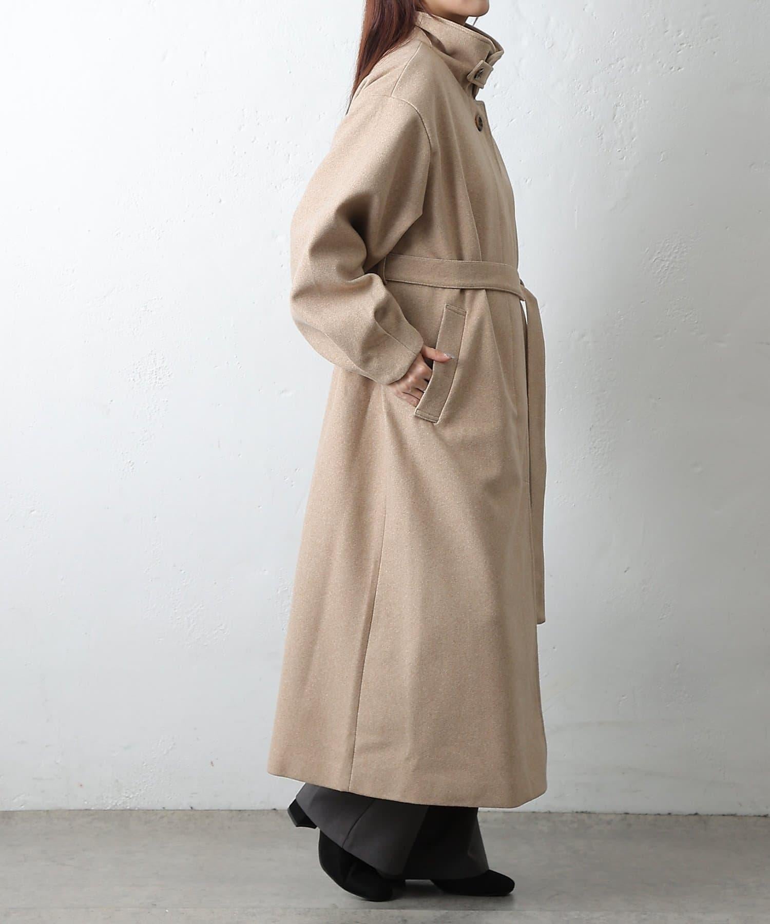 這款不鏽鋼領大衣採用束帶袖設計,袖子豐滿。