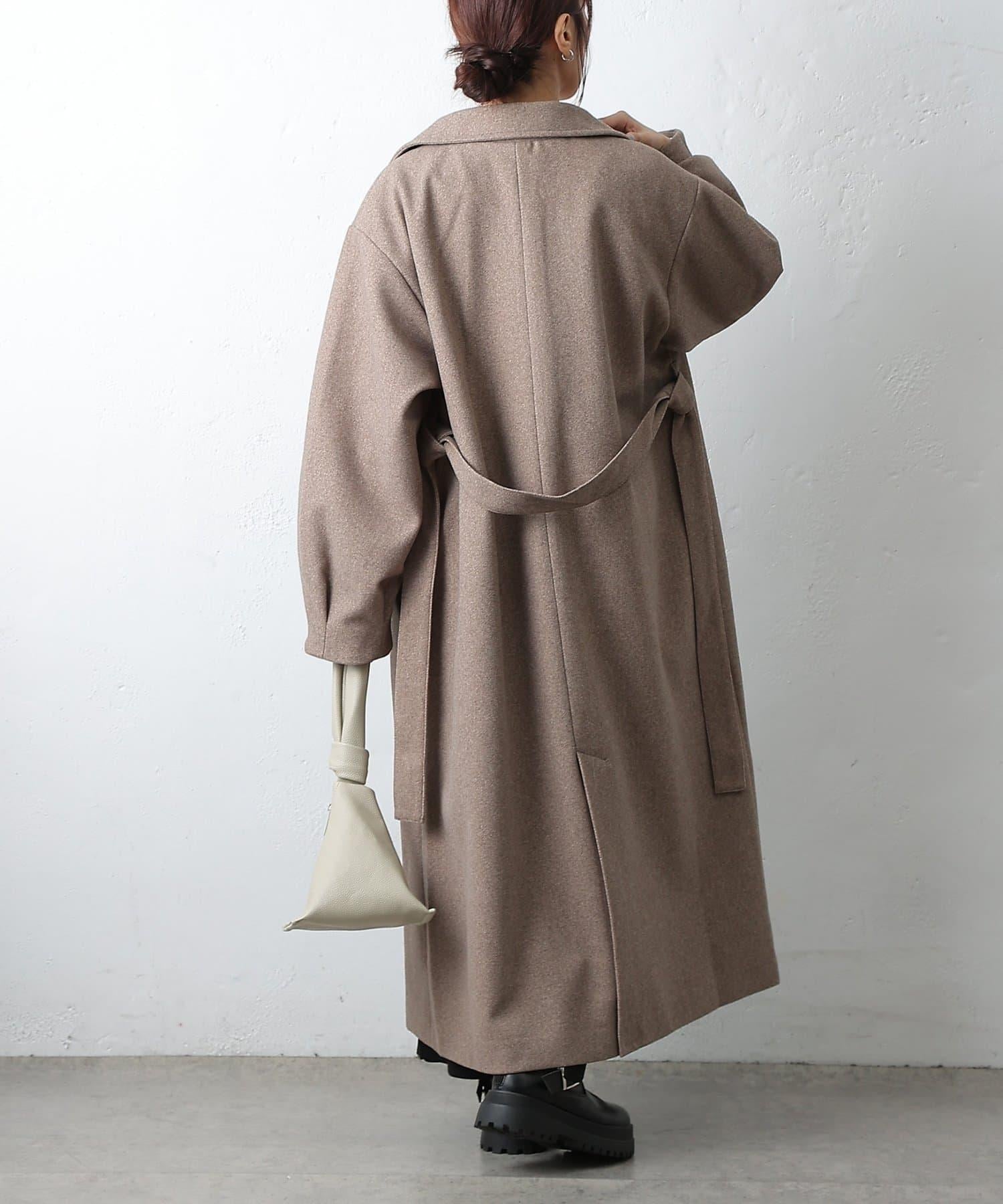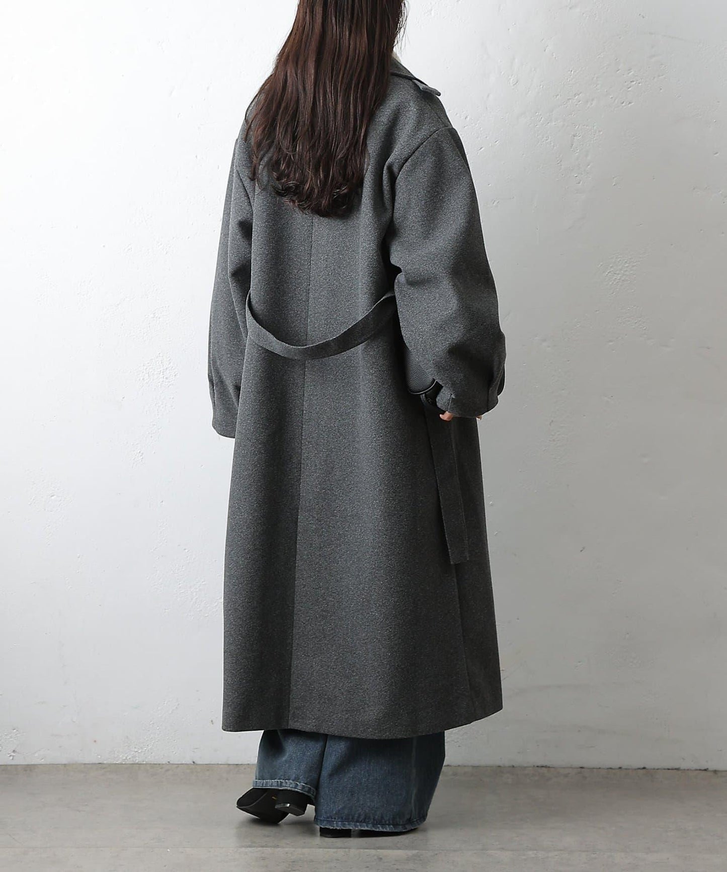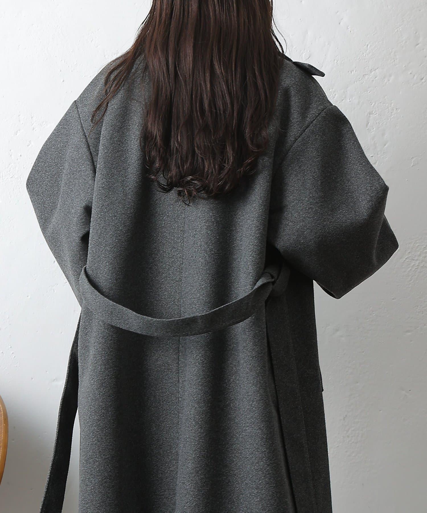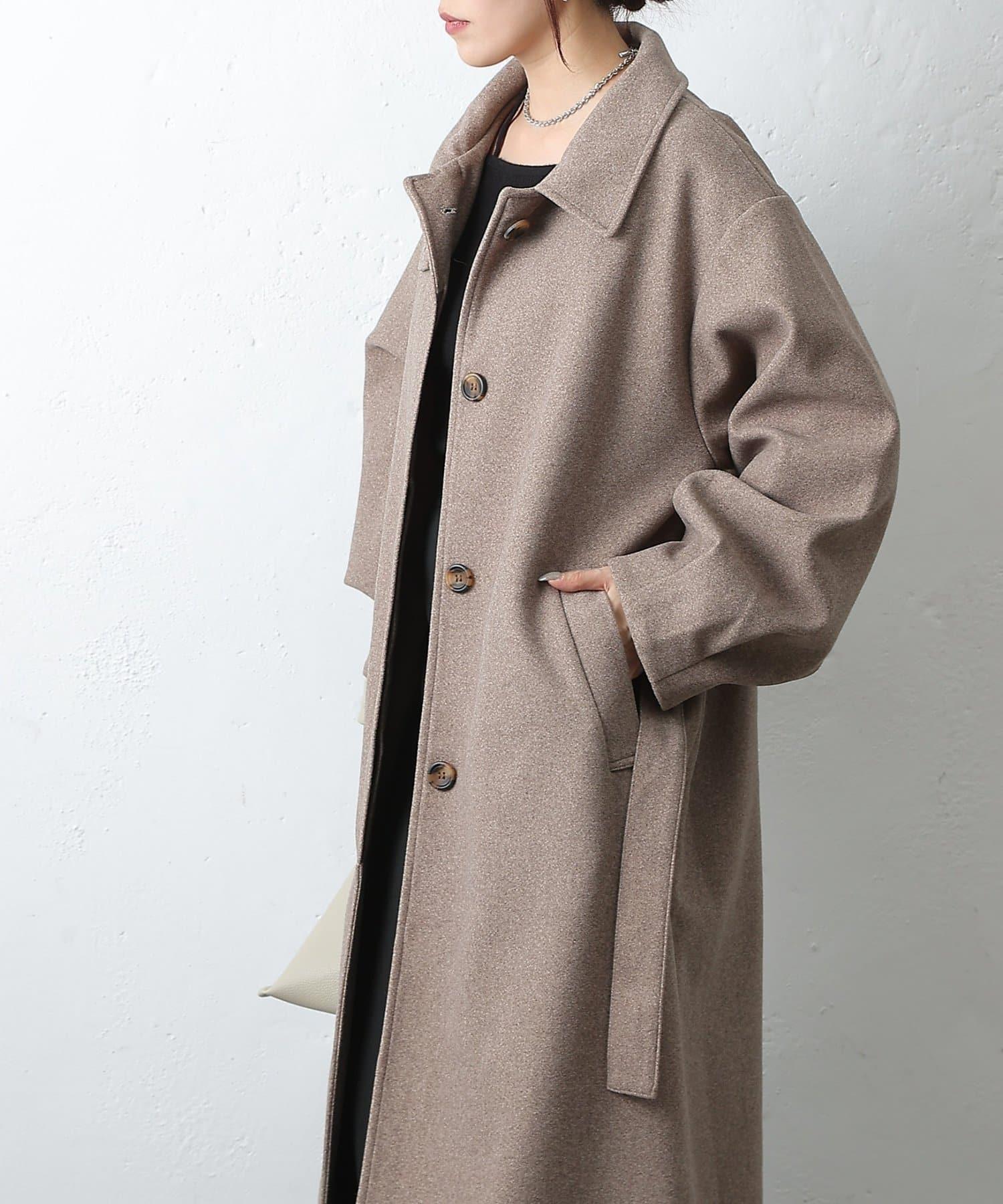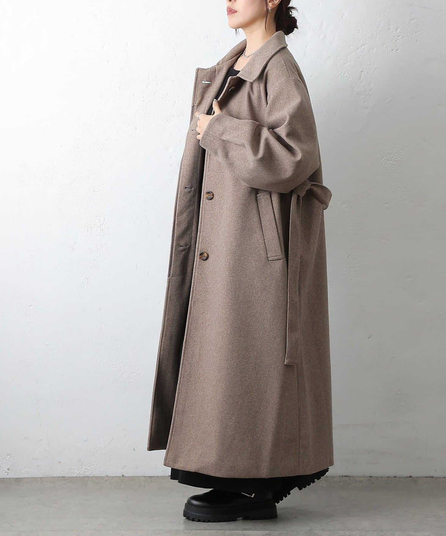 這款不鏽鋼領大衣採用束帶袖設計,袖子豐滿。