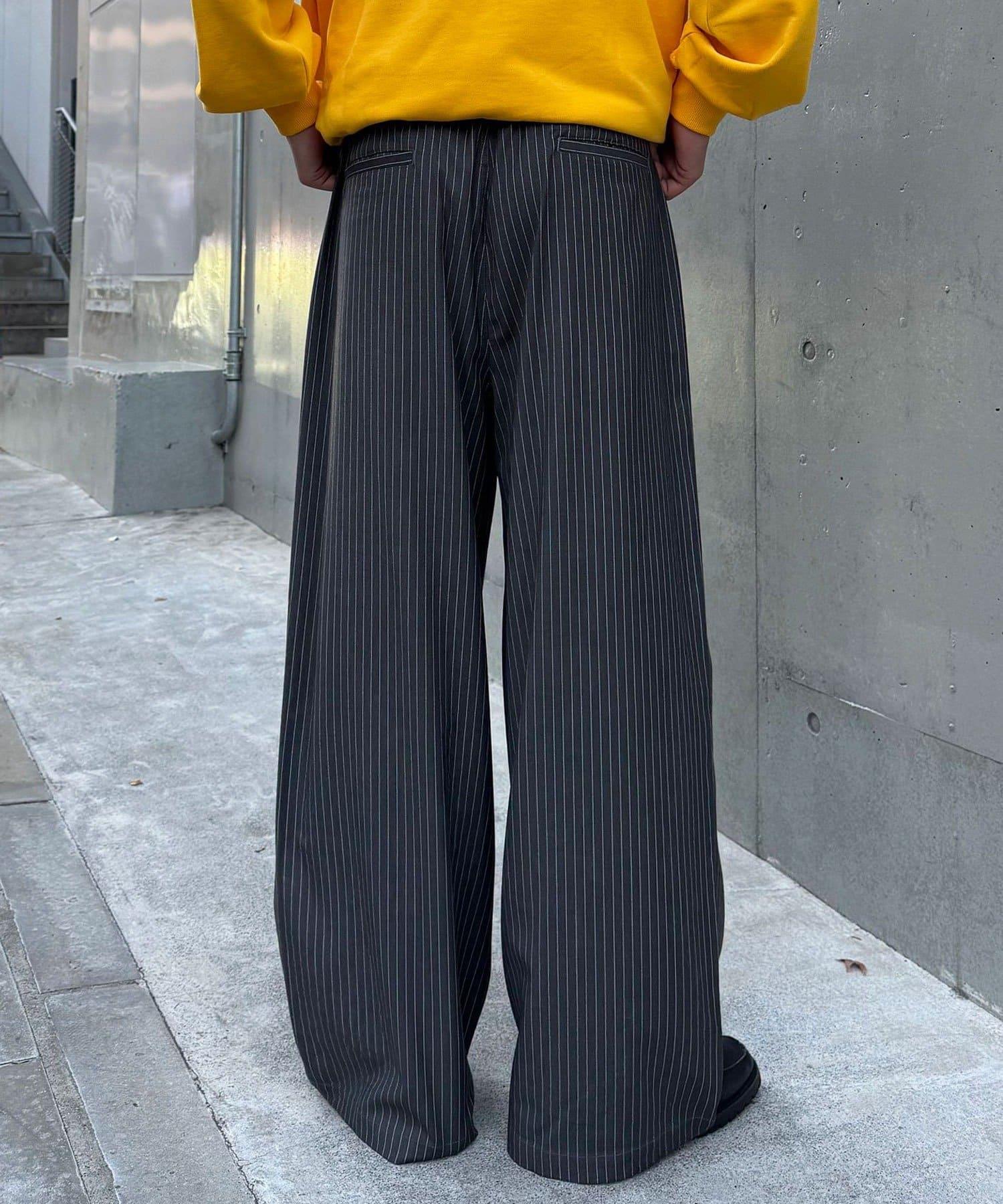 細條紋圖案的寬鬆休閒褲,帶有漂亮的垂直線條。