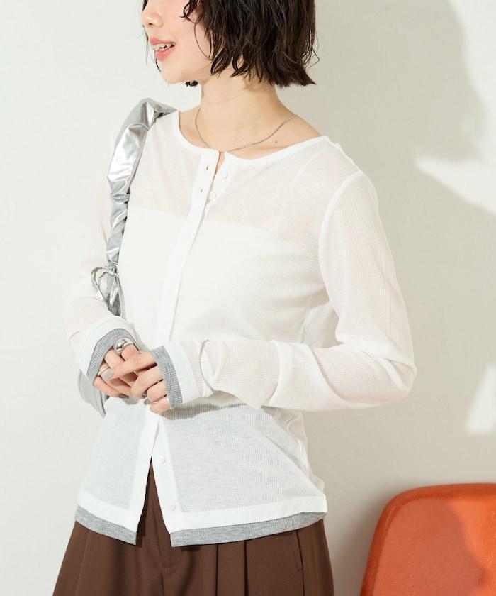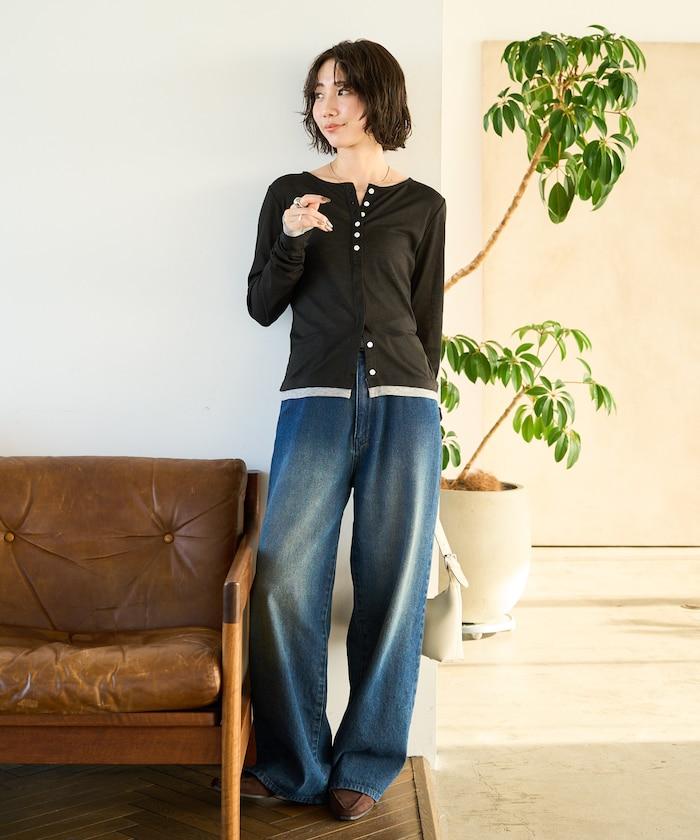 打開下襬處的紐扣,即可作為寬鬆感的開衫穿著。