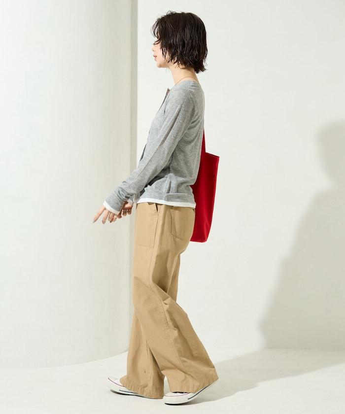 可與休閒褲搭配出整潔的造型,也可將下襬扣上,增添休閒感,非常協調。