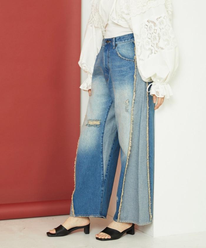 ● 通過不同方式使用牛仔布的正反面,實現了色彩搭配的切換設計。