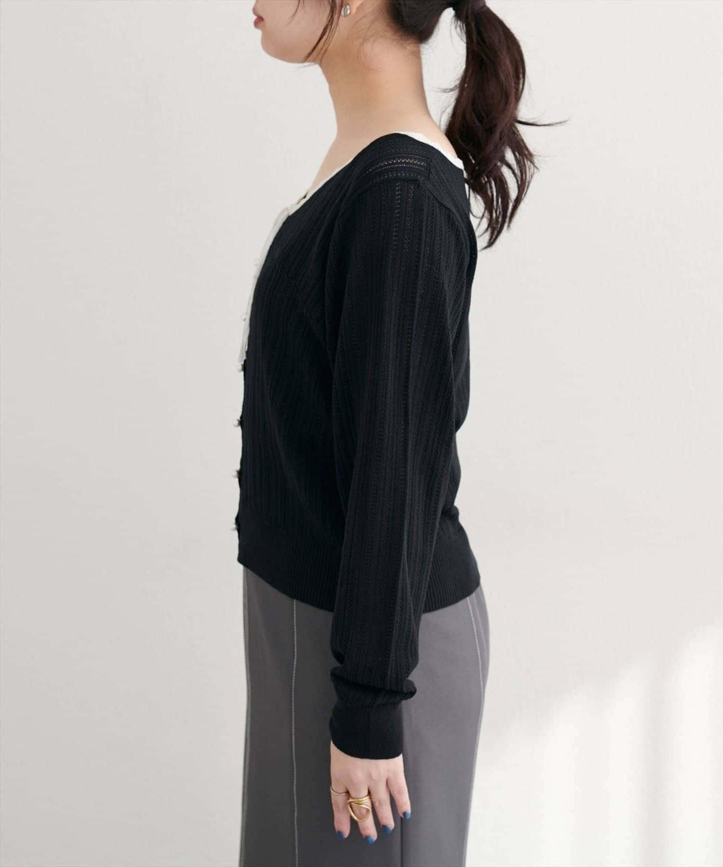 酷感十足的鏤空針織在外觀和舒適度上都很輕盈。此外,還建議穿出多層次的俏皮風格,讓內搭的顏色透出來。