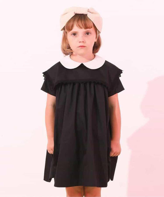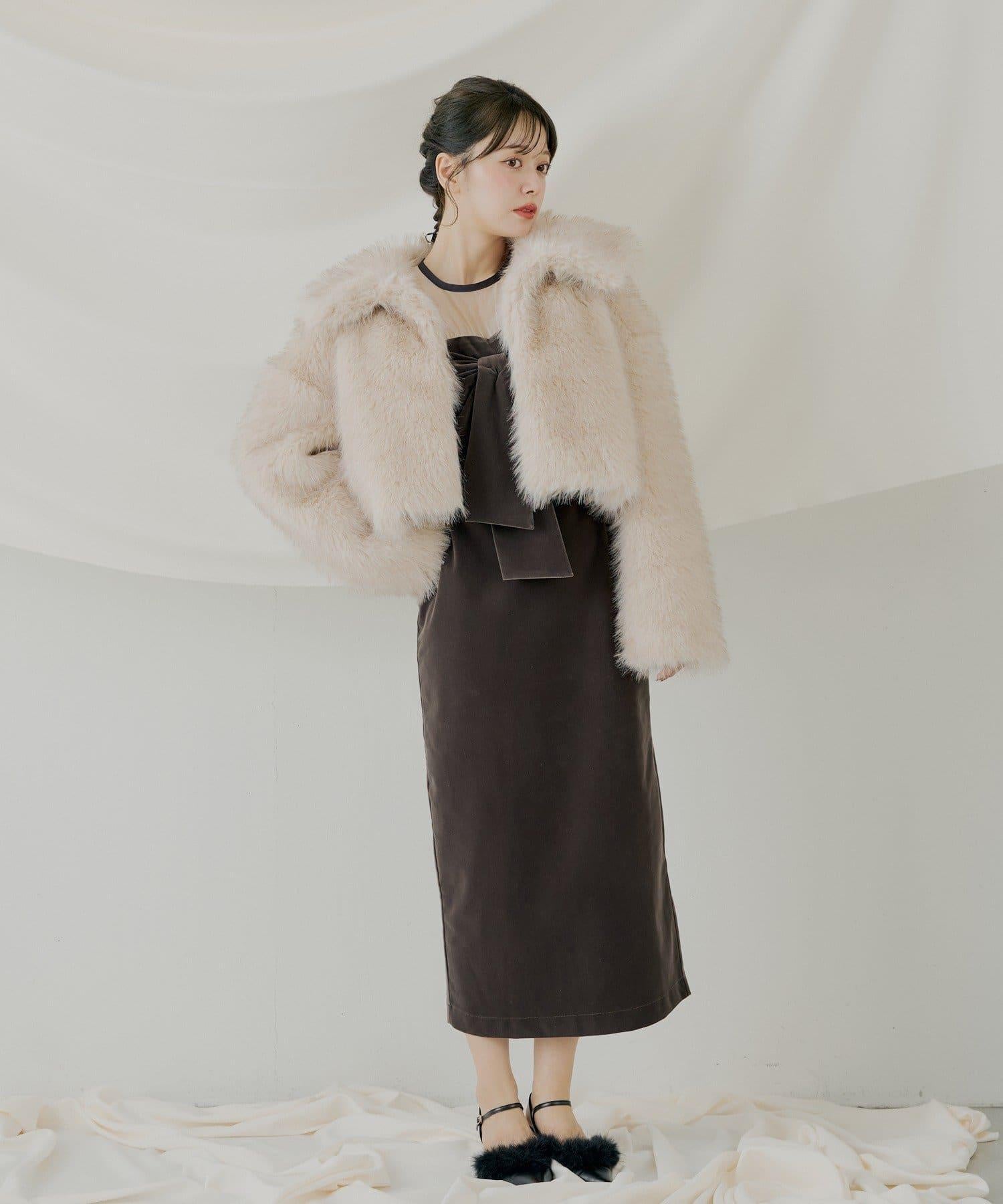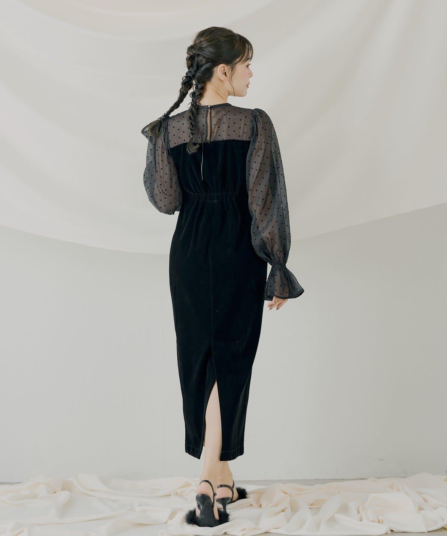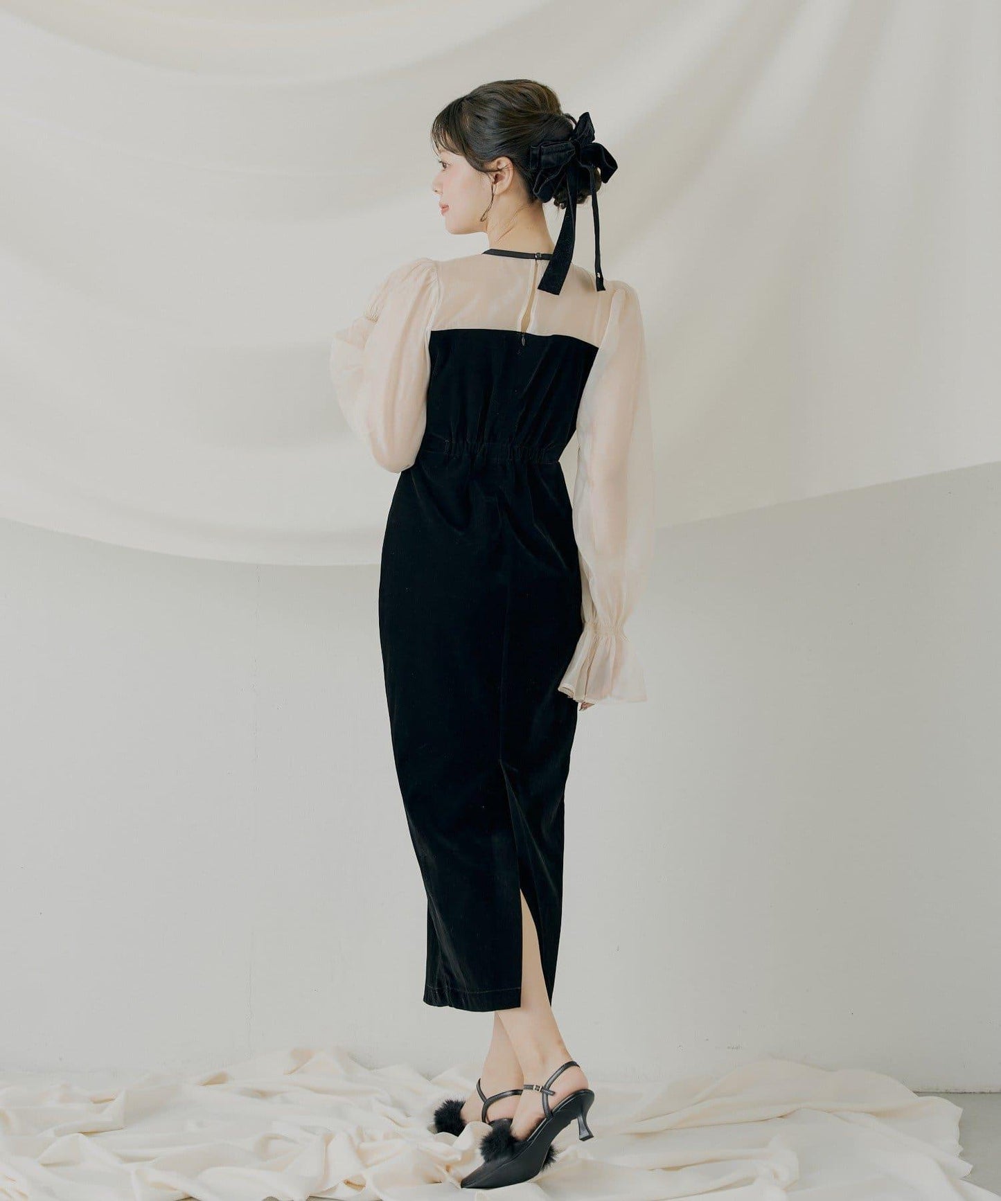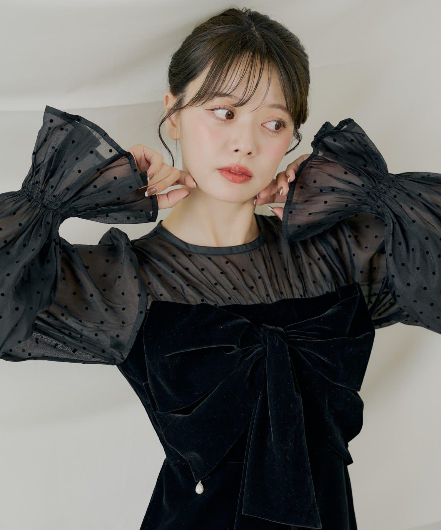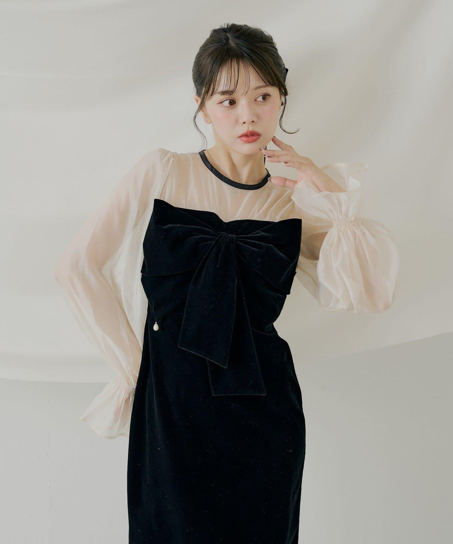 配色透視蝴蝶結天鵝絨連衣裙【SALON by Chico】