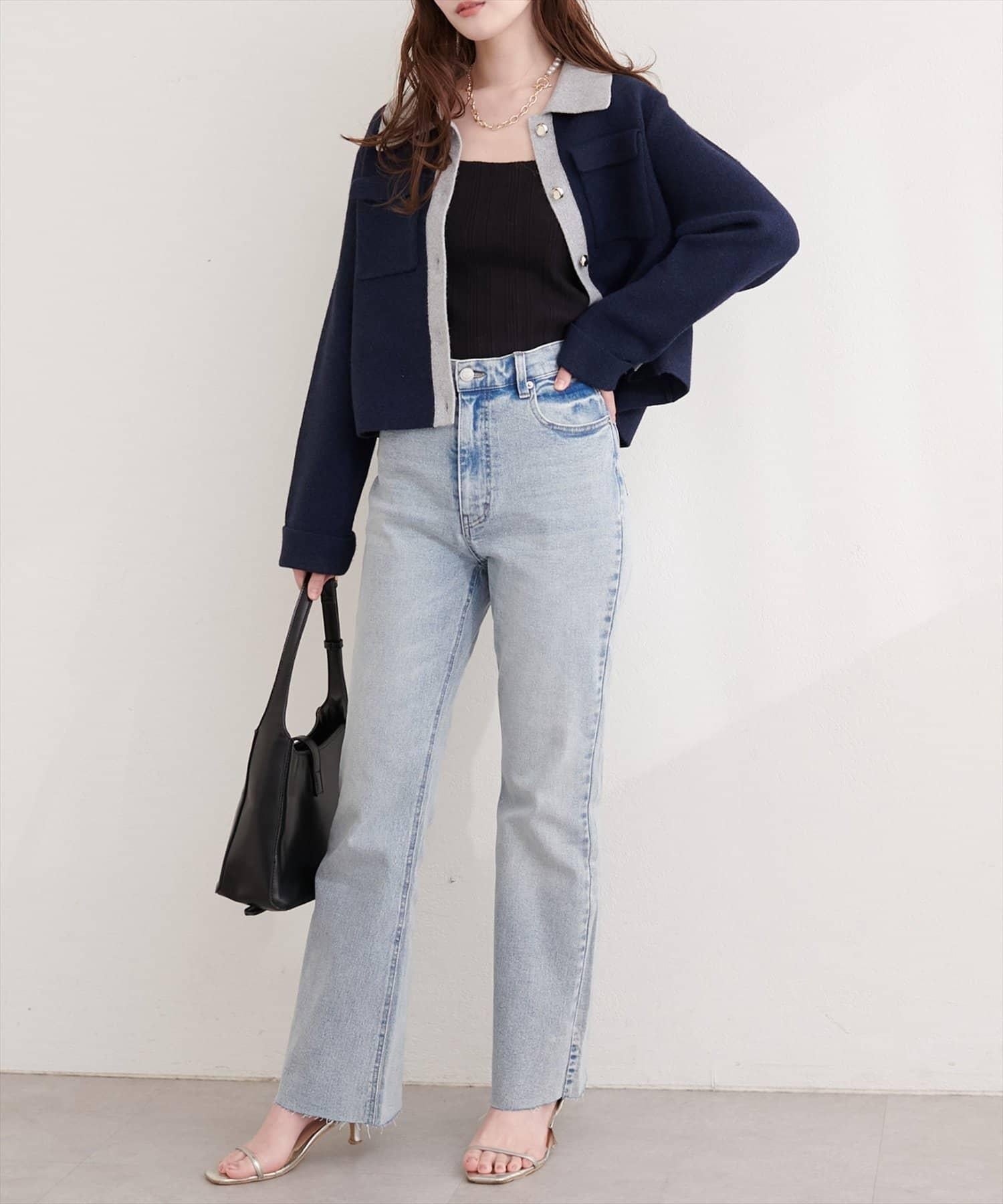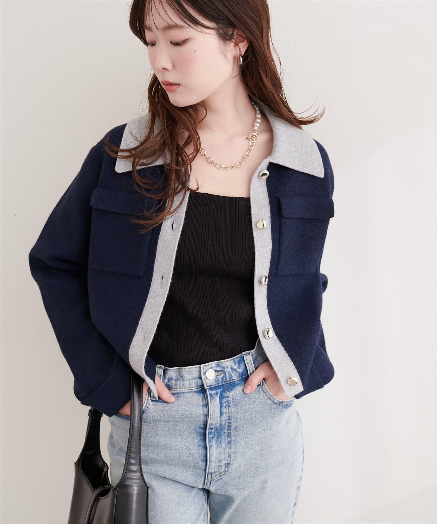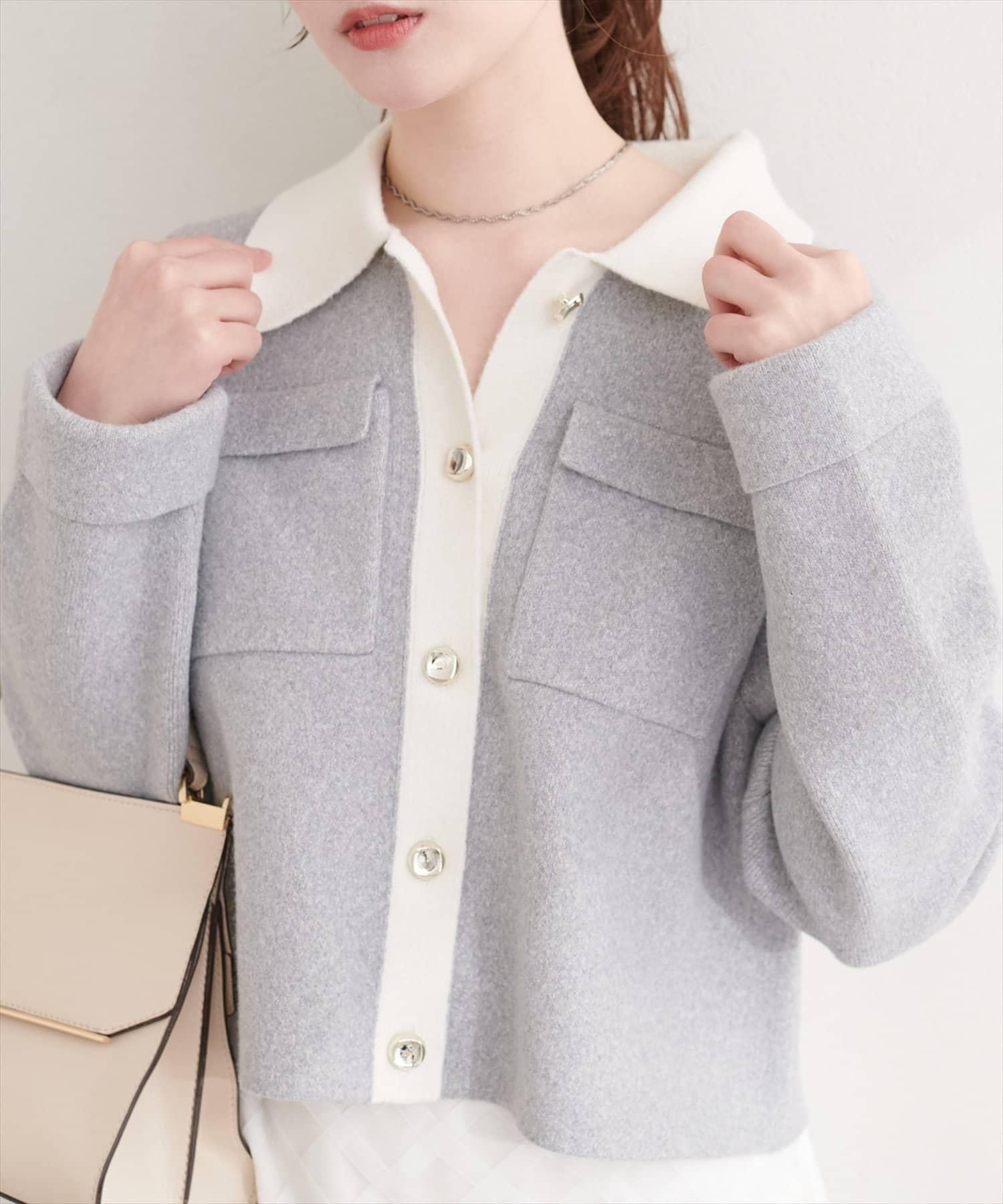 配色領設計 針織開衫