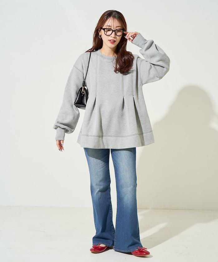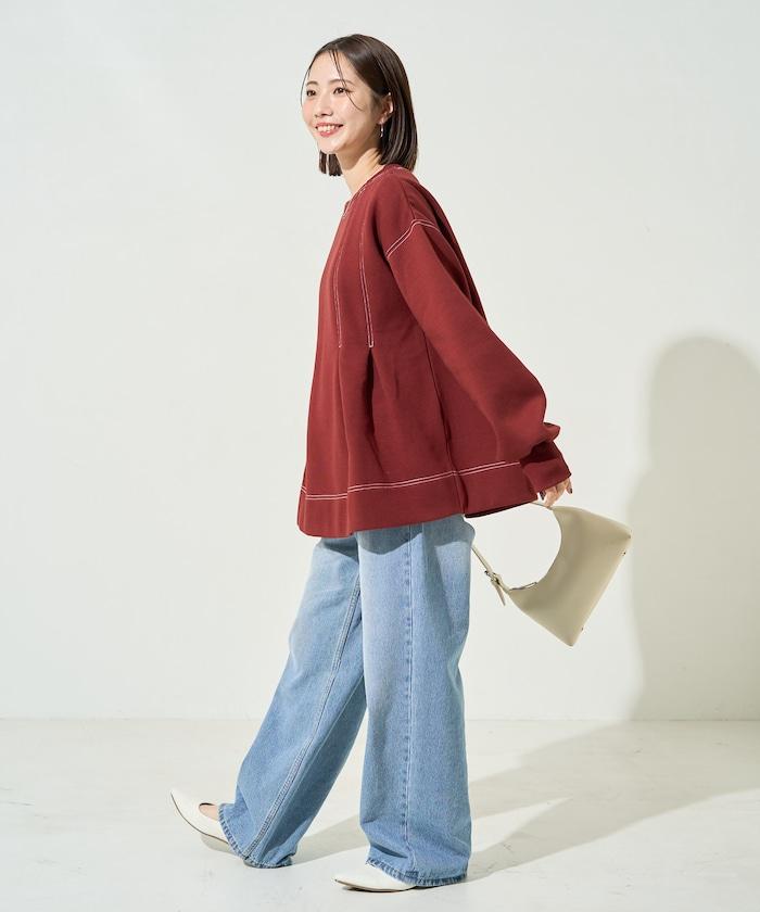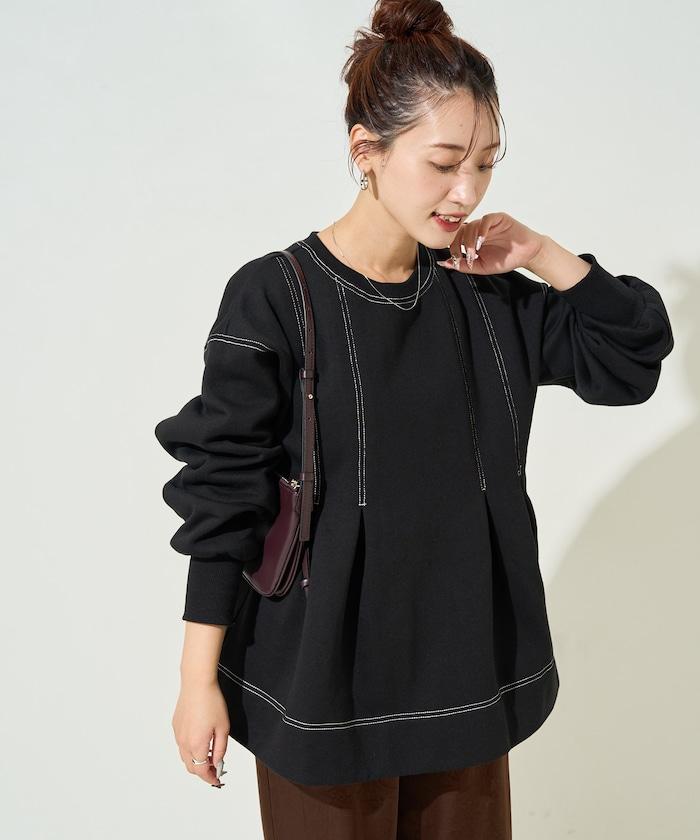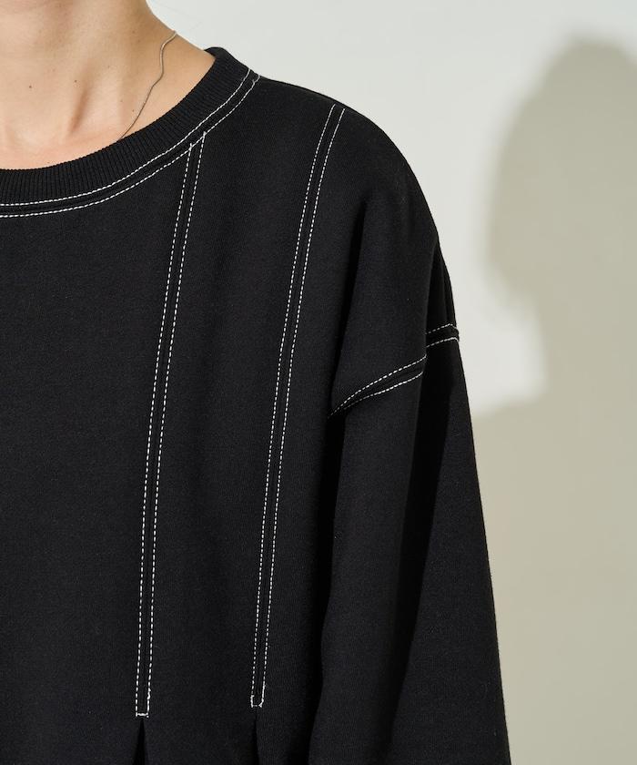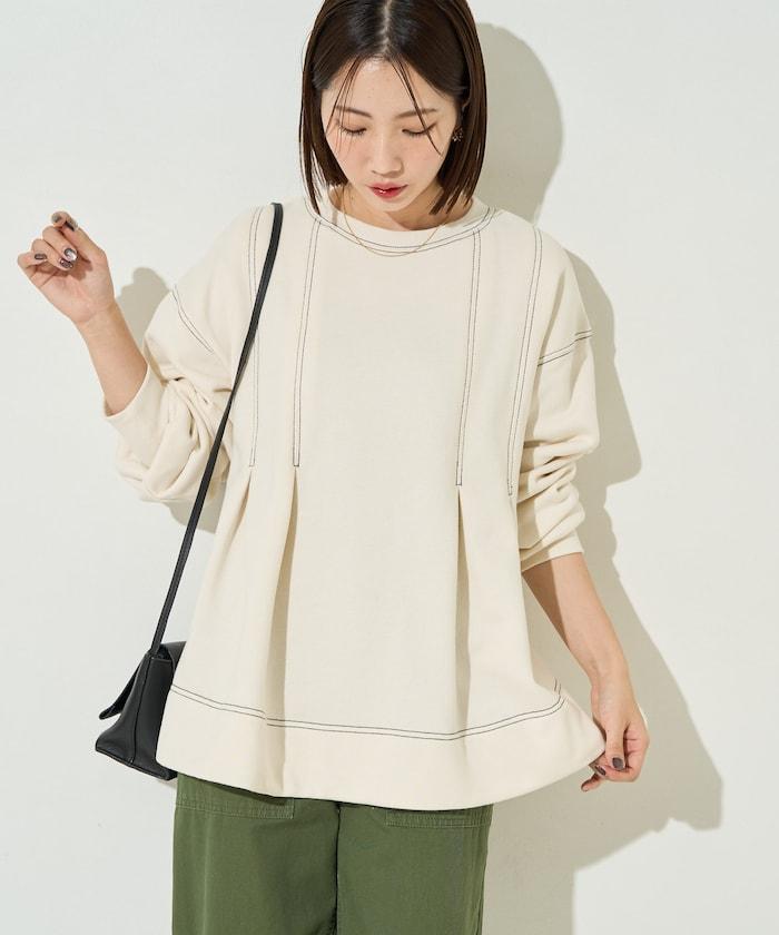 配色 ステッチ タック Aライン 裏起毛 チュニック【限定展開】