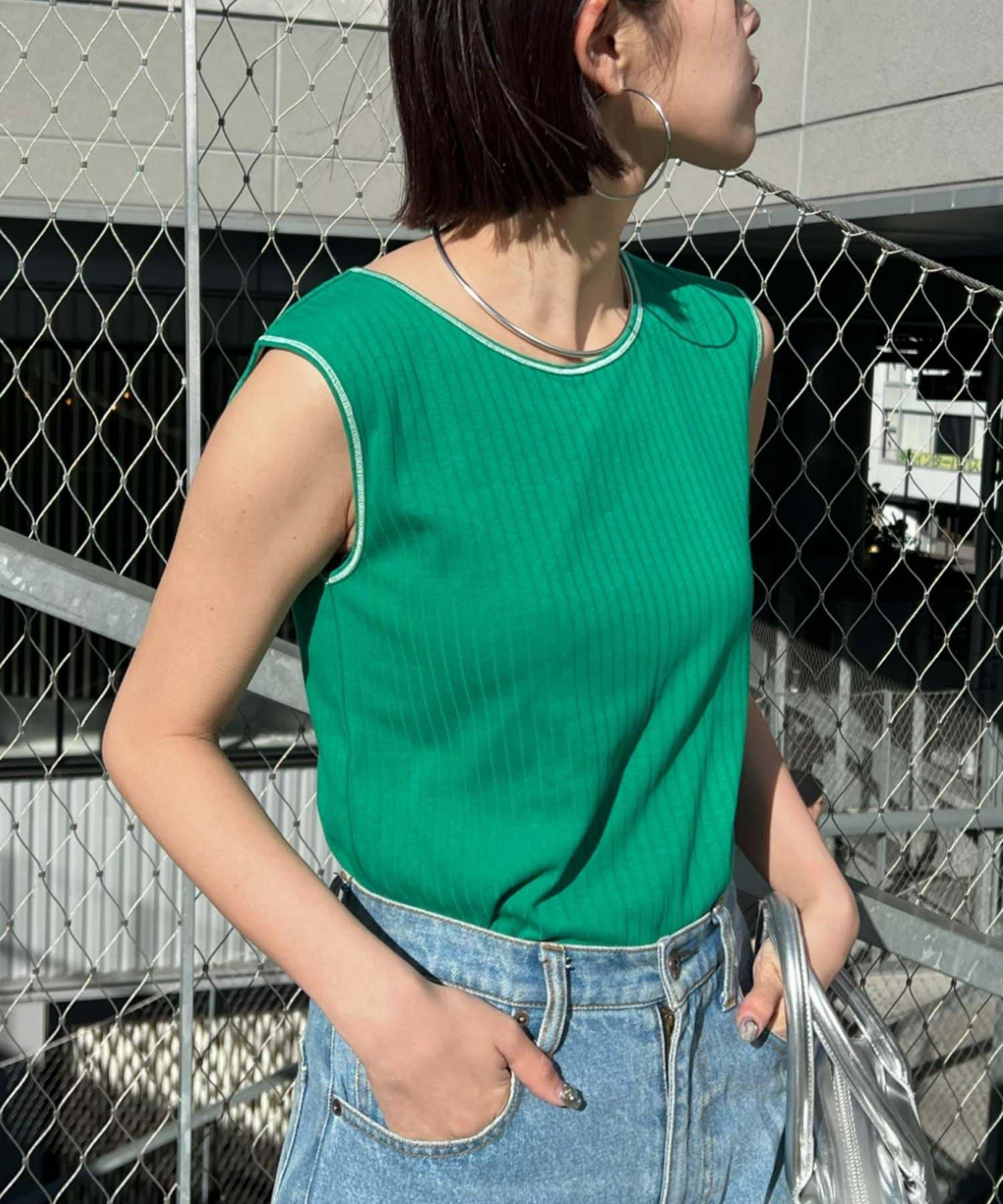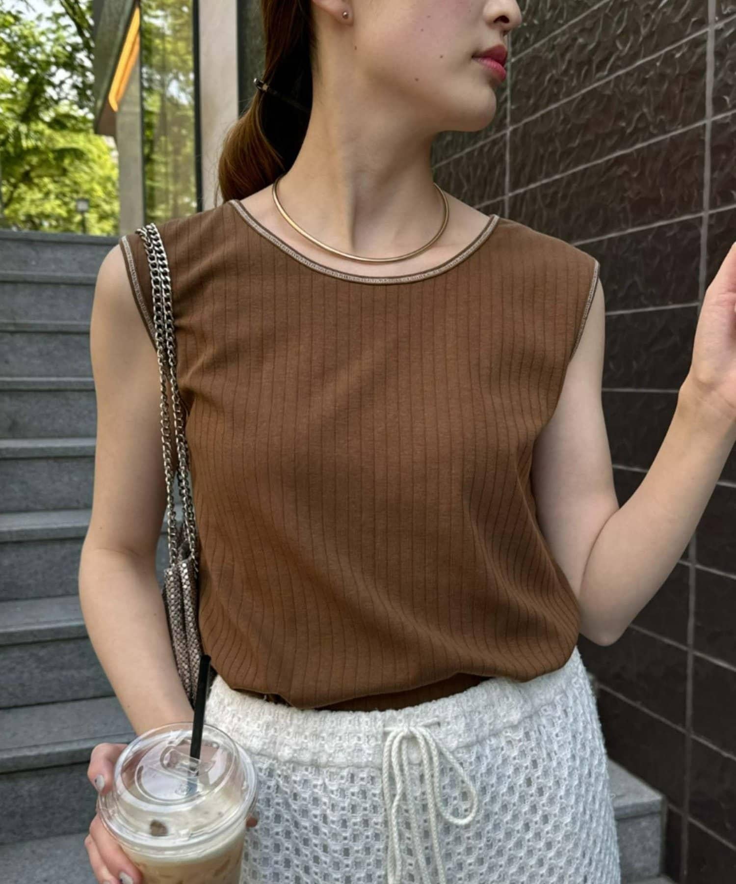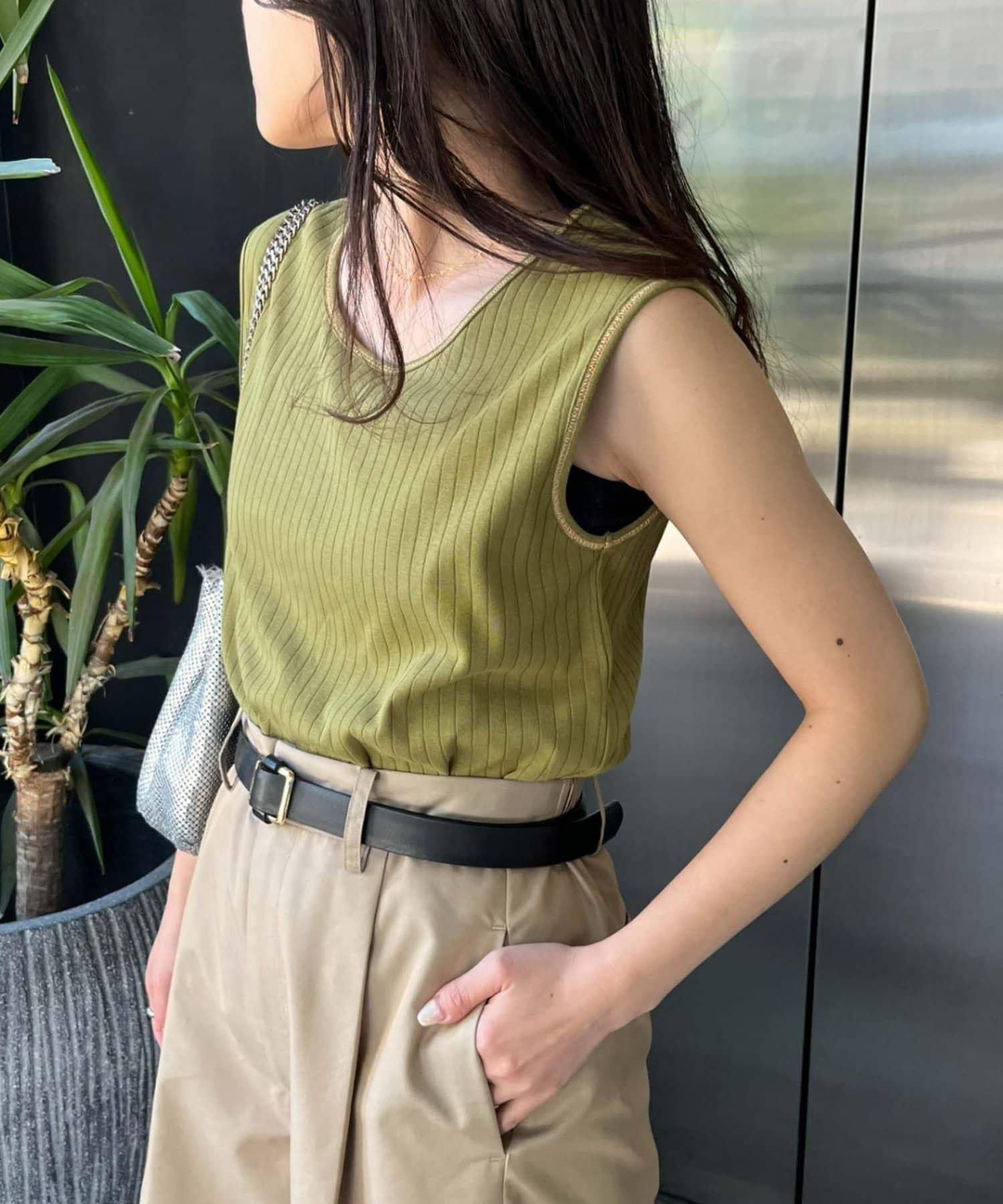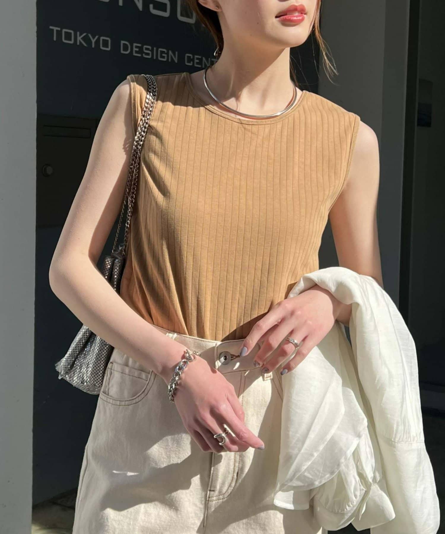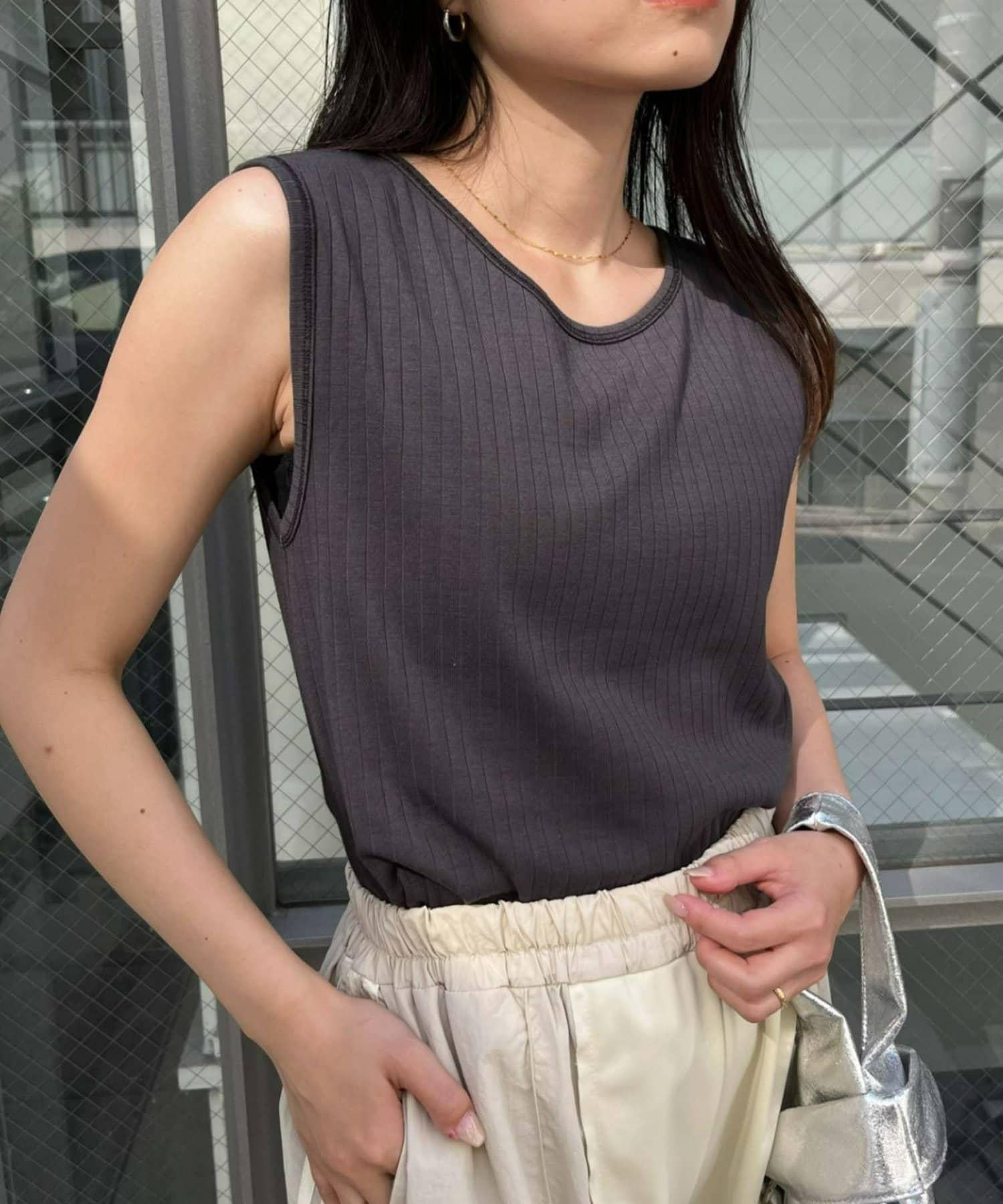 羅紋面料與身體完美貼合,強調垂直線條,勾勒出流暢的輪廓。