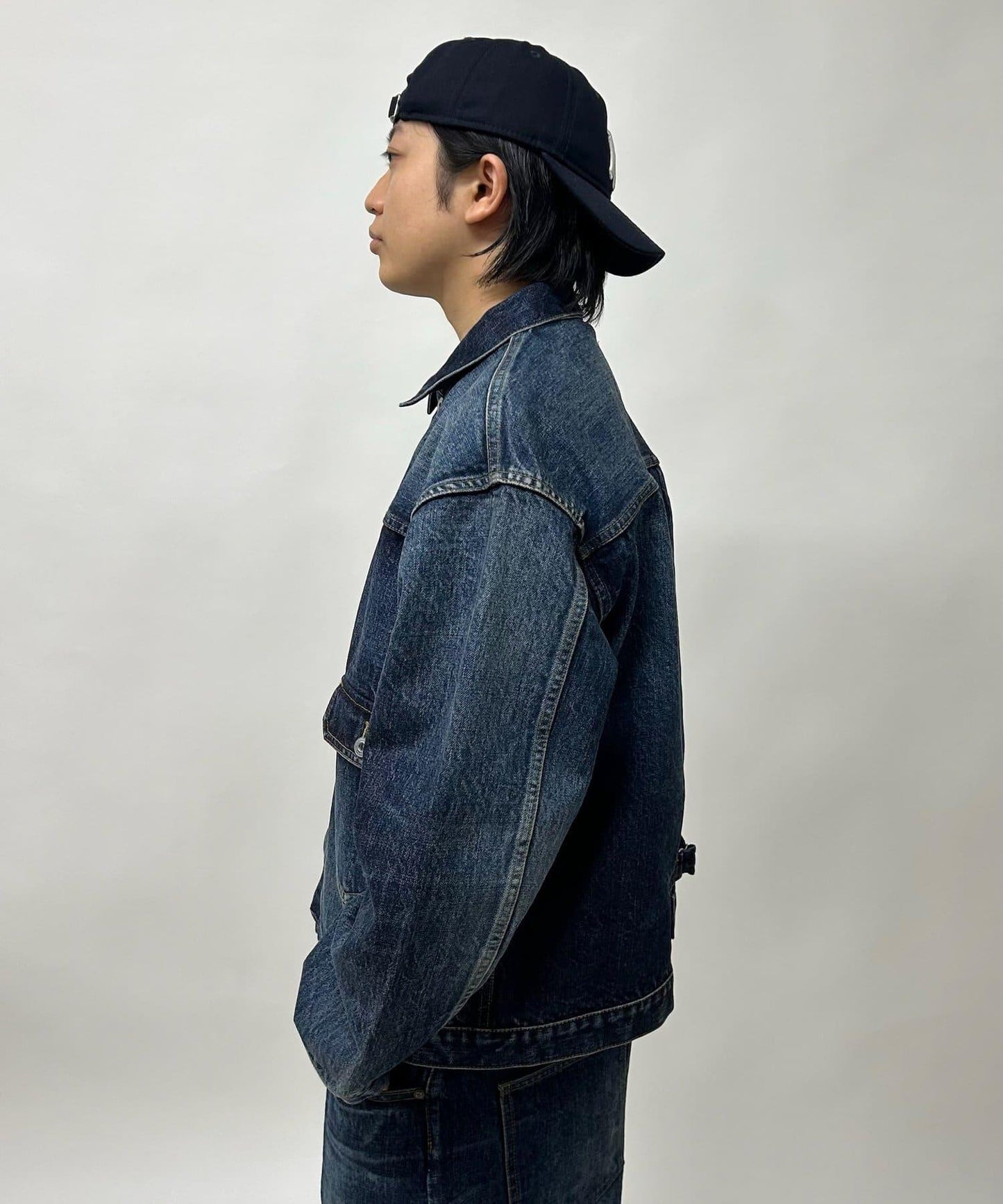 通過噴砂進行脫色,再加上手工加工,以表現使用過的外觀,並表現出褪色後的美麗藍色。