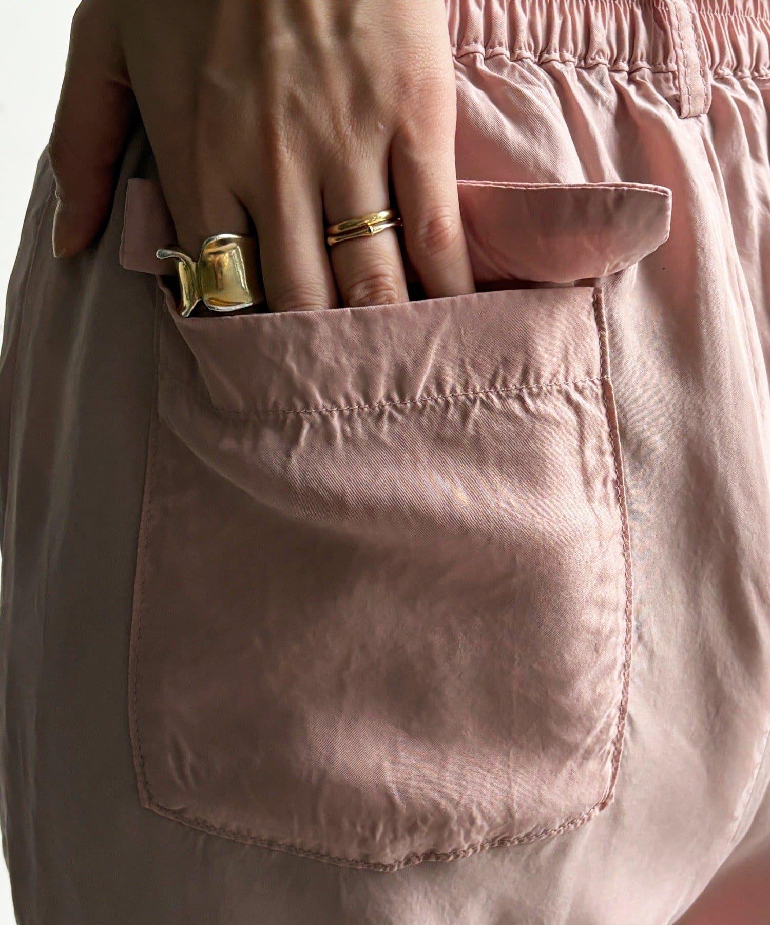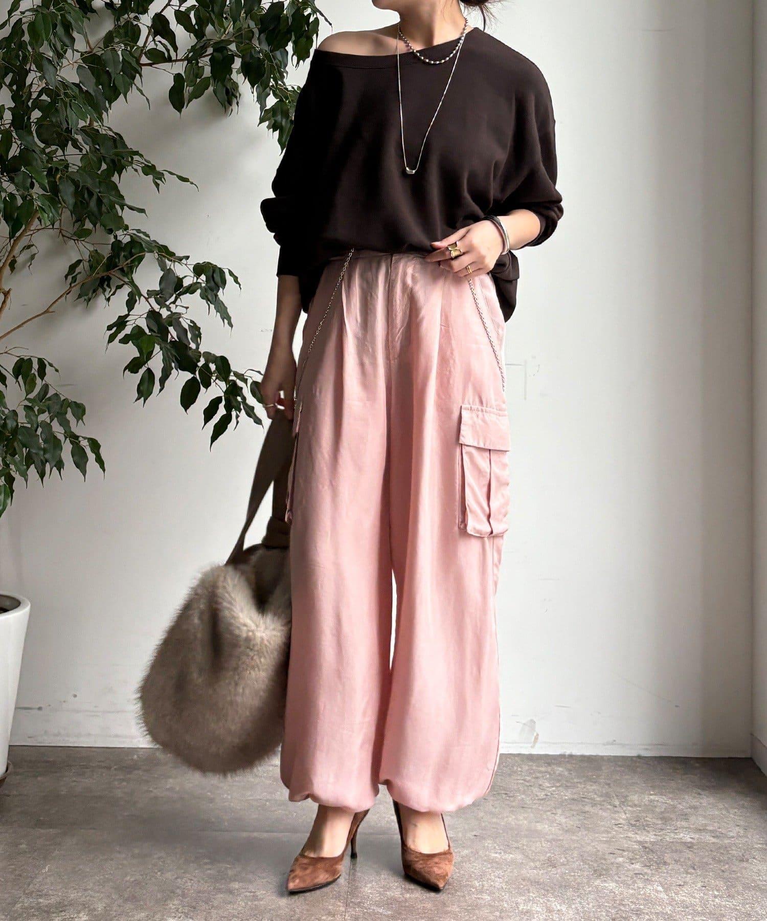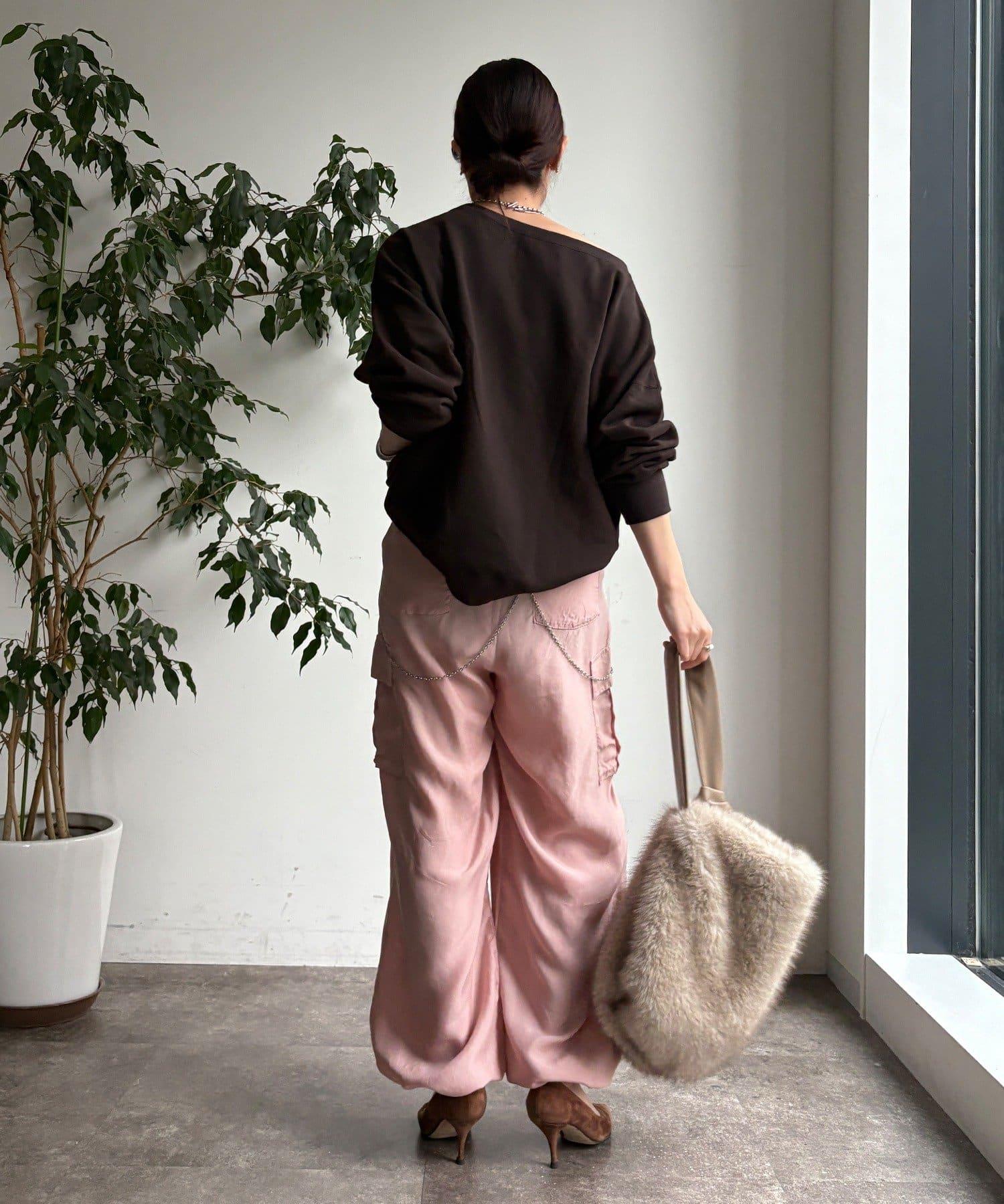 光滑的手感和輕微的光澤感為休閒揹帶褲的設計增添了一絲優雅。