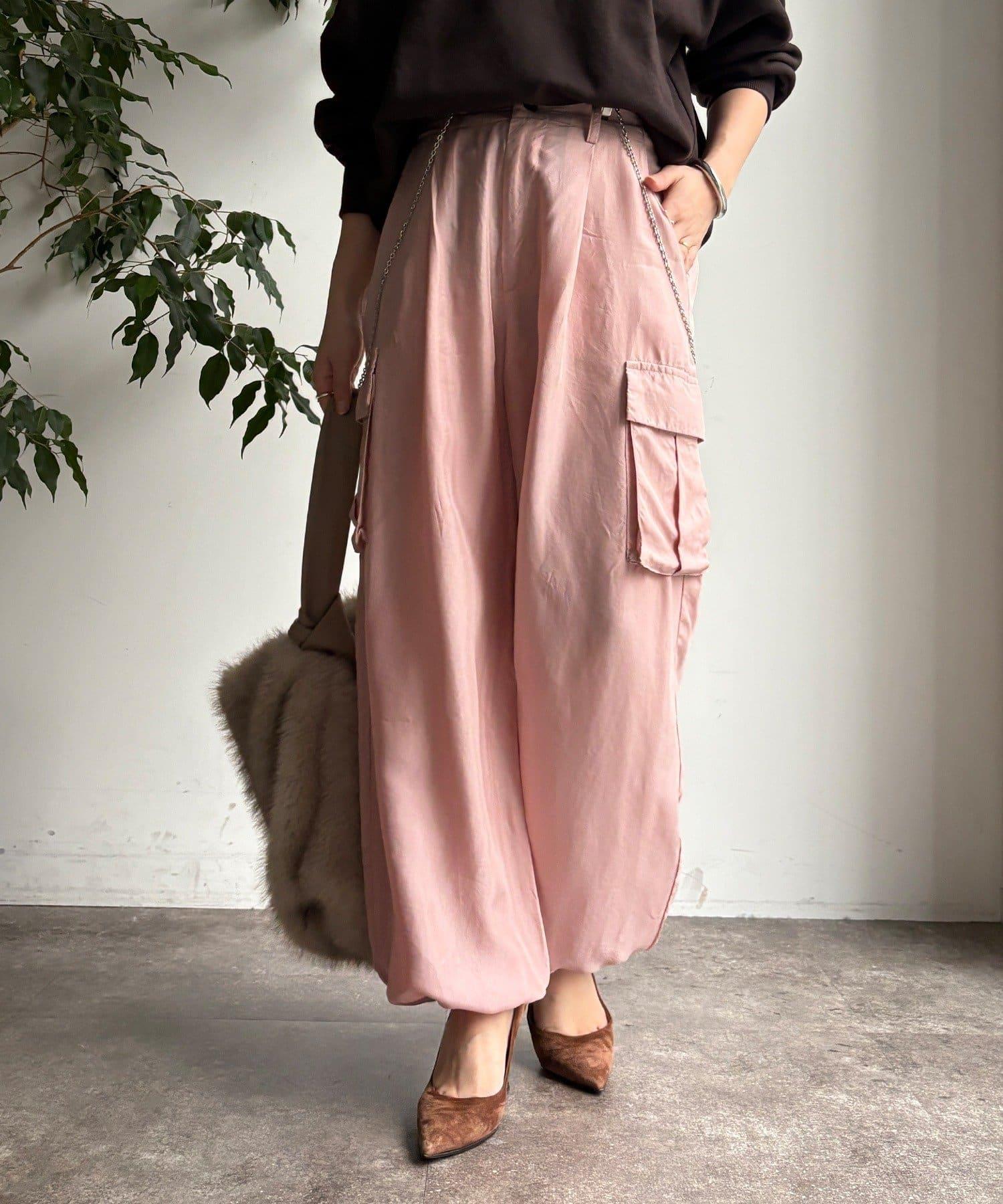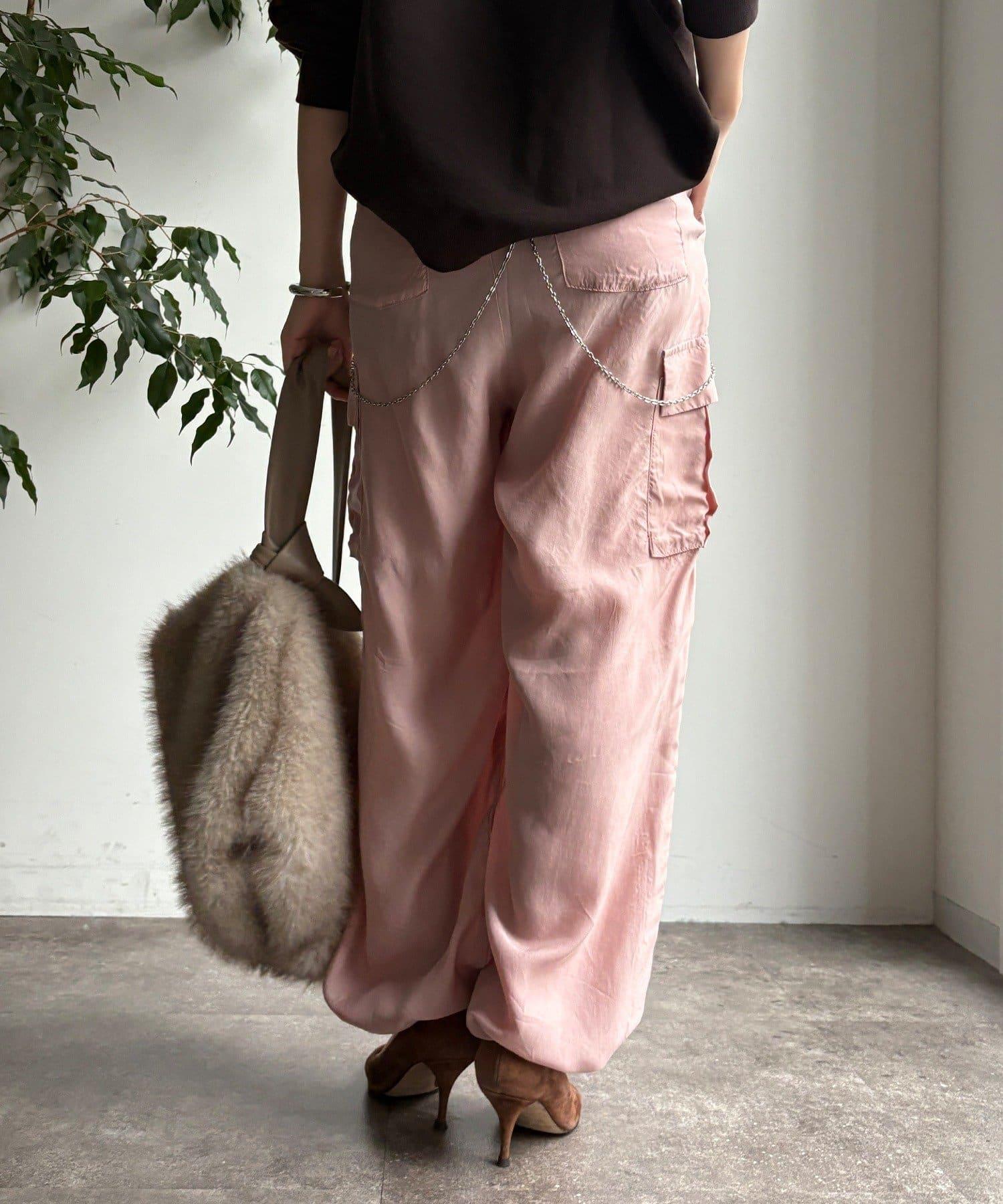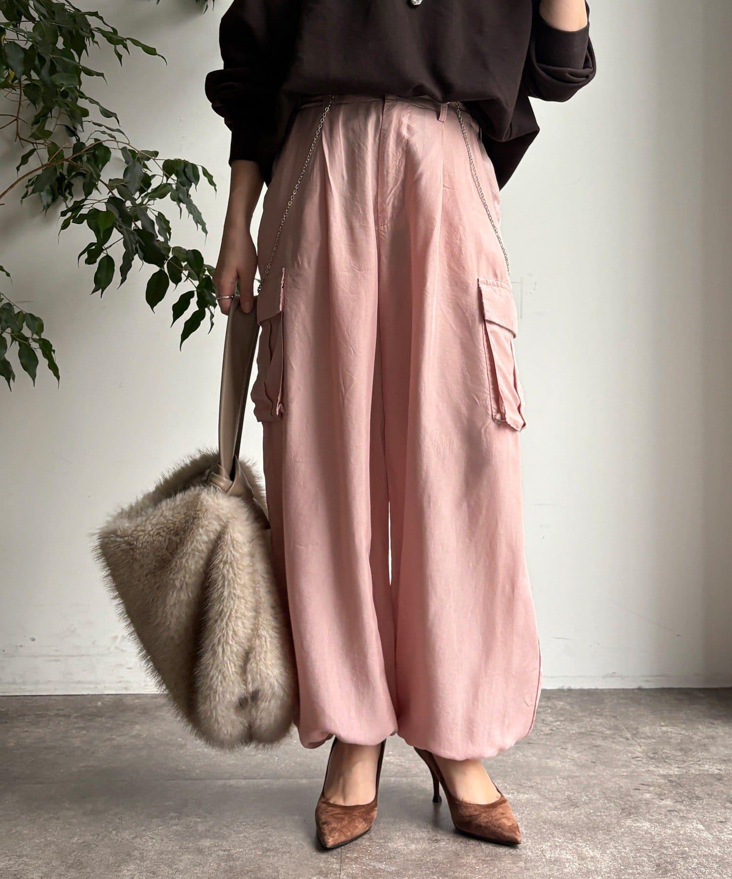 光滑的手感和輕微的光澤感為休閒揹帶褲的設計增添了一絲優雅。