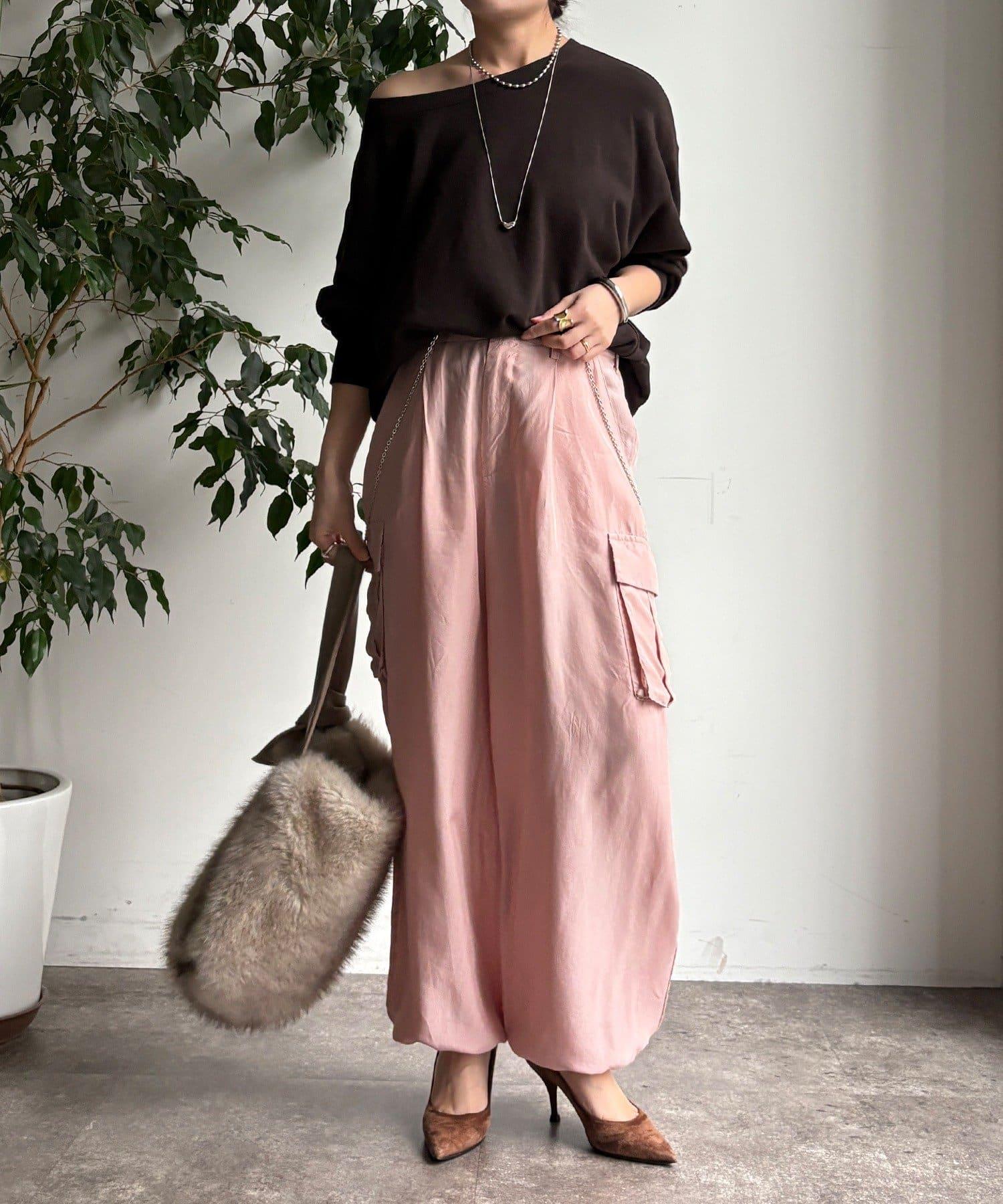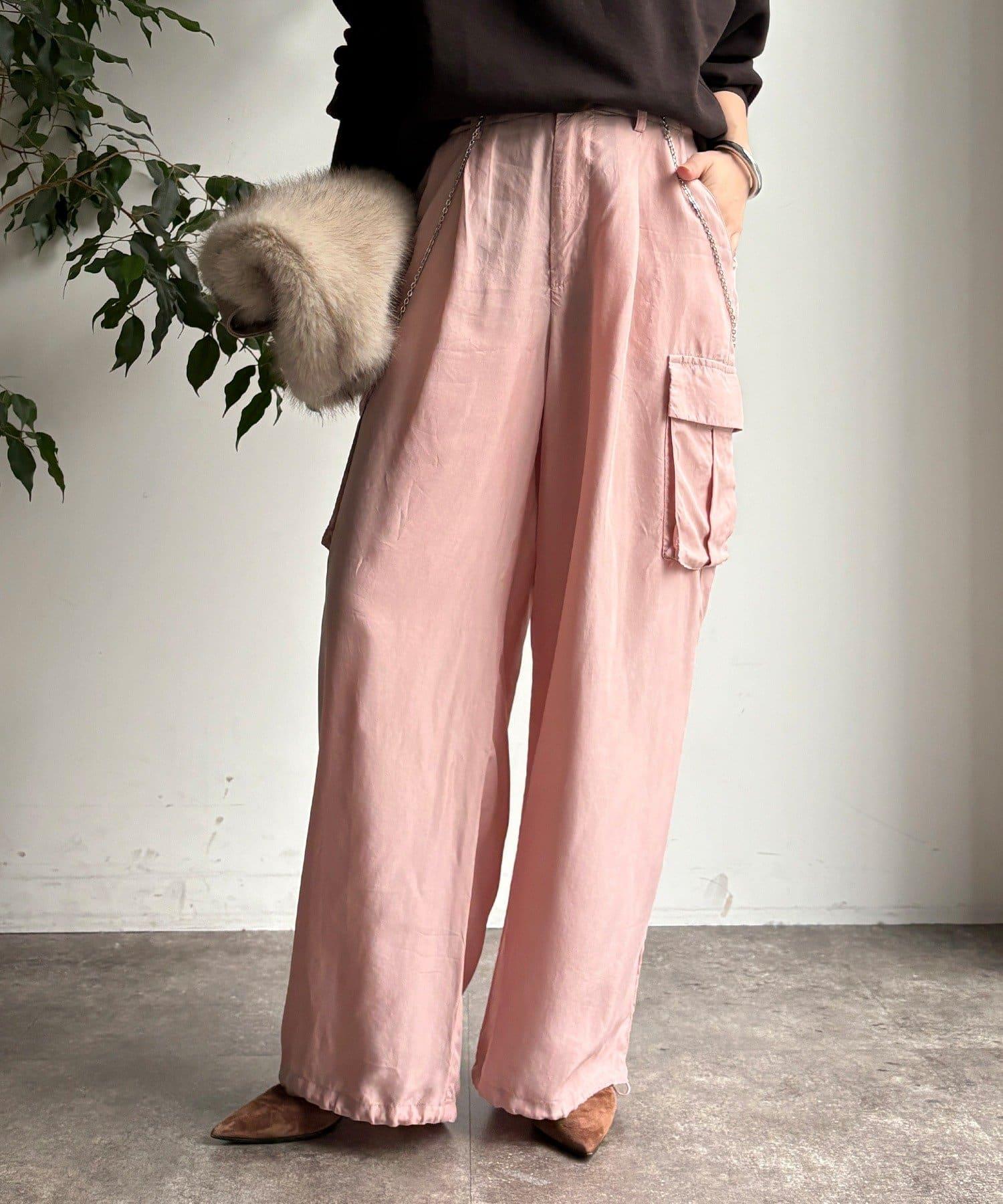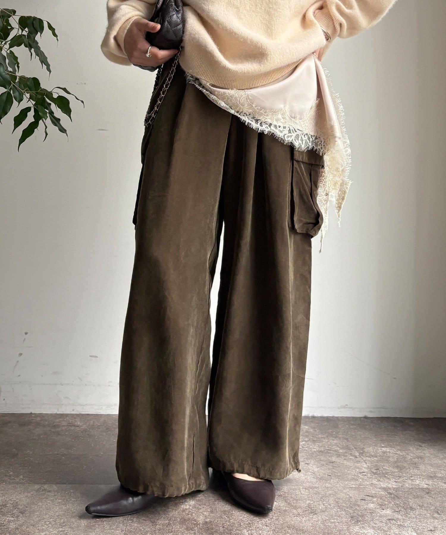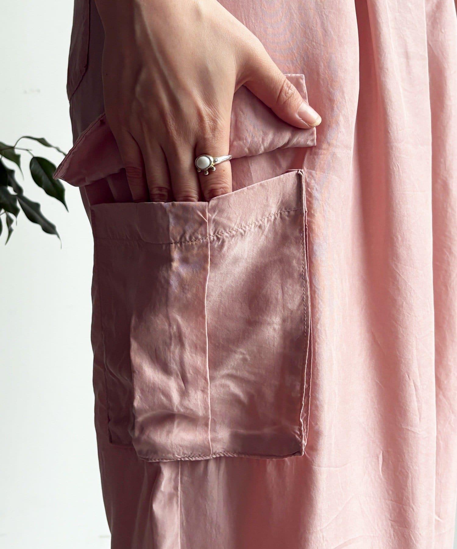 採用時尚的寬直筒輪廓設計。兩側的大貨袋突出了簡潔的垂直線條,由於面料的寬鬆感,不會顯得過於豐滿。