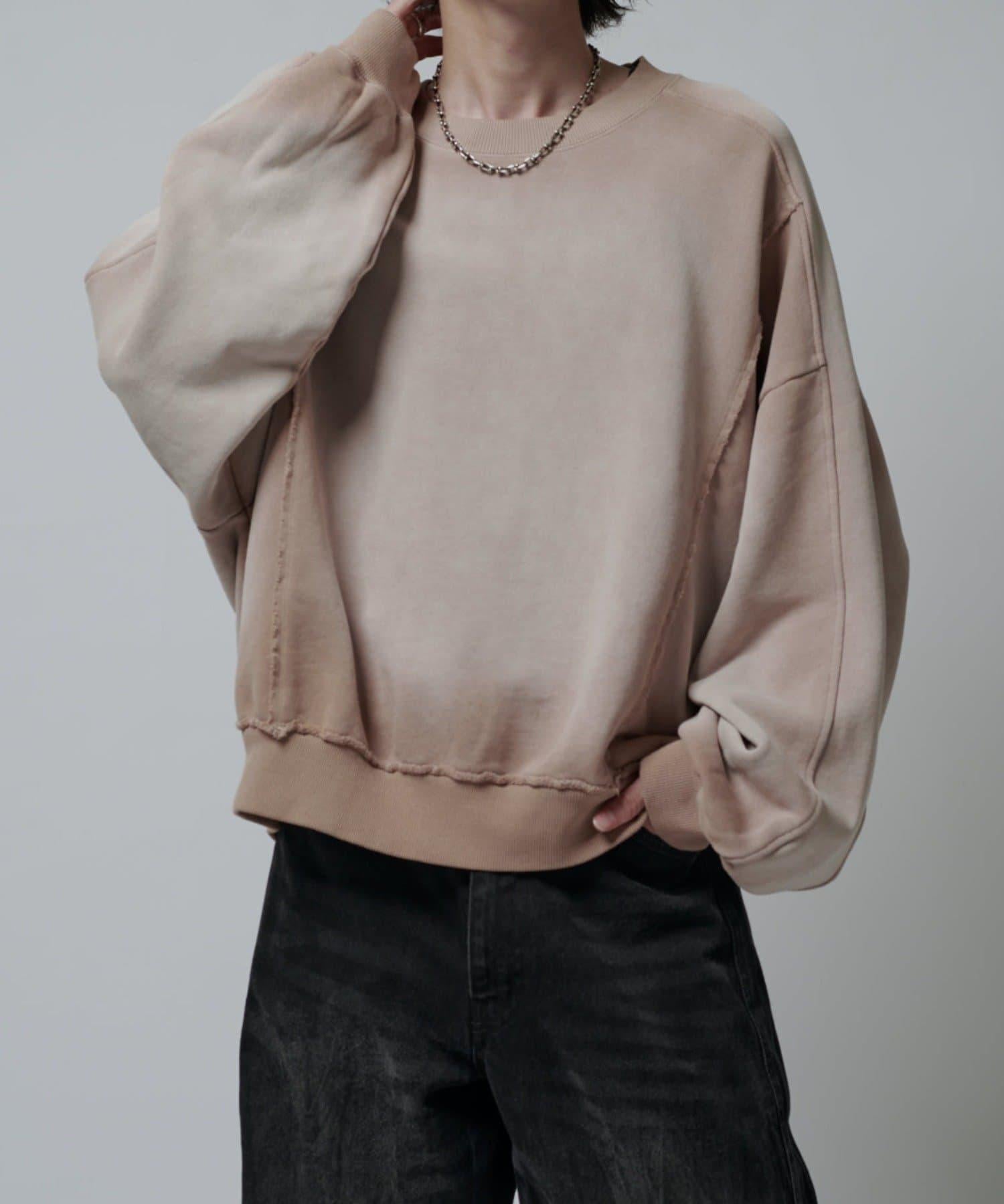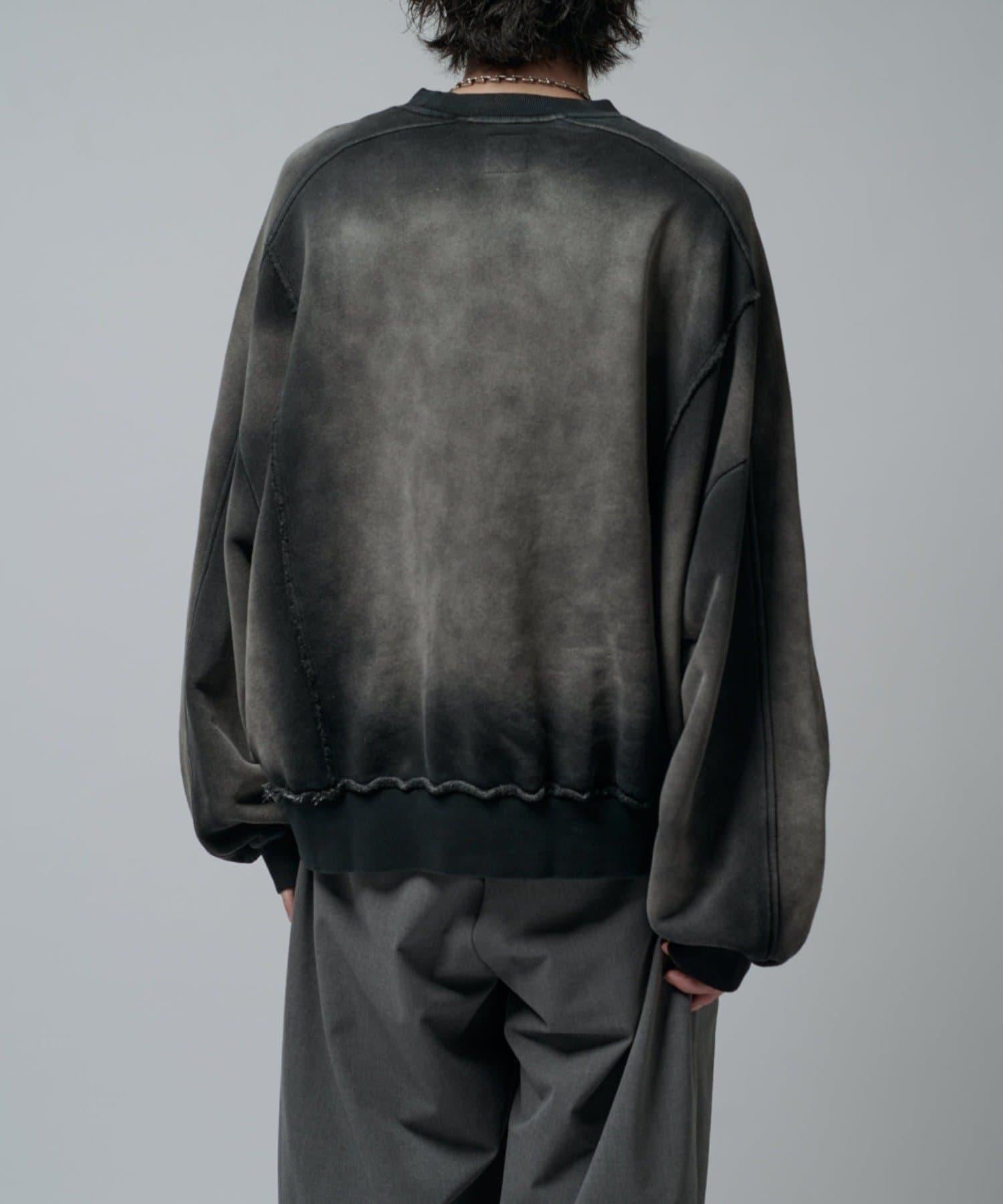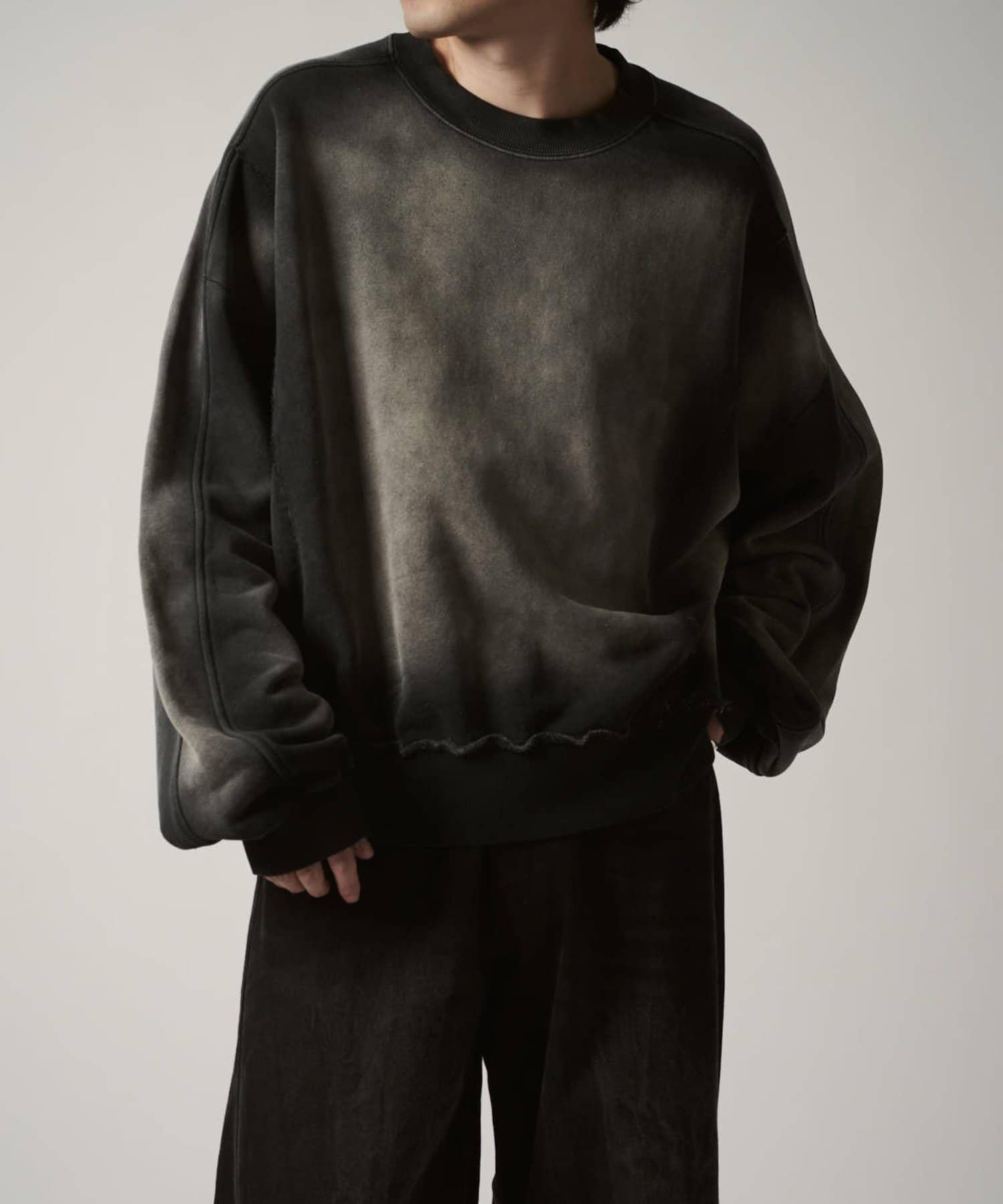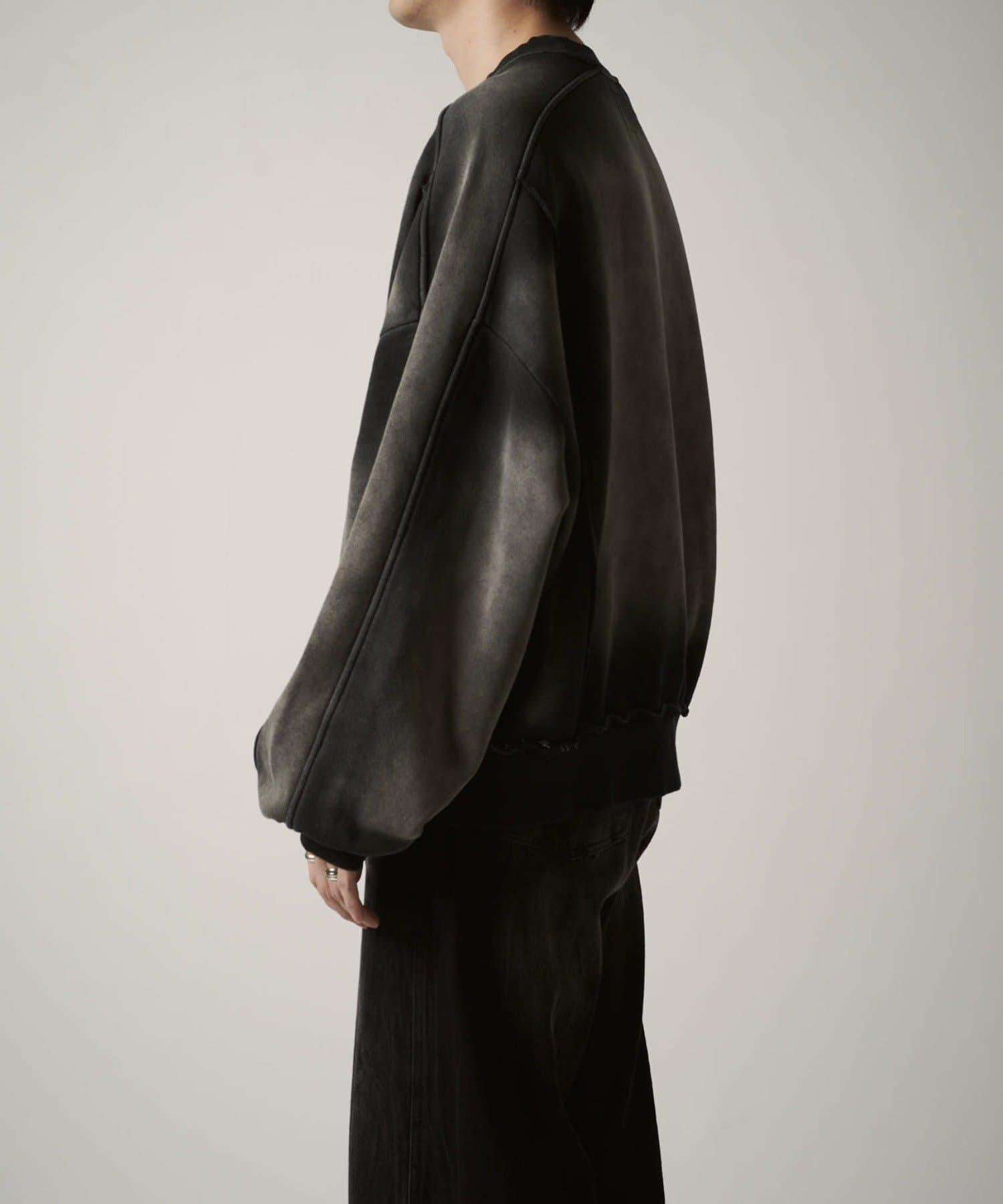 這款運動衫的表面經過漂白處理。寬大、圓潤的輪廓,相對於長度而言,衣身寬度較寬。