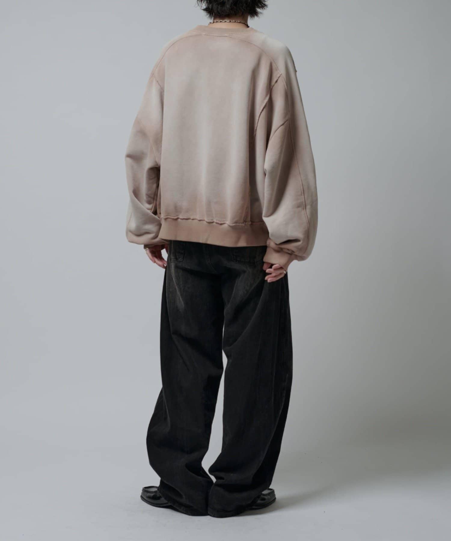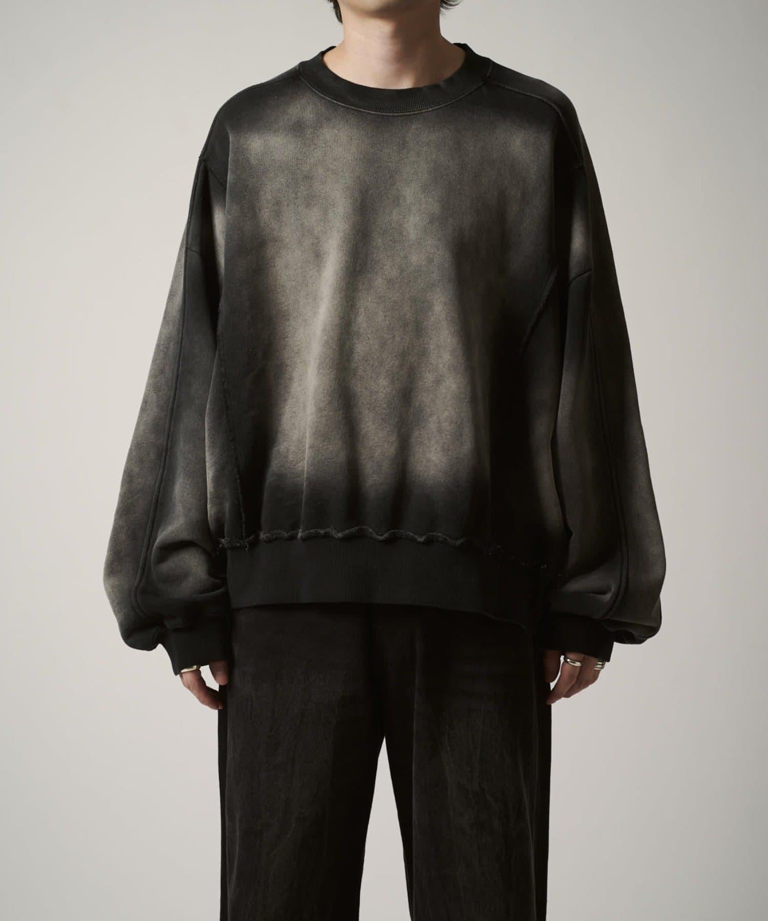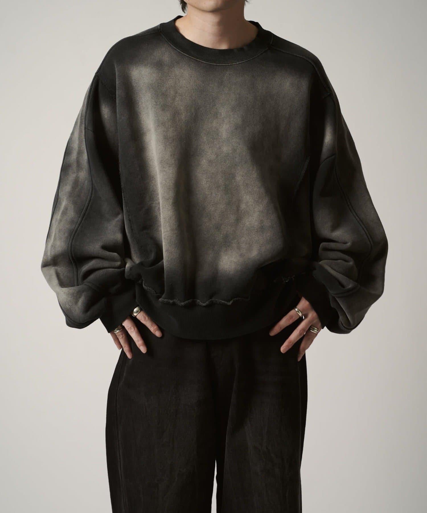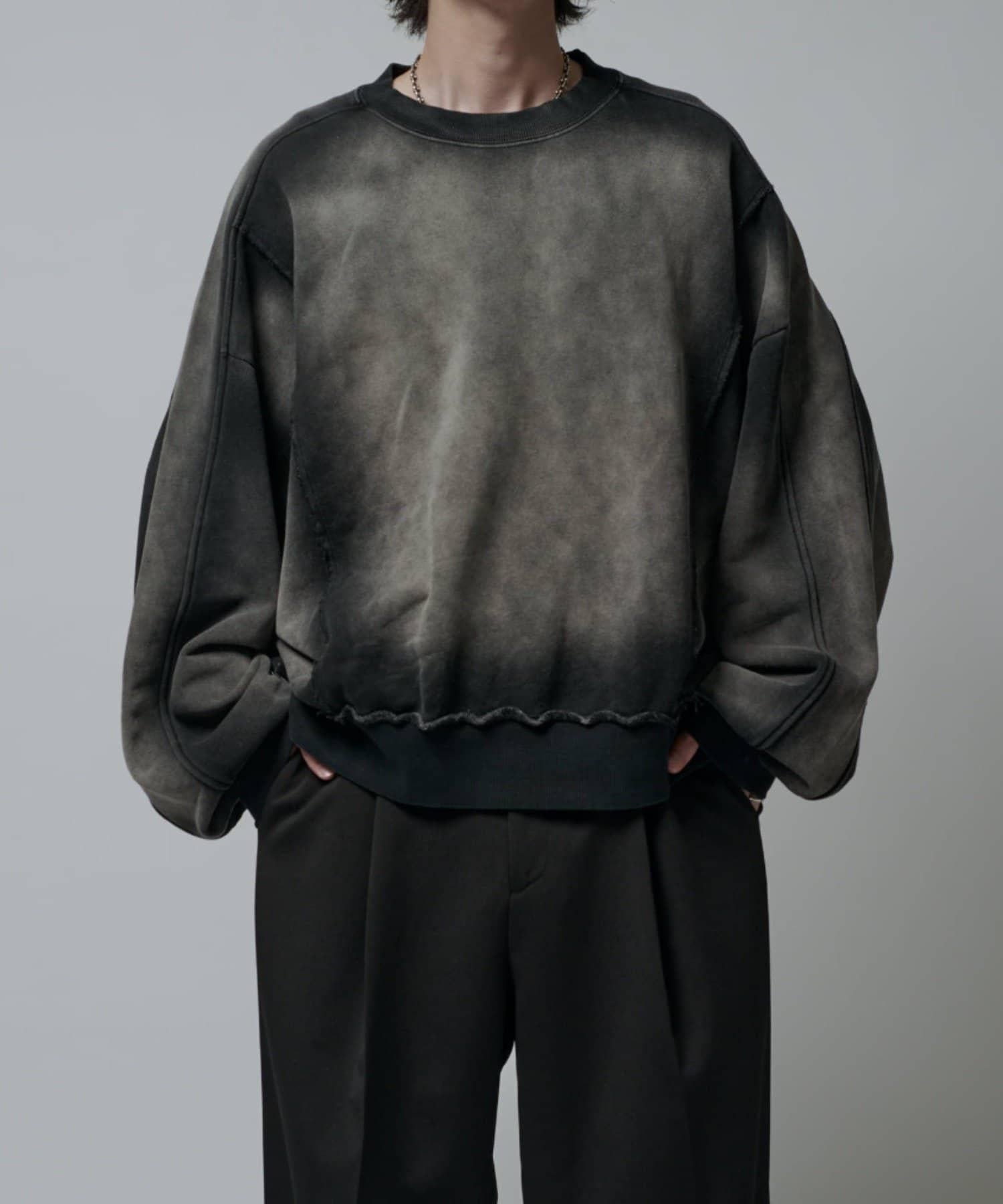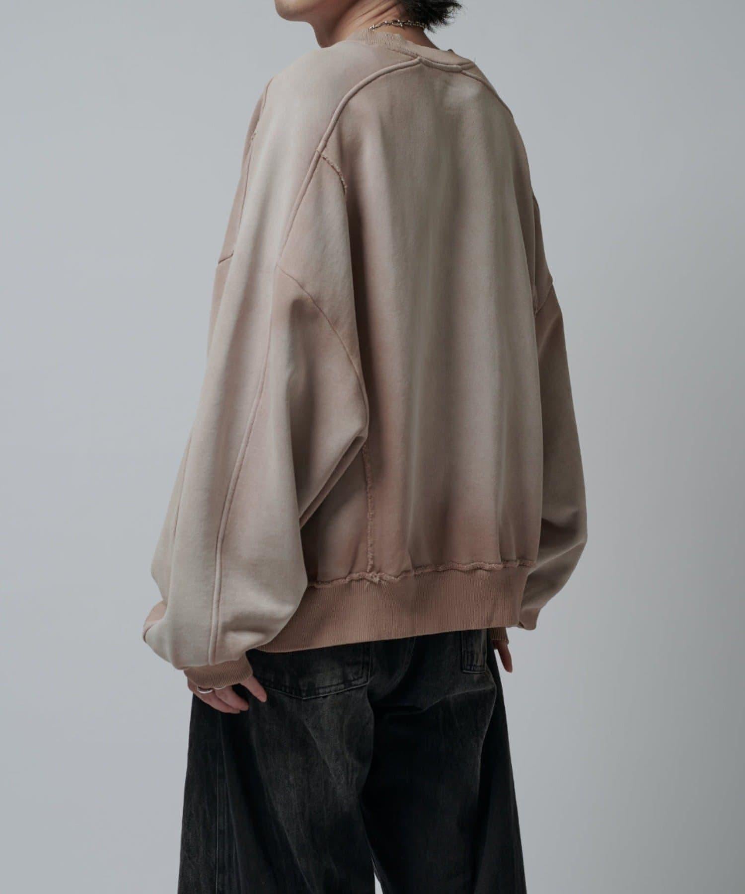 這款運動衫的表面經過漂白處理。寬大、圓潤的輪廓,相對於長度而言,衣身寬度較寬。