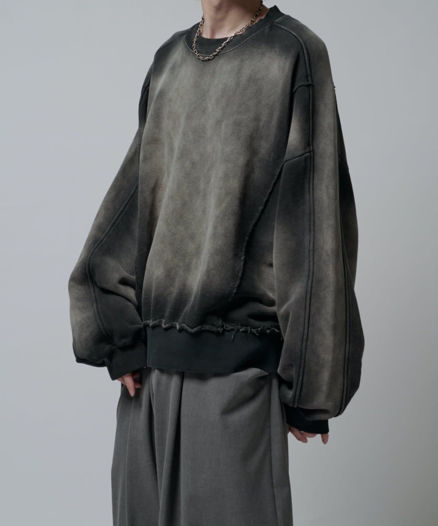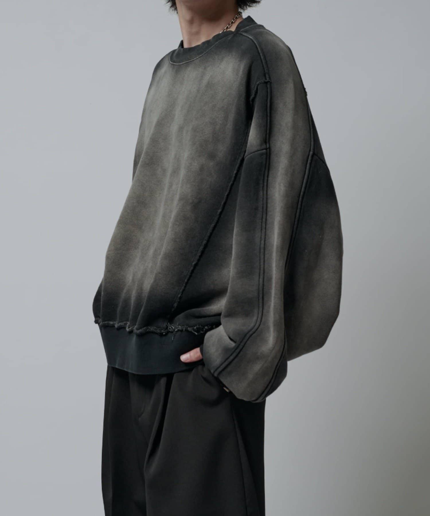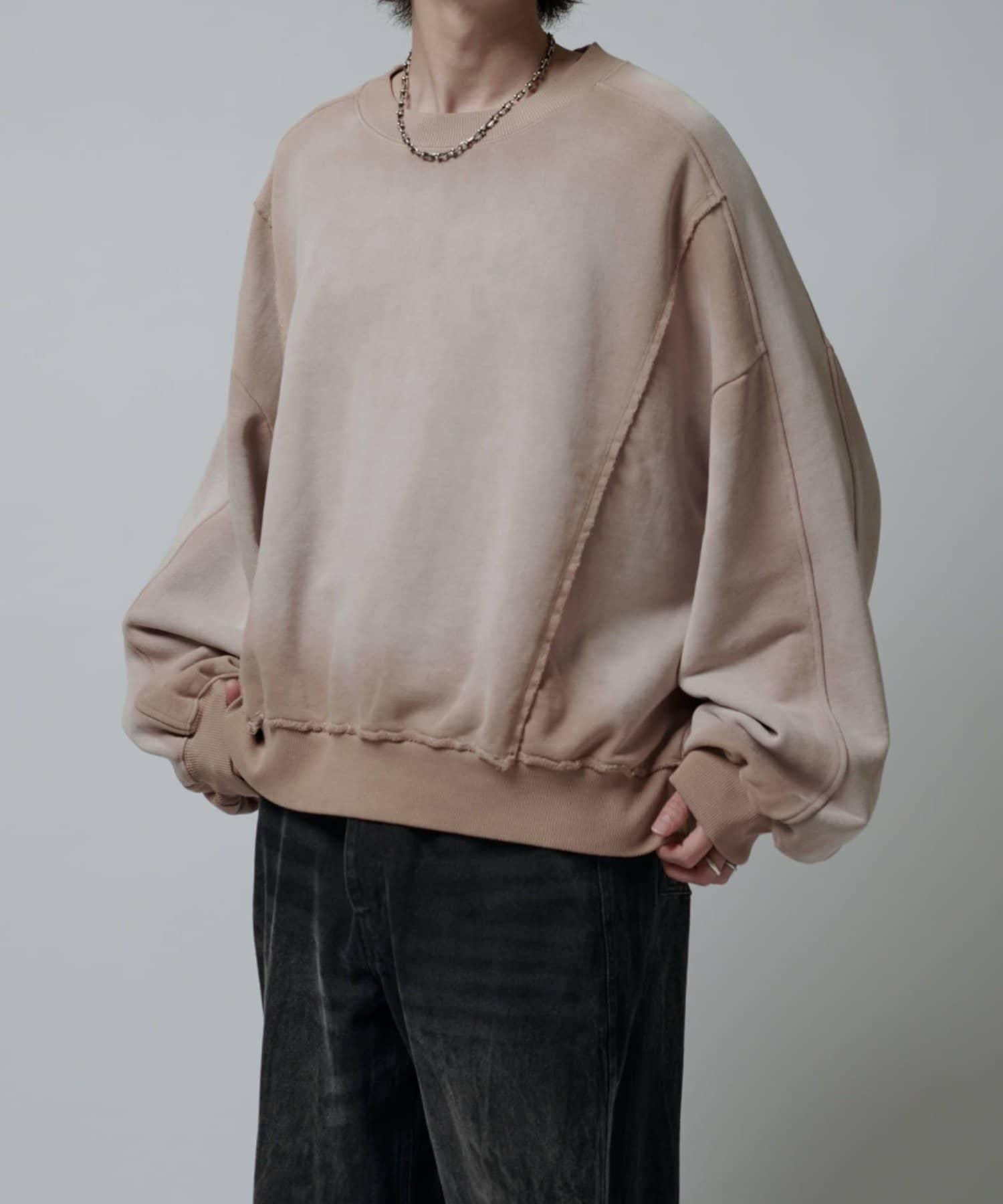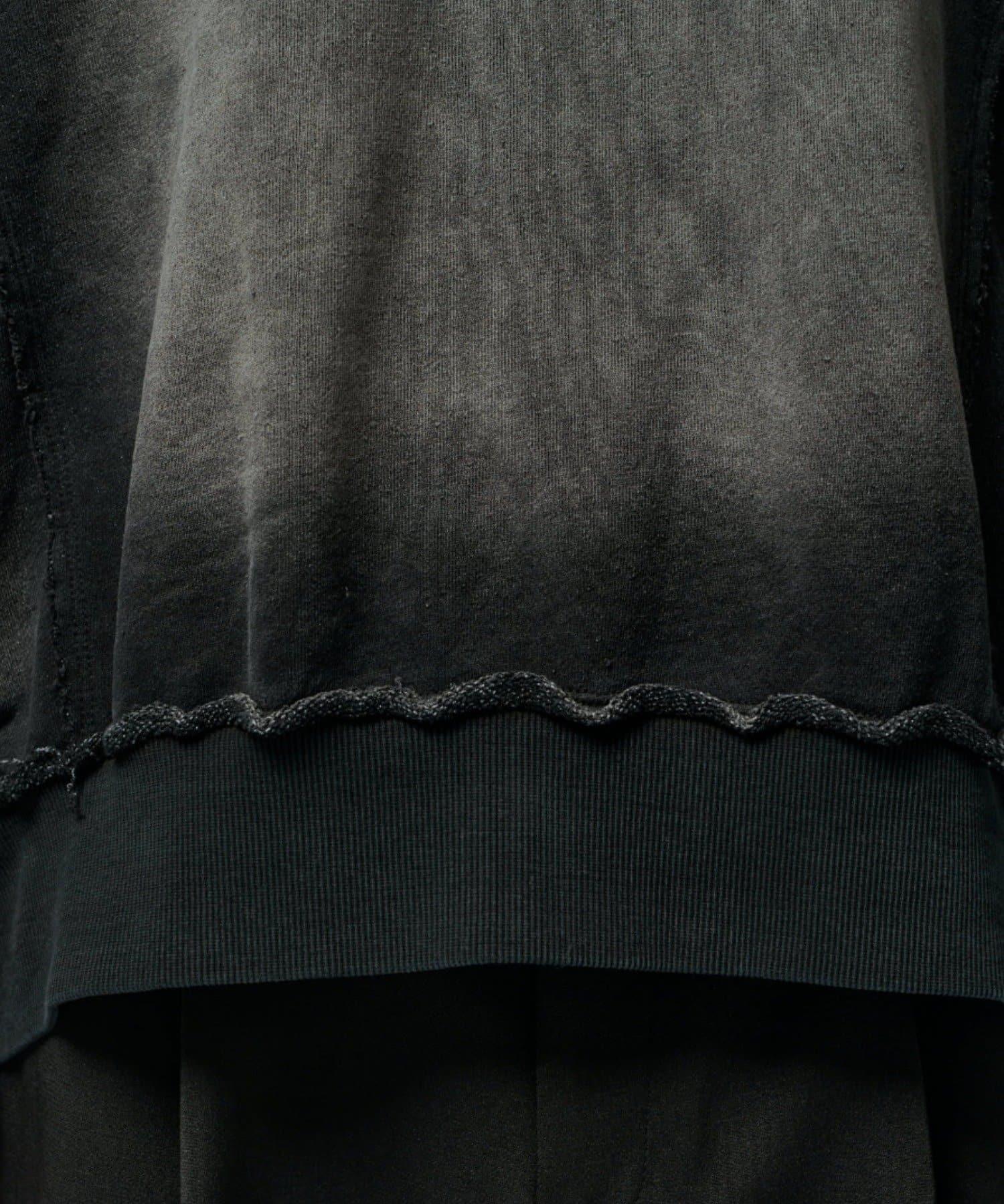 這款運動衫的表面經過漂白處理。寬大、圓潤的輪廓,相對於長度而言,衣身寬度較寬。
